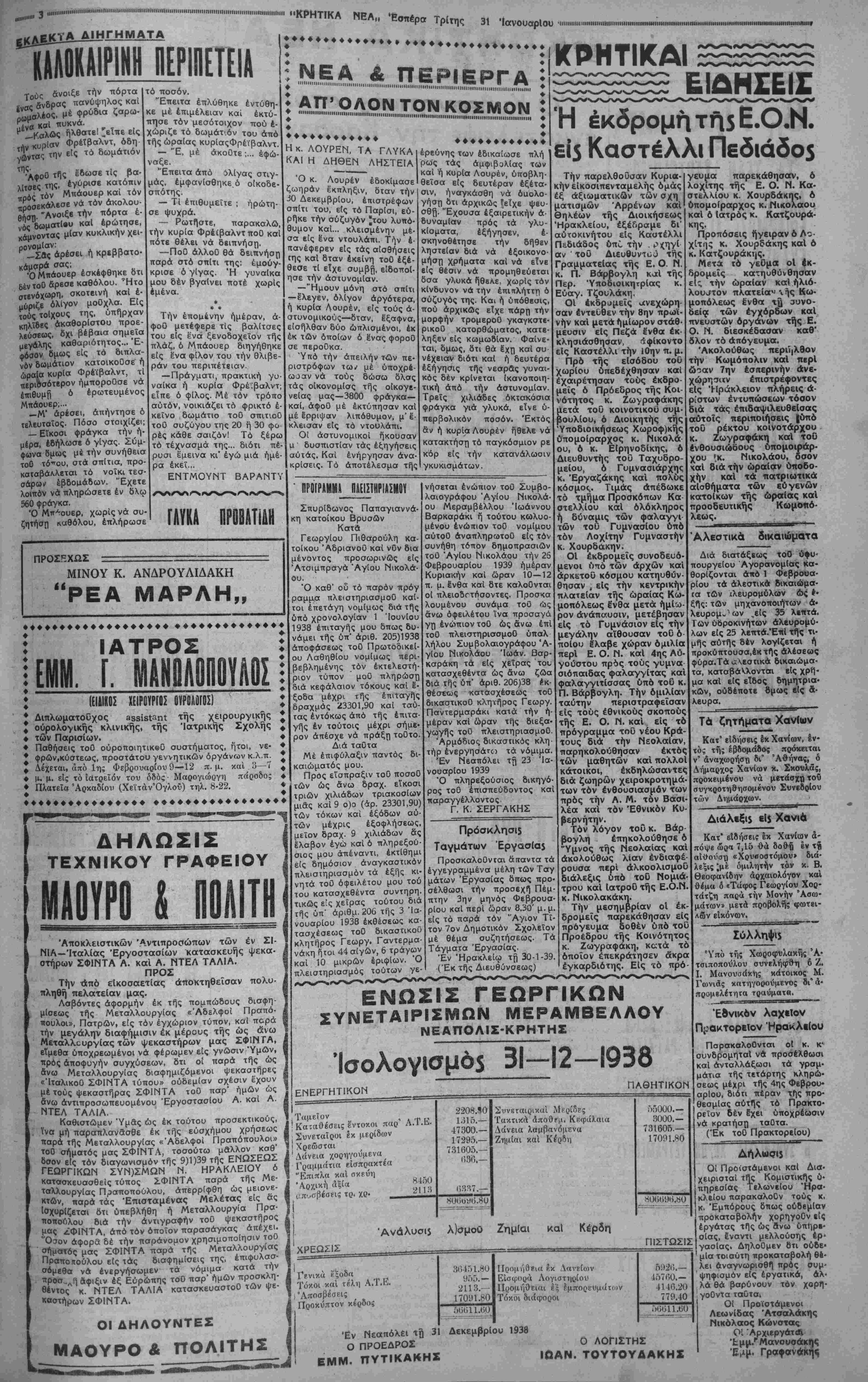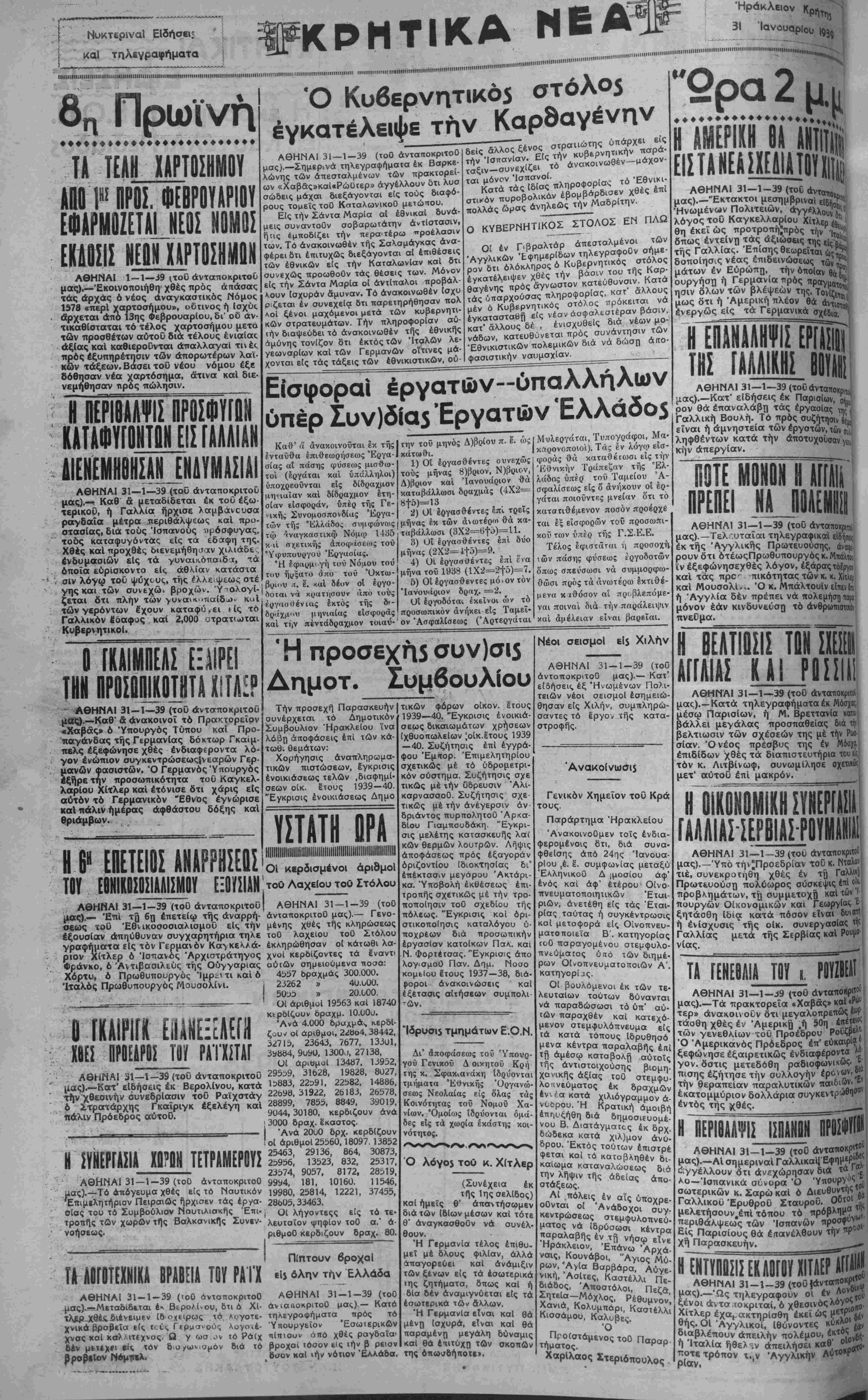 ΑΘΗΝΑΙ 31—1—39 (τοΟ άνταποκριχοϋΐ