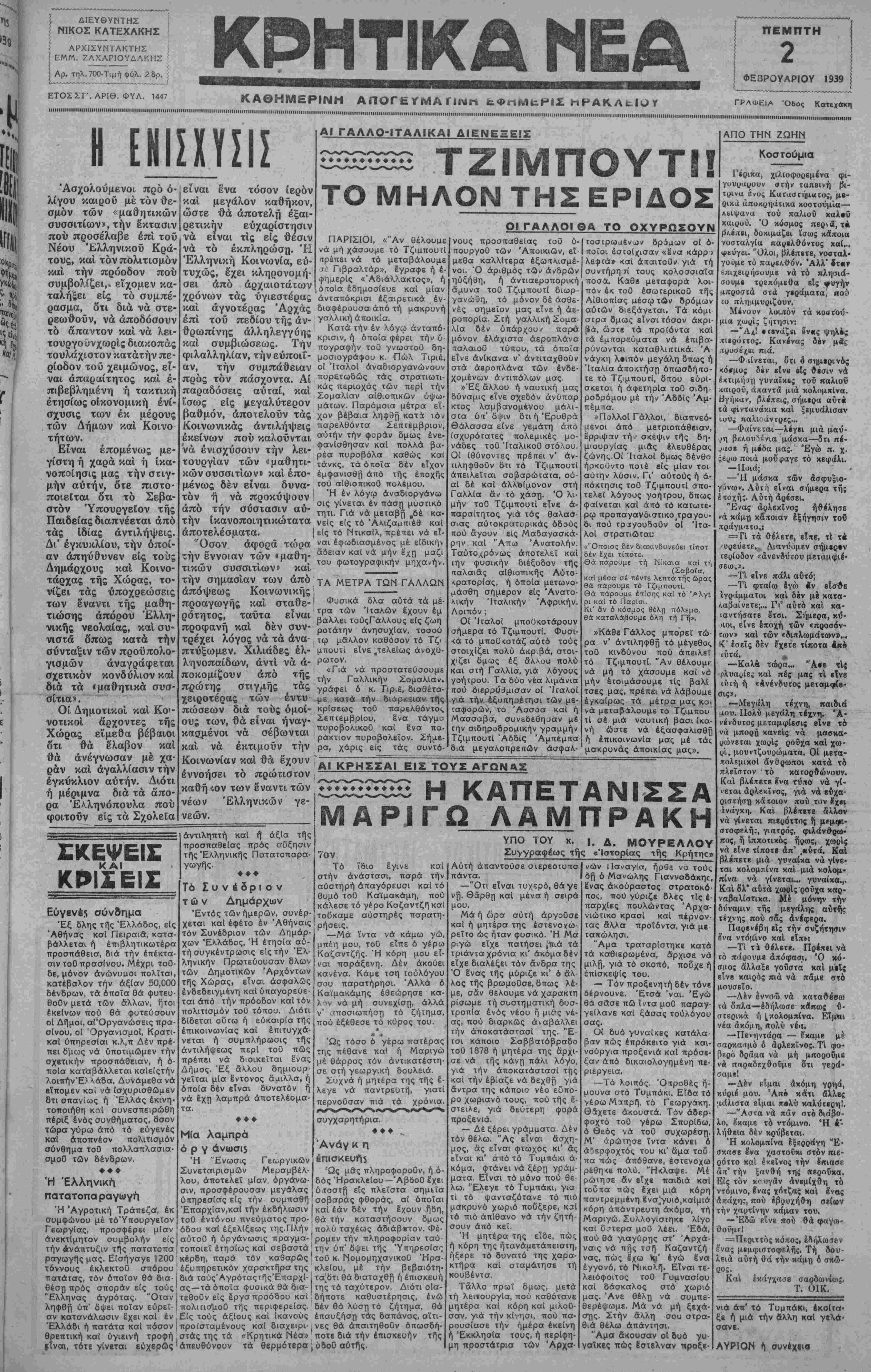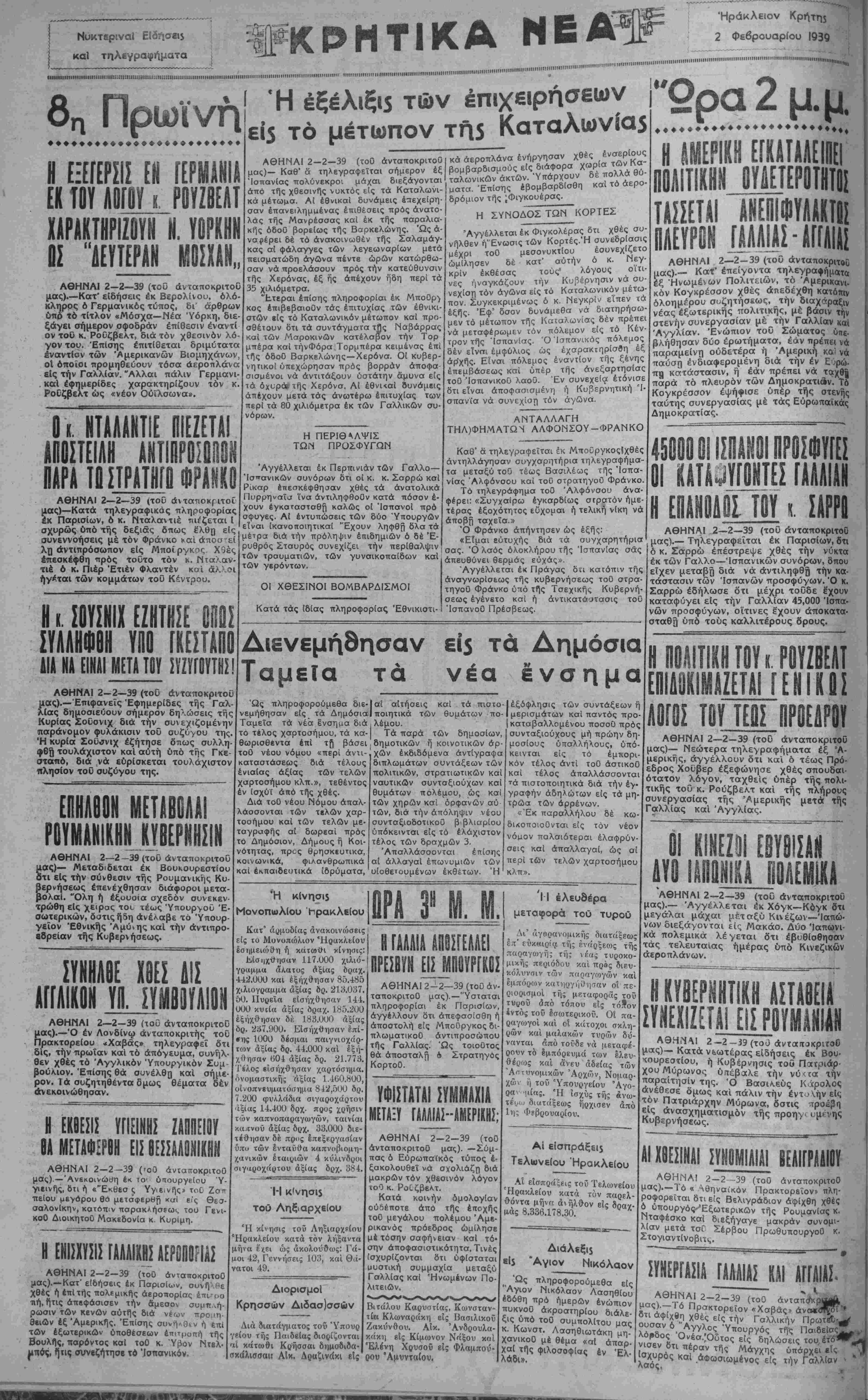 ΑΘΗΝΑΙ 2-2-39 (τοΟ άνταποκριτοΟ