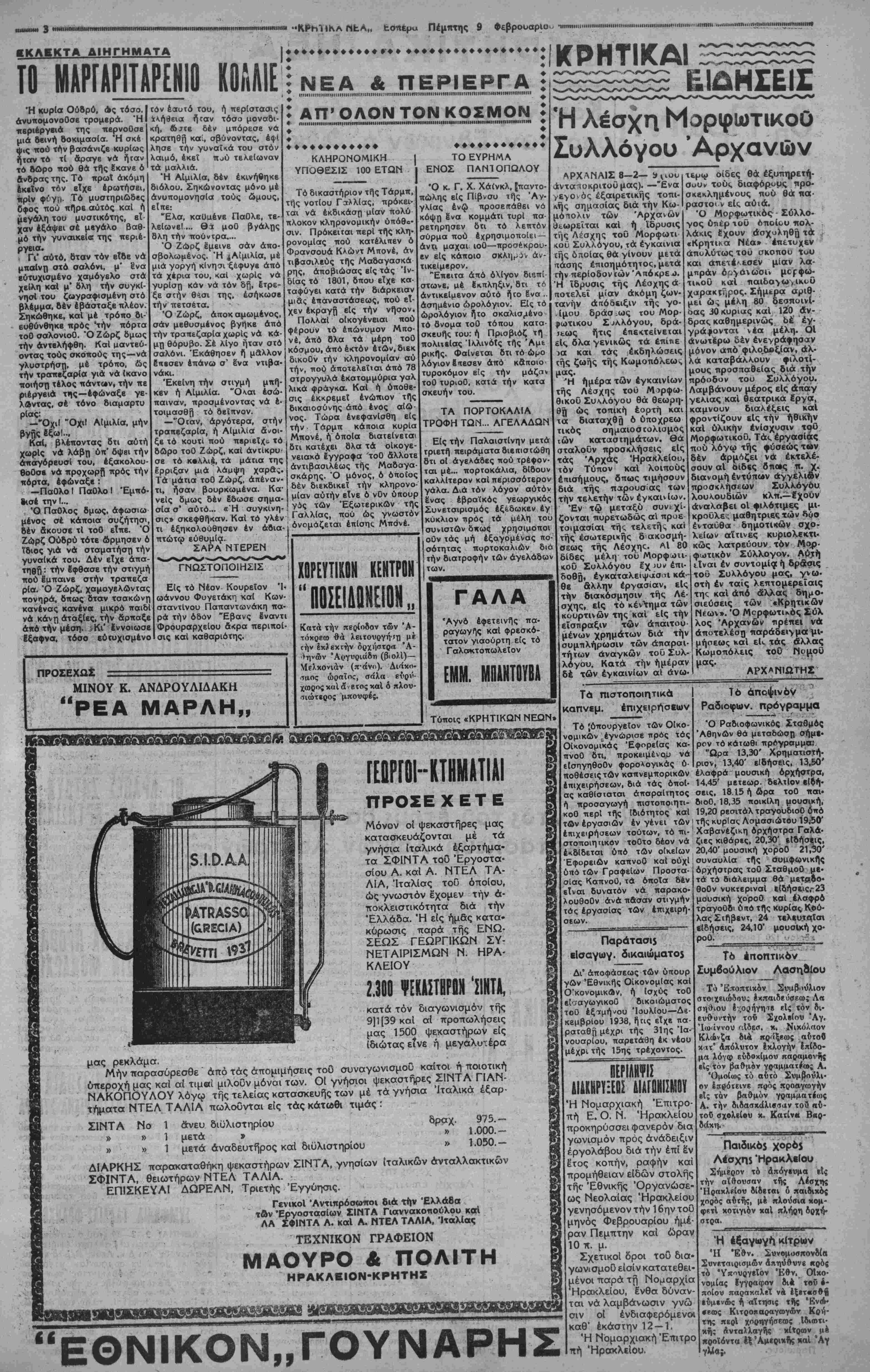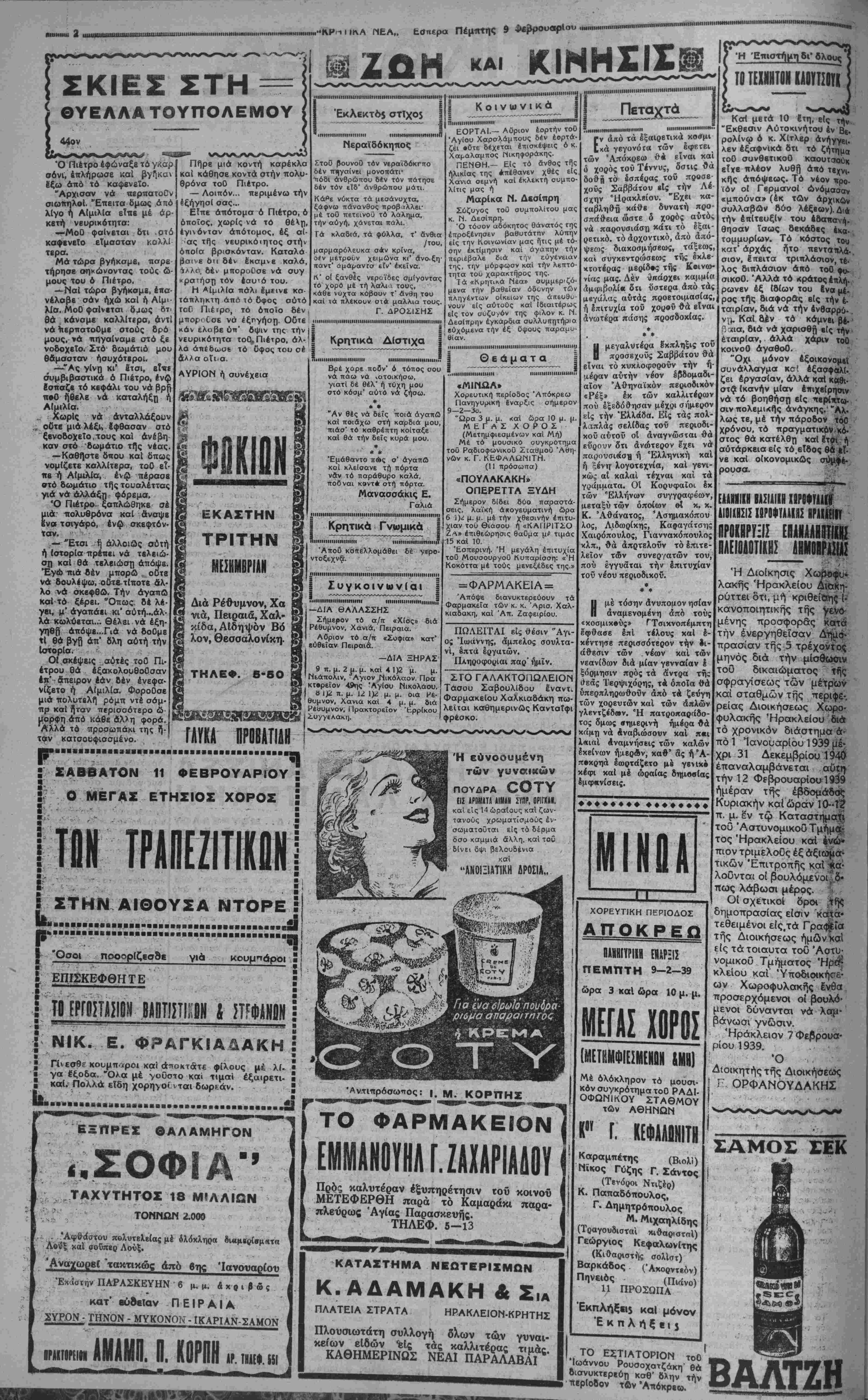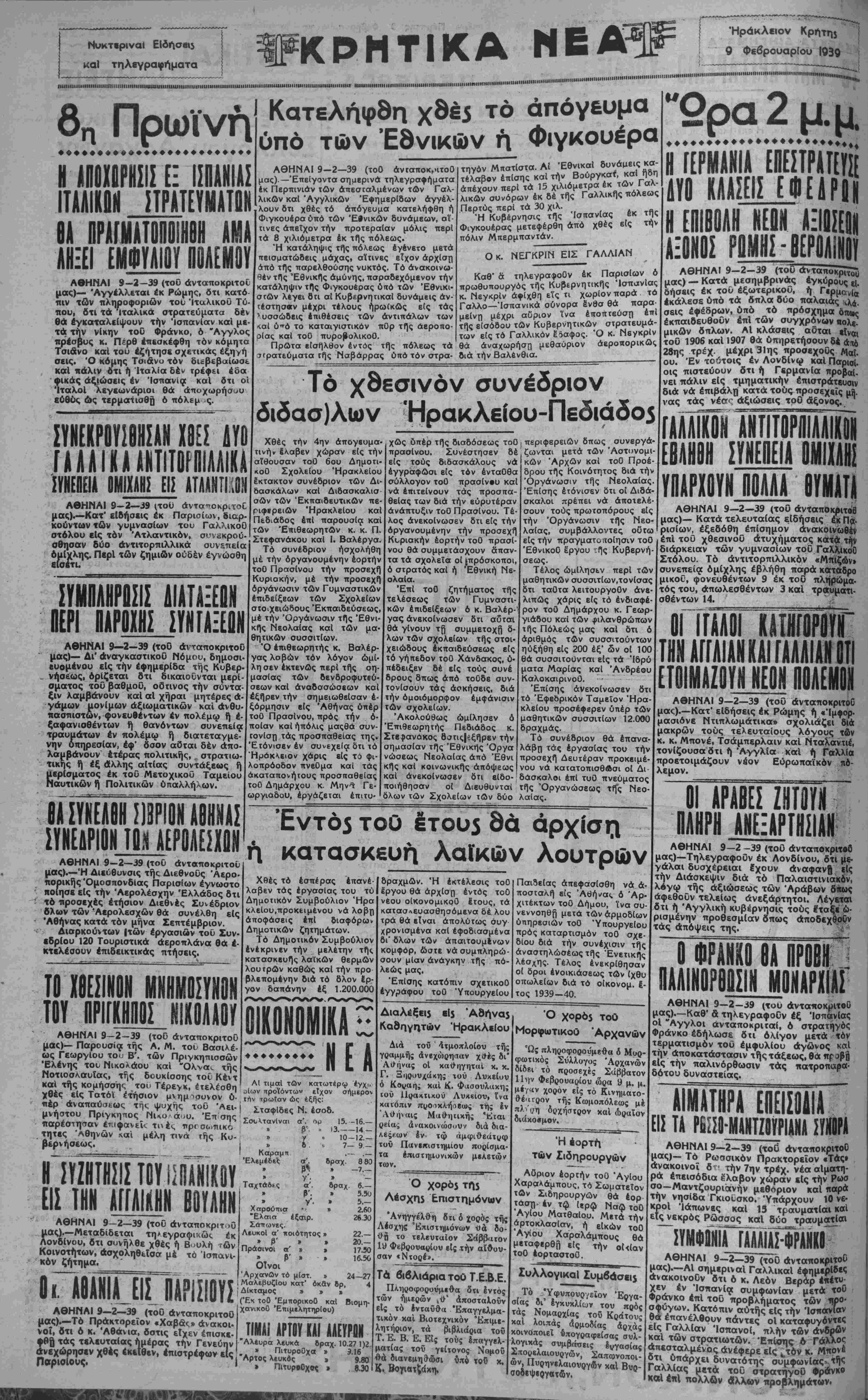 ΑΘΗΝΑΙ 9—2—39 (του ανταποκριτού