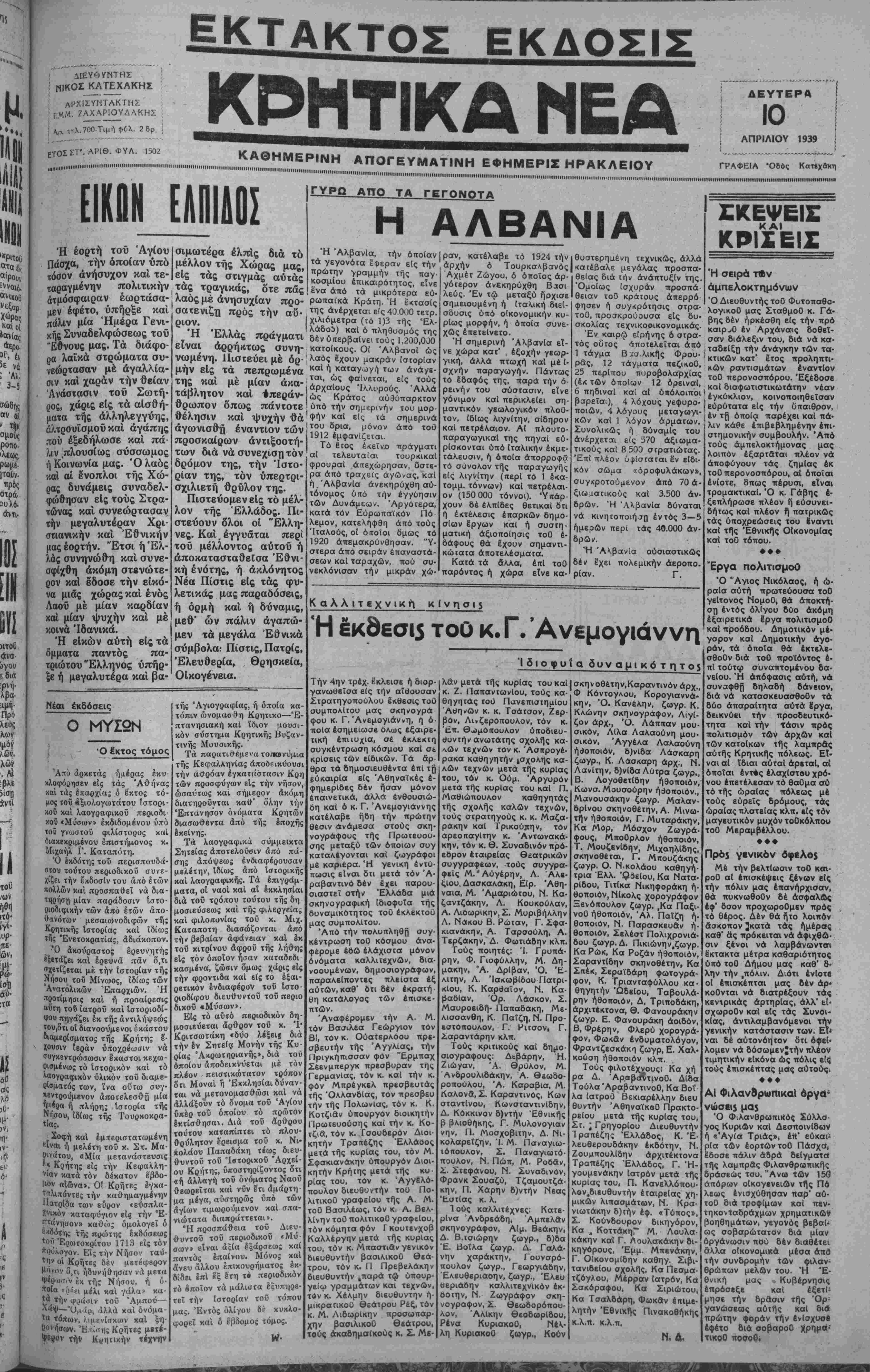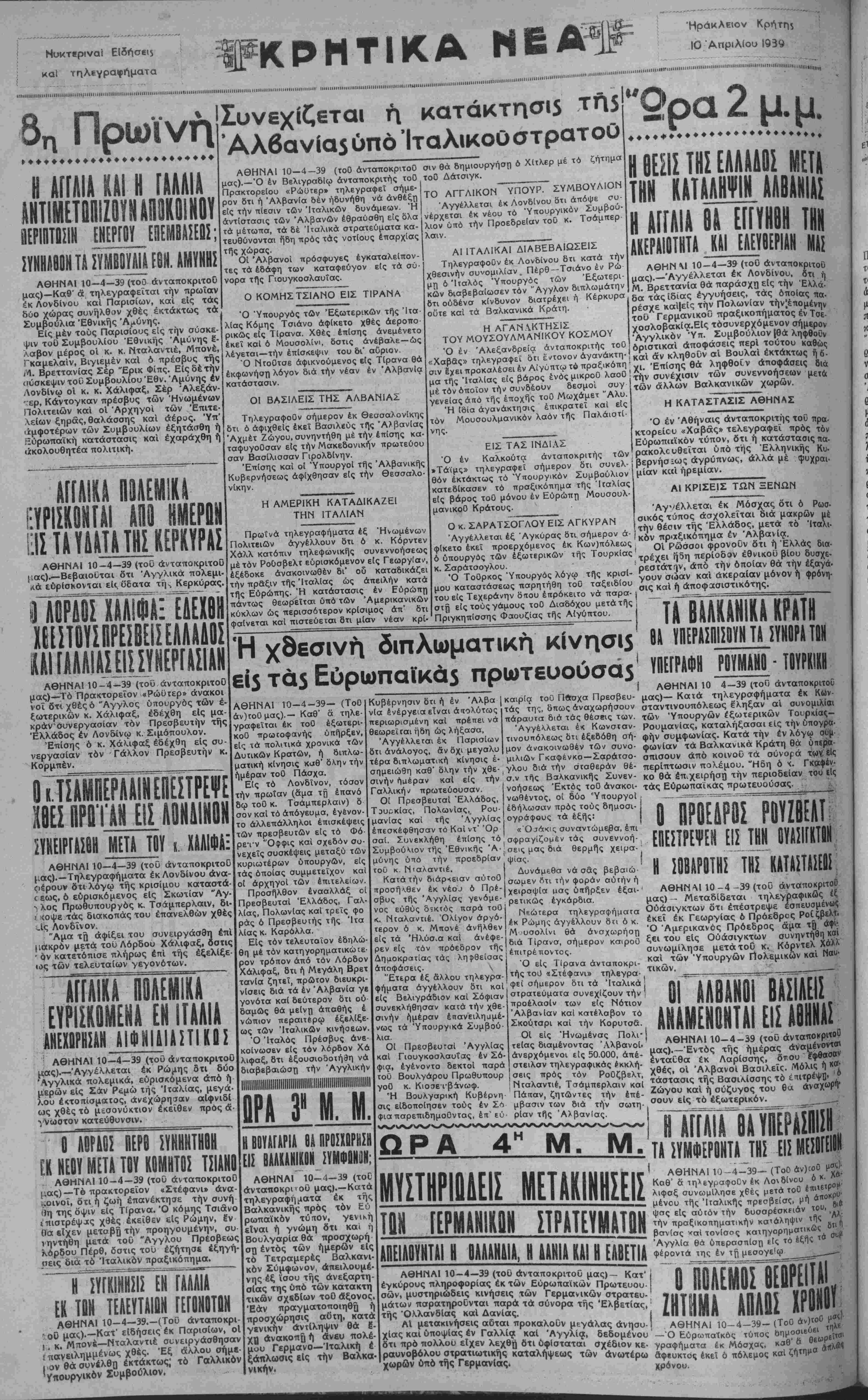 ΑΘΗΝΑΙ 10-4-39 (του ανταποκριτού αας>