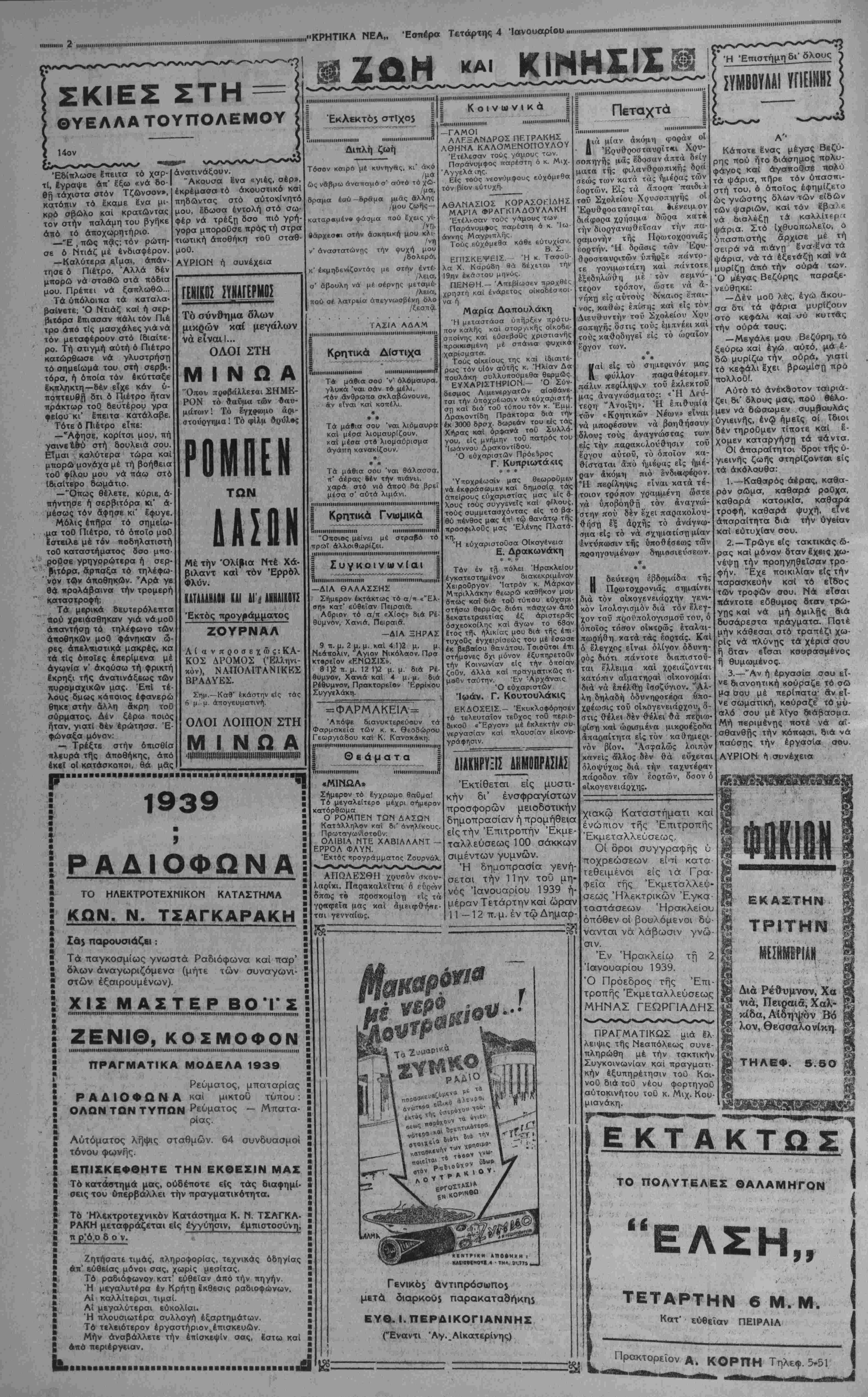 Δημ. Ζωγφ<2φον μέ Οβμα νά καταπολβμήσοιμεν τον δποσι- τισμόν τρώγοντες άφ^όνως πατ<ίτβς, 19,46' ά,ποαπάοματα ά«6 Λπερέττες, 20,1ί)' μουσική χοοοΰ, 20,45' ομιλία τοΰ η. Στρατή Μνριβίλη μβ #ίμ« τά Παγανά, 21 "Ελληνιχή χ«ντι<- δα διβΰθ'Μνσις Ρ. Ά^αναοκίδη, 2Ι,30' εΙδήσεις, 21,45' σ«ν«Ή· τής Υ ΡΕ ύ,τό τήν βικΰ&υν- σιν τοΰ «. Εΰαγγιλιίτον, κατά τό διάλειμμα τής συναυλίας •Οά μκτα&οθοίν αϊ τβλκυταΤαι είδήσβις, 23,30' μονηική χο¬ ροί. ____________________ Ή ρύδμισι$ 4ργοσ(α} άρτβργατβ»ν Δι' εγκυκλίου τοΟ Ύπουρ* γβίου Αγορανομίας απαγο¬ ρεύεται είς 6ρτεργάτην, έ- φωδιασμένον β.'έπα>γόλλμα·