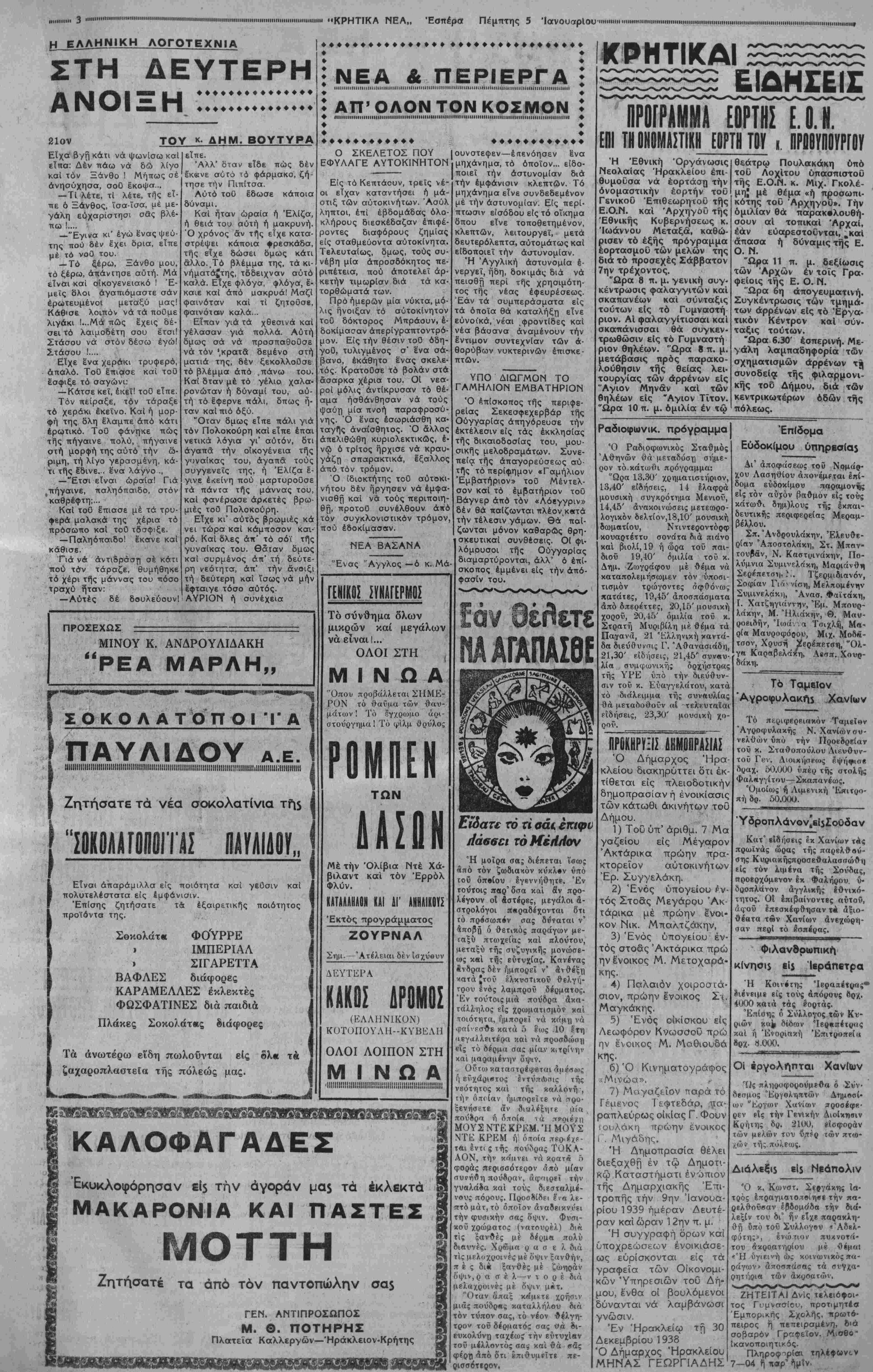 το έκάστην πρ<οαν ιίπό τονδε θ5 αποστέλλεται δις| τής ήμβ- Τ|τοι τήν πριοΐαν και τίρ· β διά το Ρίΰυμνον— Τό αύριανόν Ραδιοφωνικ. πρόγραμμα Ό Ραδιοορωνικός Σταθμός Αθηνών θά μετάδοση αΰρι- ον τύ κάτωθι πρόγραμμα: "Η¬ ρα 10 μετάδοβις τής λειτουρ¬ γίας από τοΰ Μητροπολιτι¬ κού Ναοΰ "Αθηνών, 11 ποι¬ κίλη μουσική, 11.30" Ελληνι¬ κό «ονιντέττο δ)νσιν II. Γλ,υ- χοφρίδη 12 απόσπασμα άπό 8- πϊρες τοΰ ΒίγνερεΙσαγωγή ά¬ πό τόν ίπτάμενον Όλλανδυν αηοσπάομ«τ« άπό τους άρχι· τραγουδιστ»^ς χ*)ς Νυρεμβέρ¬ γης, 12,5δ' έλαίρρά μουσική συγκρότημα ΙΙαγώνη— Χυτήρη, Ι'όΑΟ' ρίβι'ισεις. 14 μουσική δω¬ ματίου Μότσαρτ κουαρτέτο 14,46' ανακοίνωσης καί μετε- ωρ' >ελτίον, 18,10" Εκκλησια¬