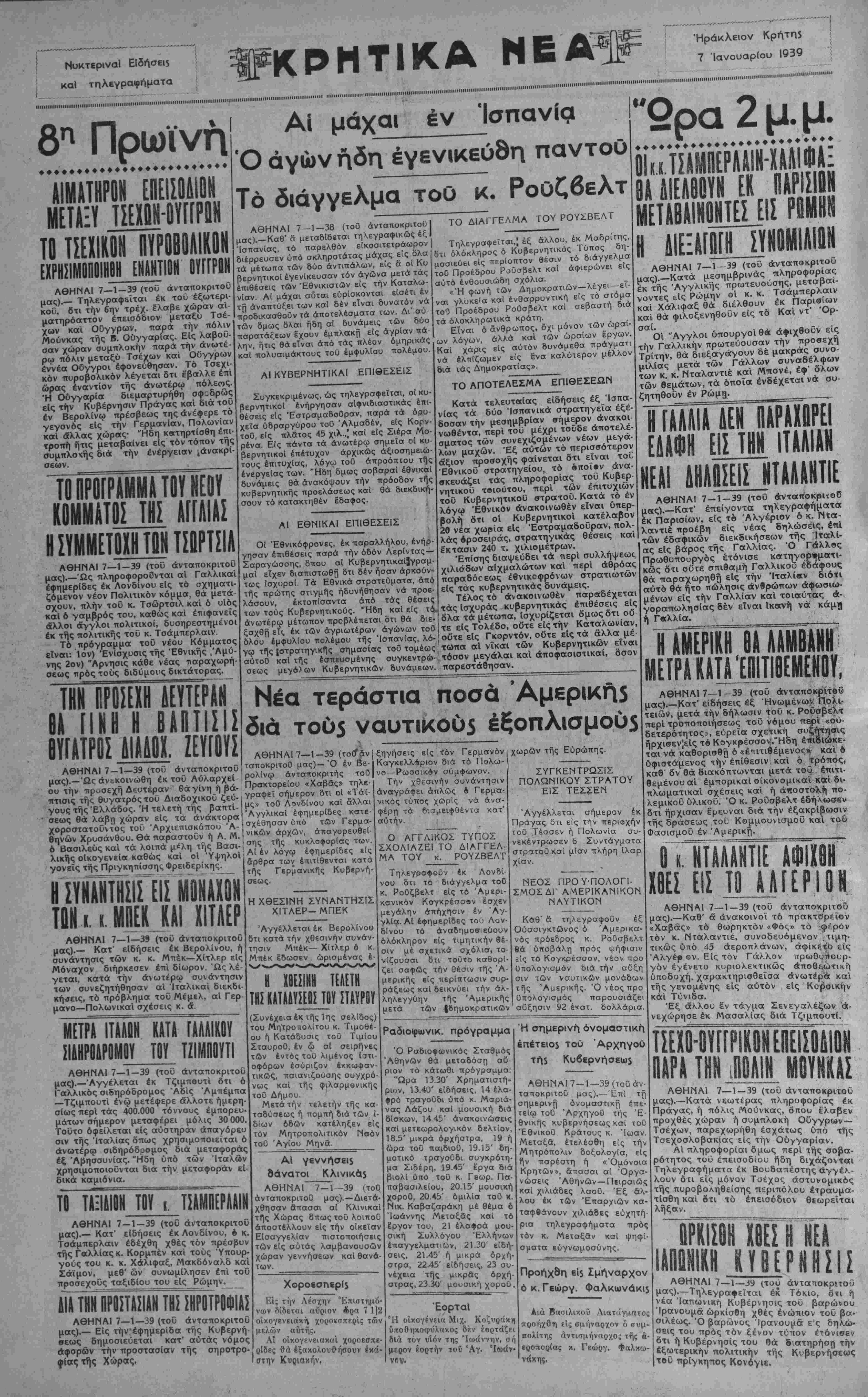 ΑΘΗΝΑΙ 7—1—39 (τοΰ ανταποκριτού