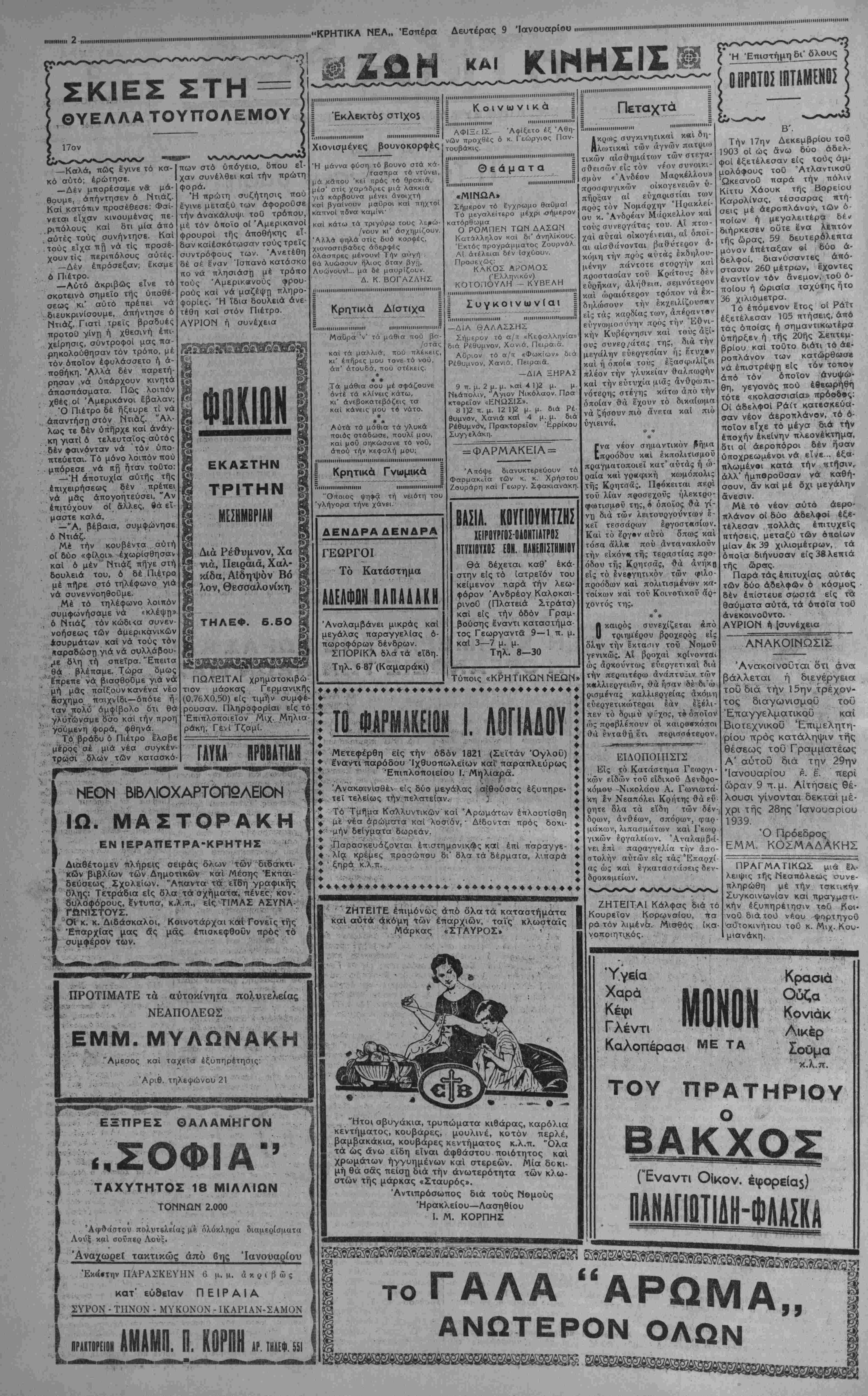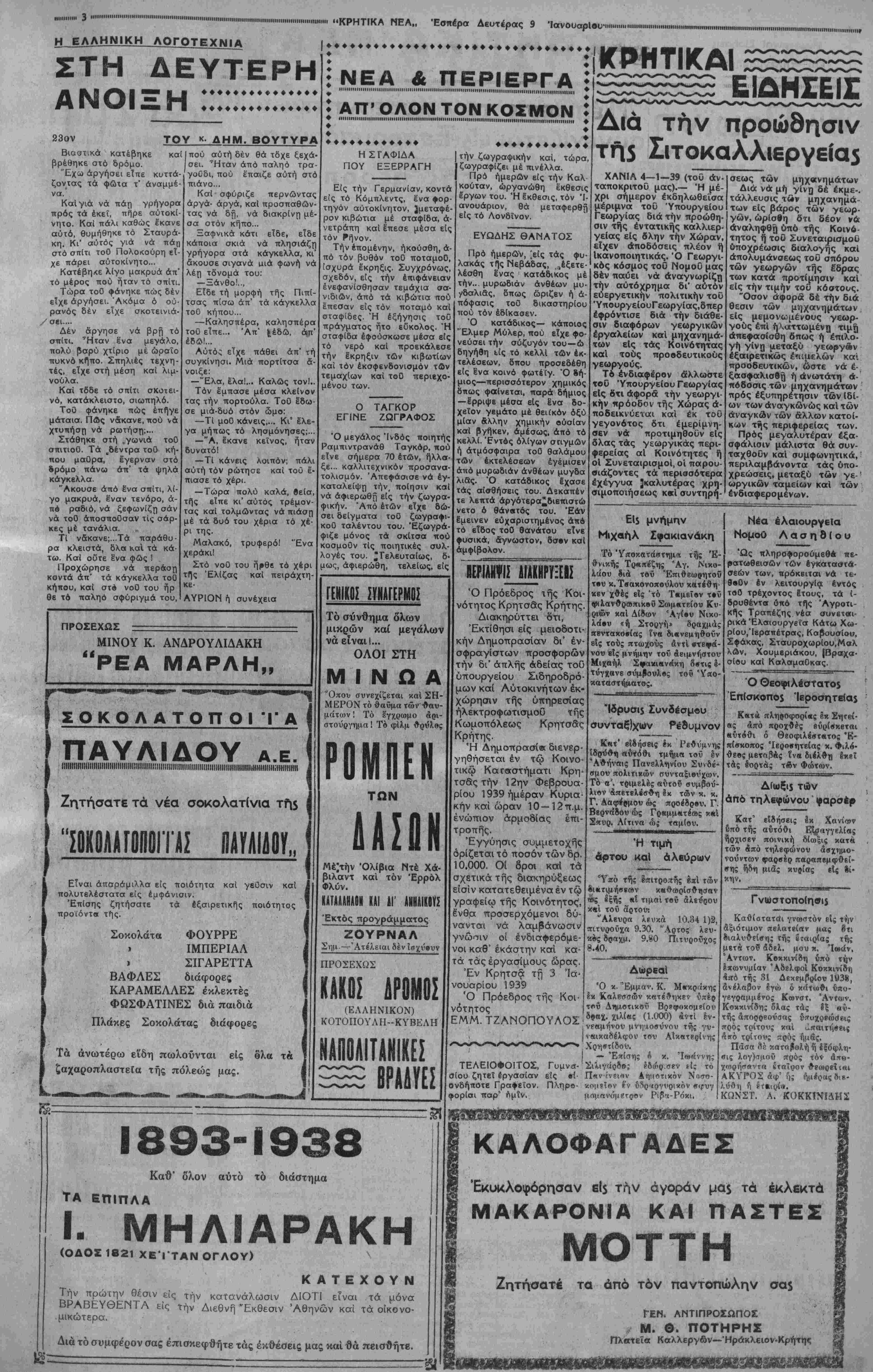 ΑΘΗΝΑΙ 9—1—39 (του άνταποκριτβΟ