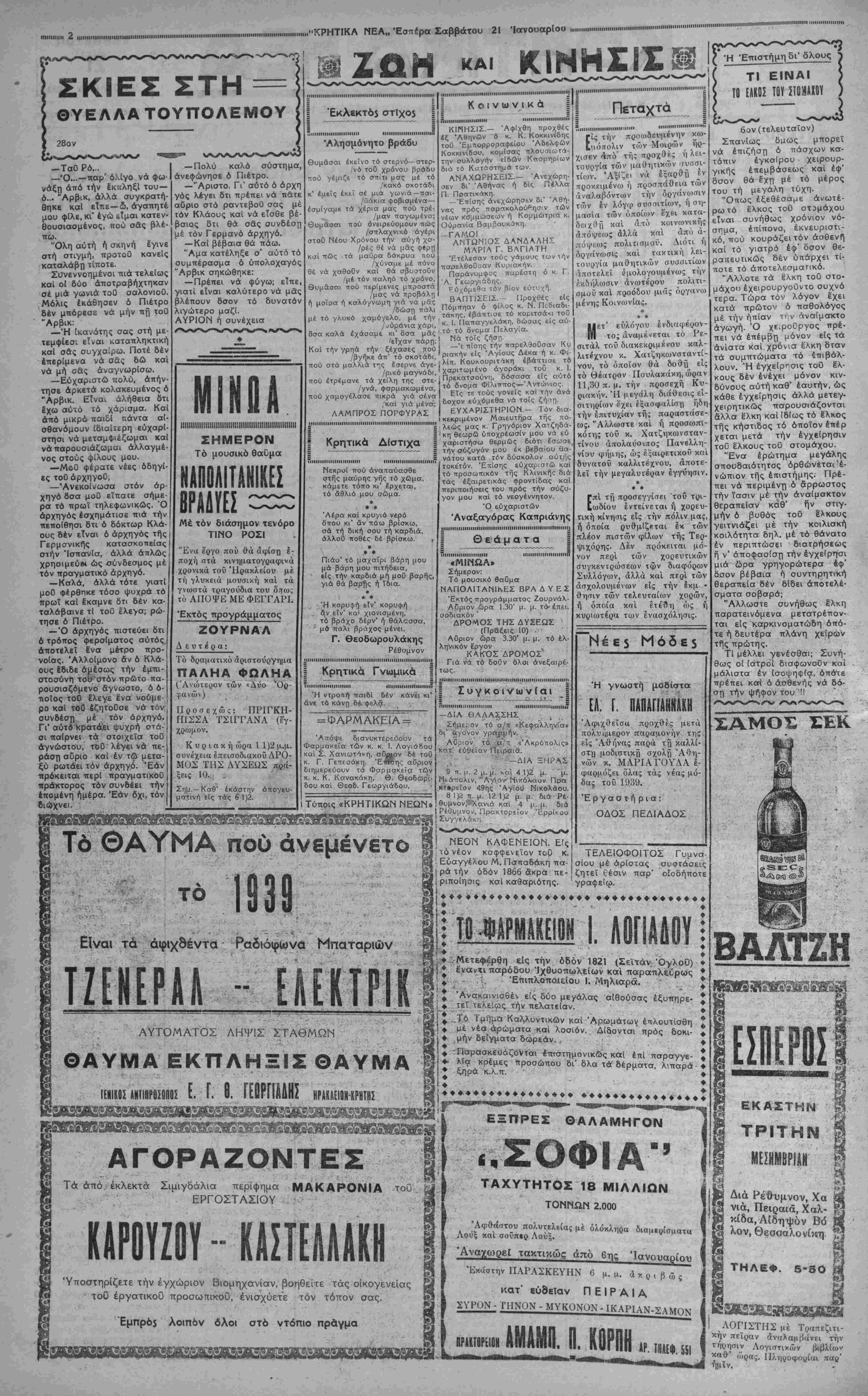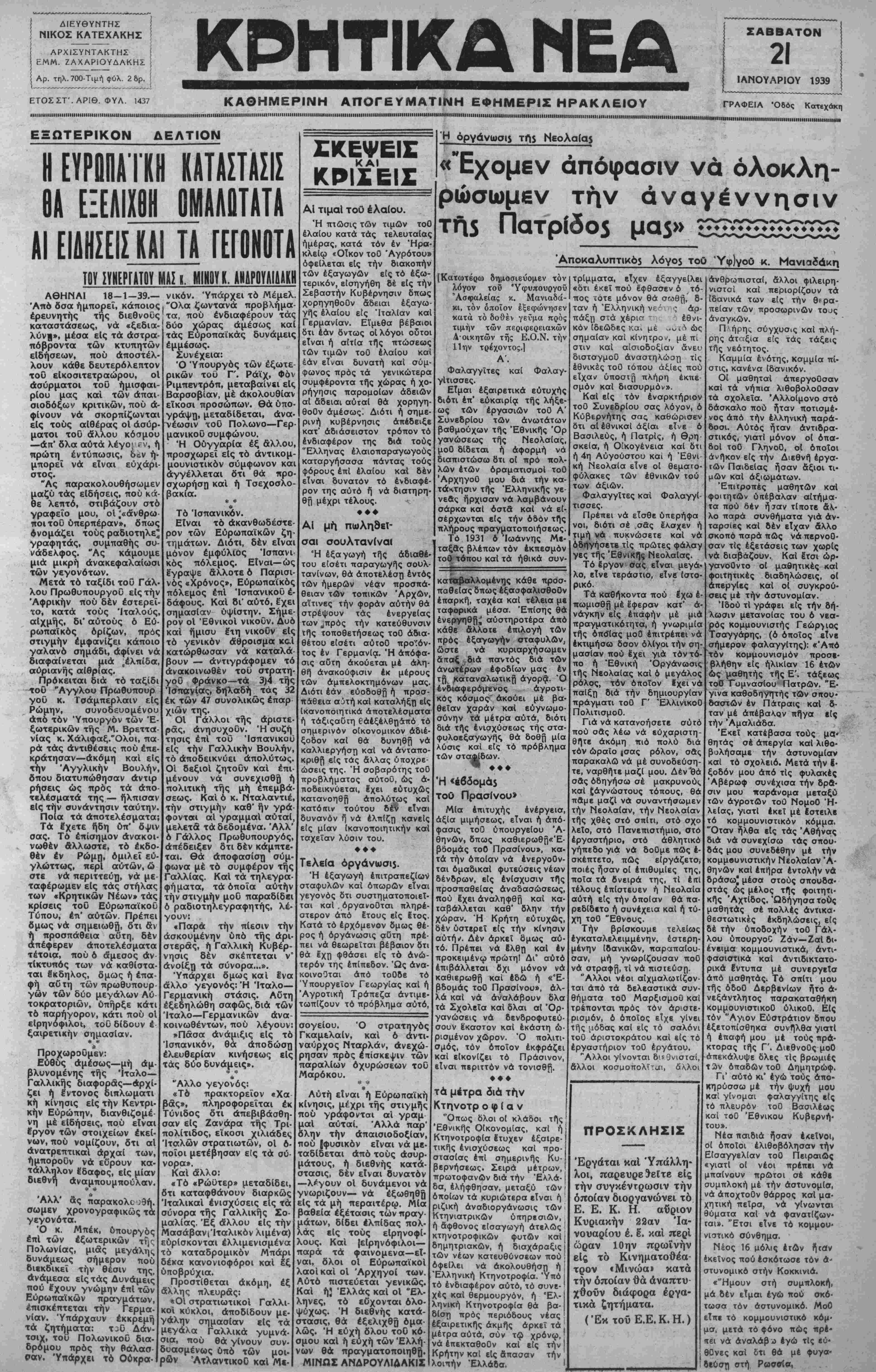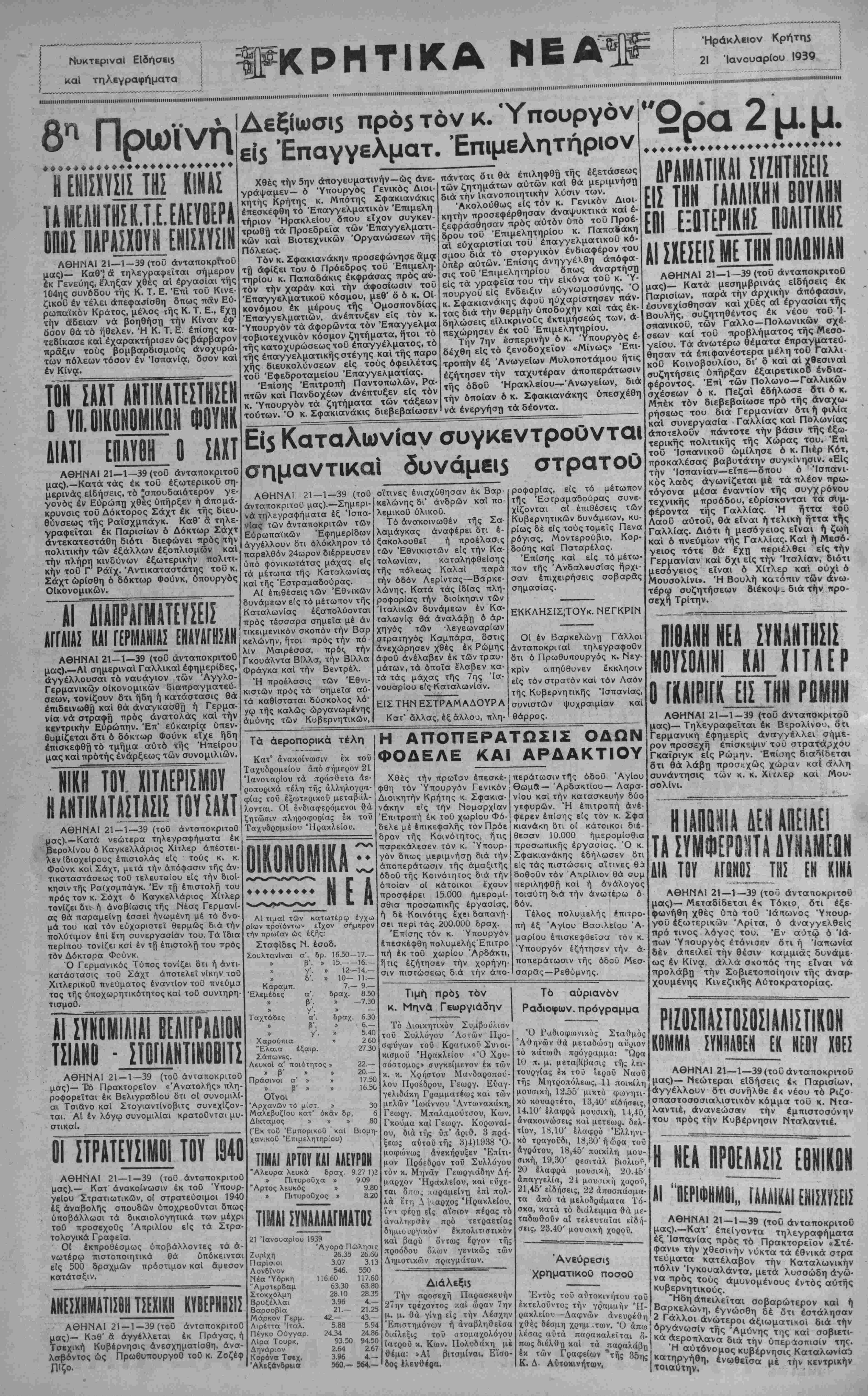 ΑΘΗΝΑΙ 21—1—39 (τοΰ ανταποκριτού