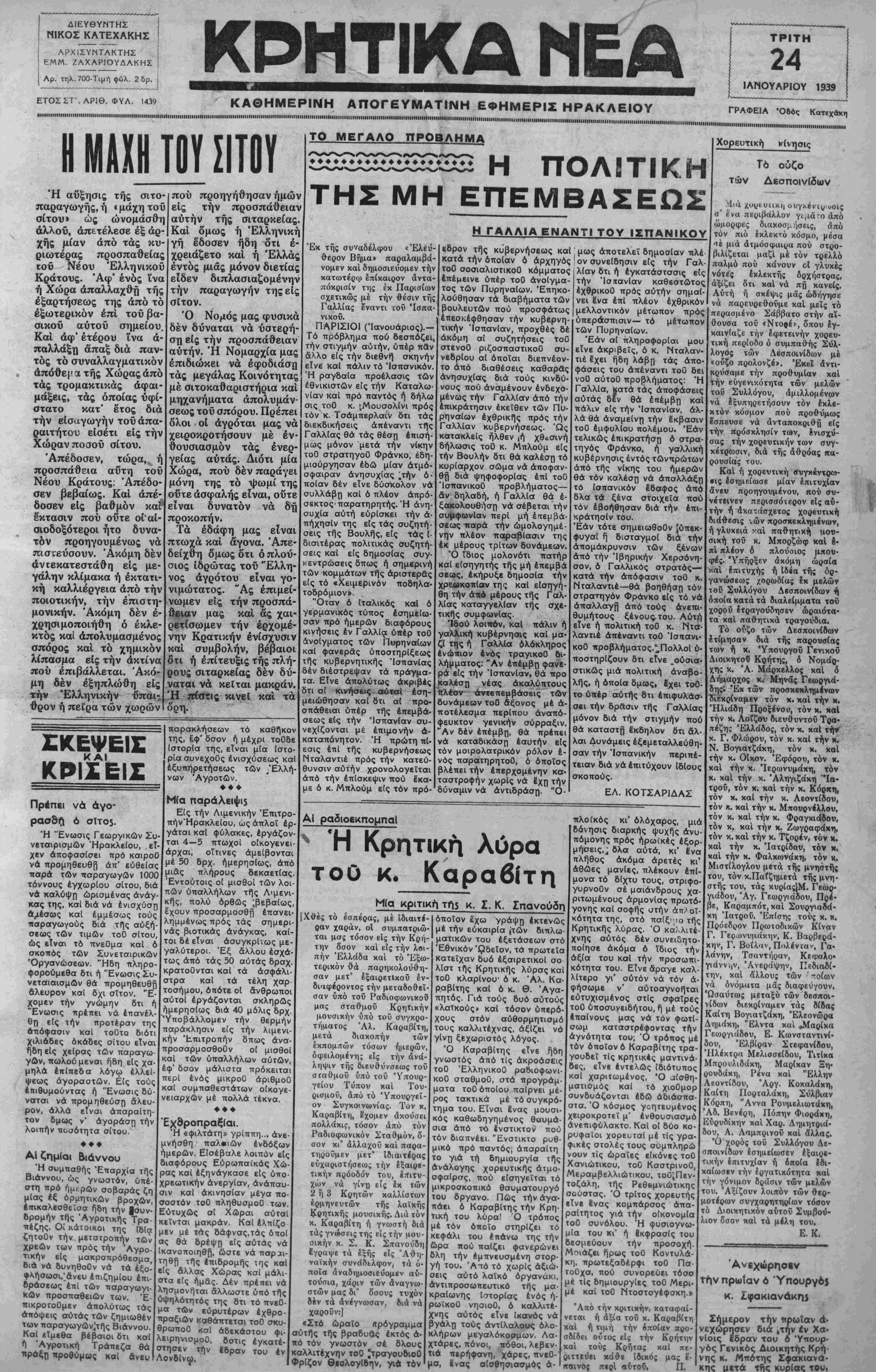 ΑΘΗΝΑΙ 24-1-39 (τοΟ άνταποκριτοΟ