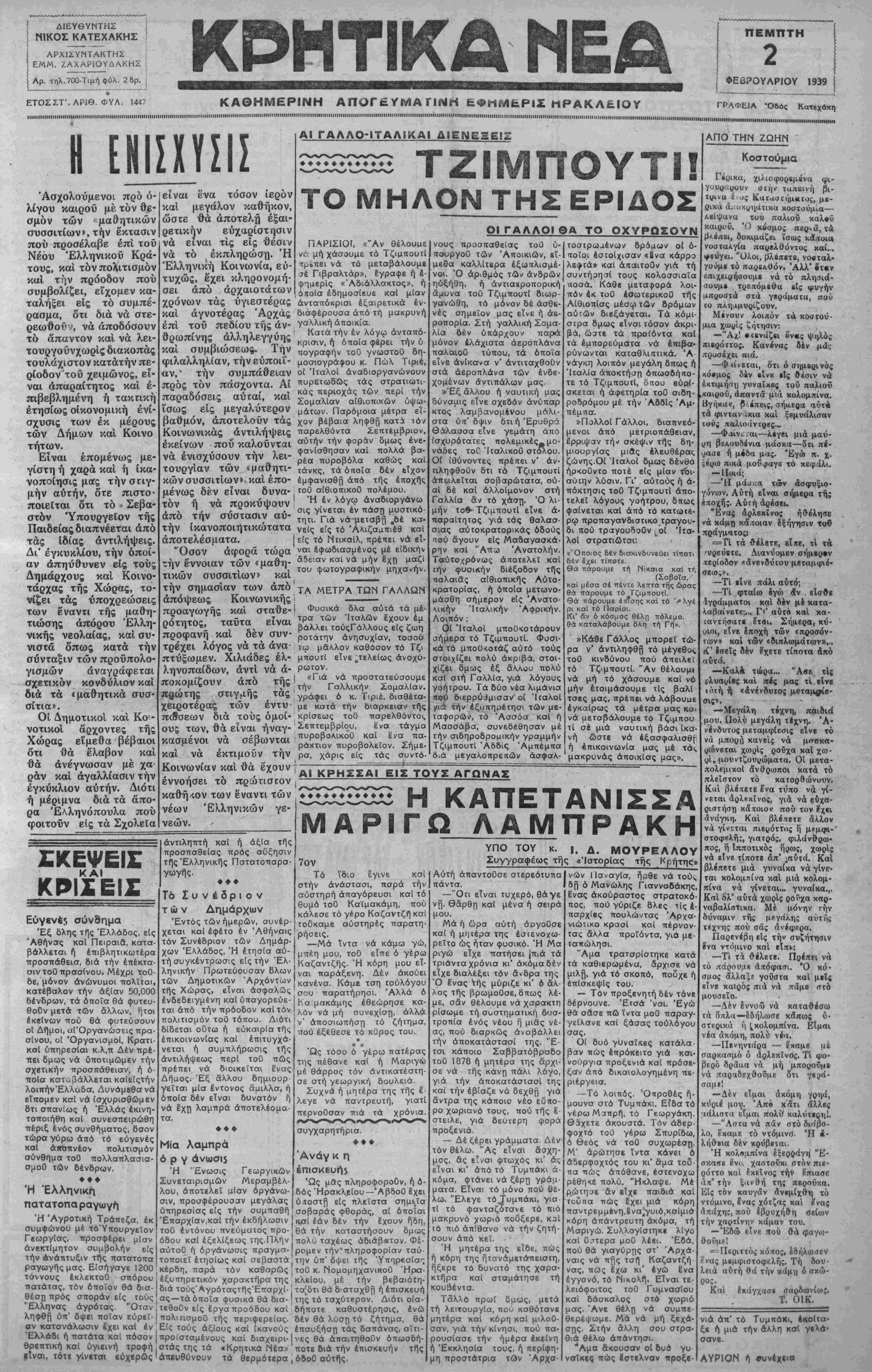 ΑΘΗΝΑΙ 2—2—39 (του άνταποκριτοΟ