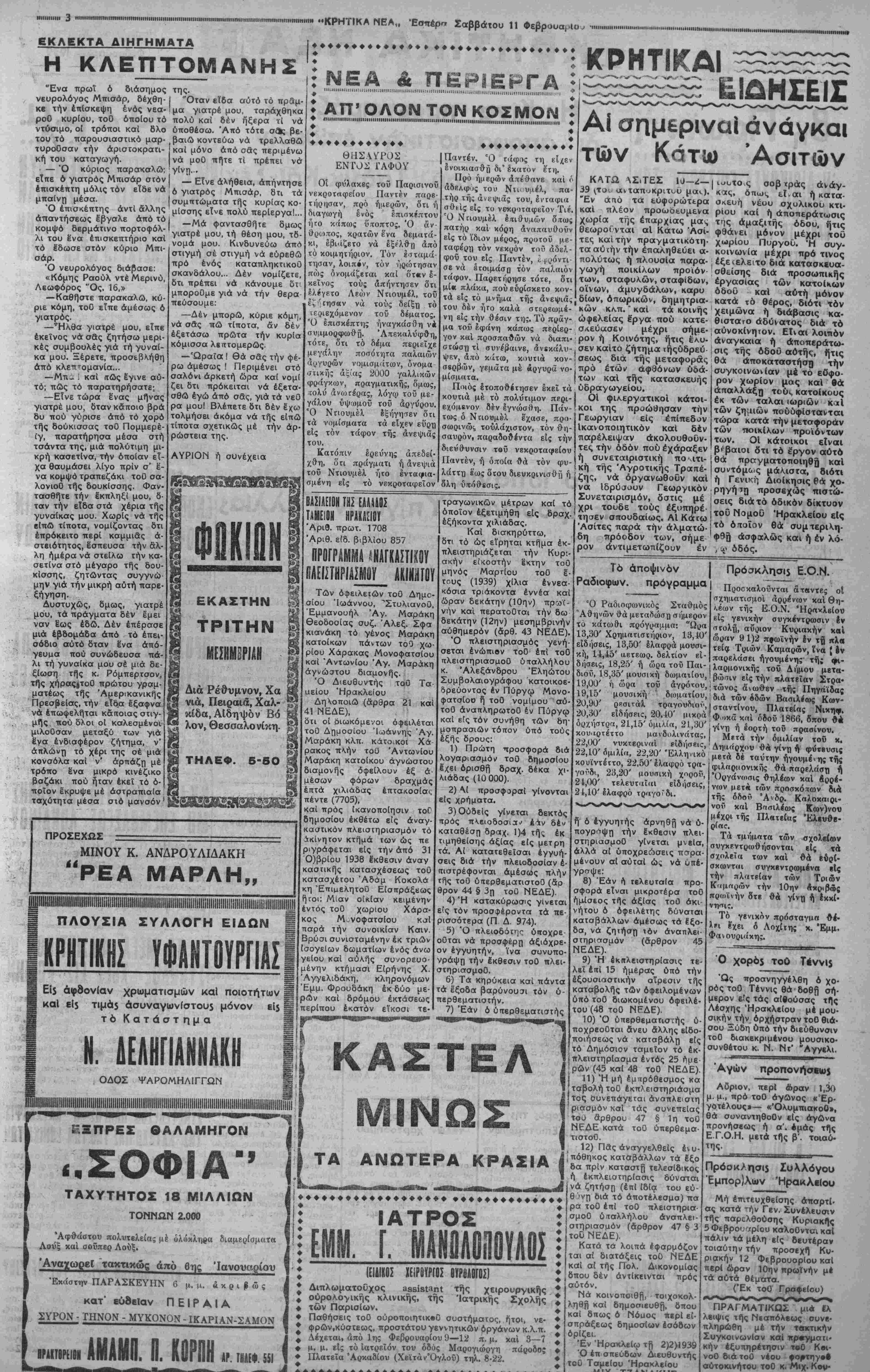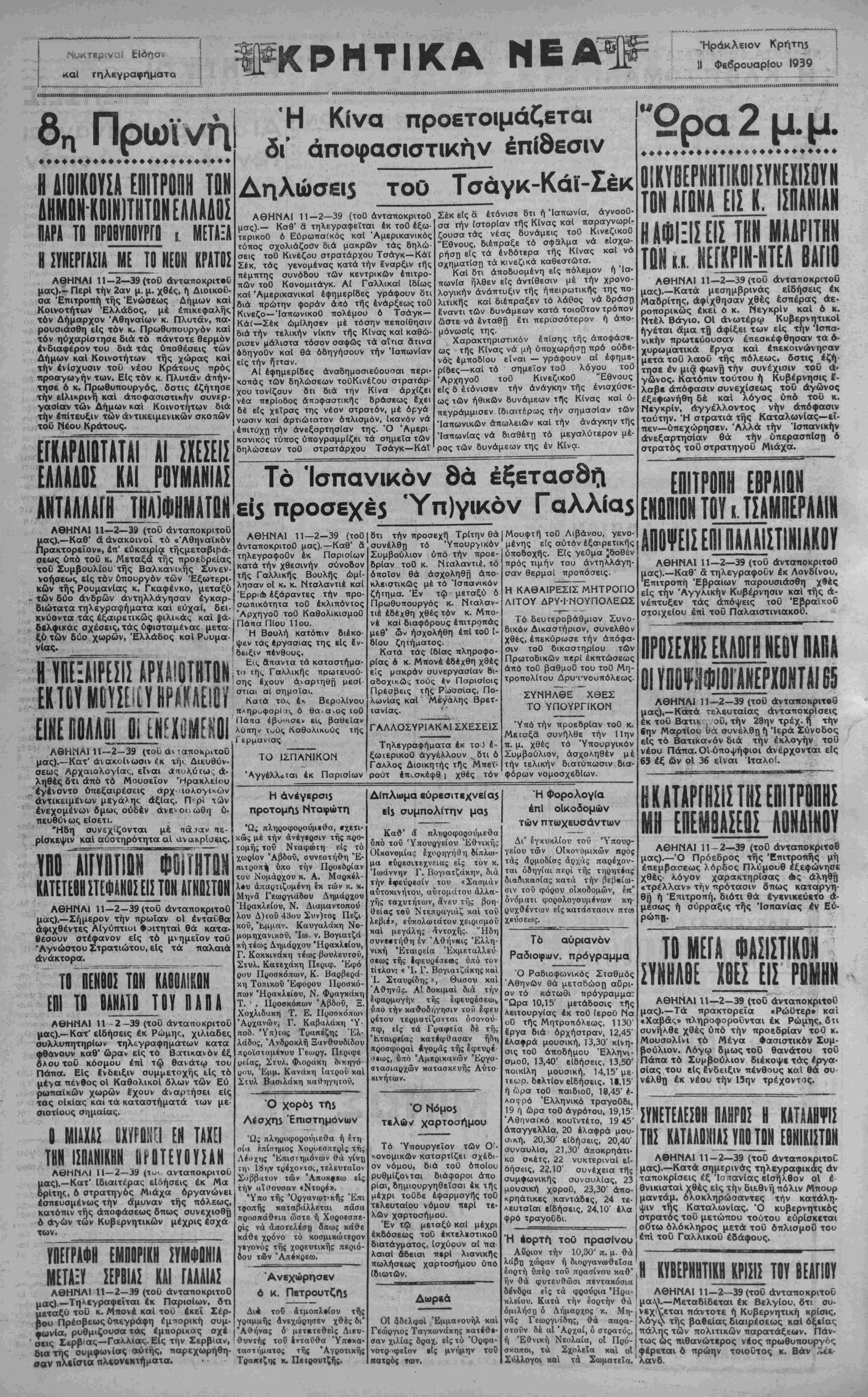ΑΘΗΝΑΙ 11—2—39 (του ανταποκριτή