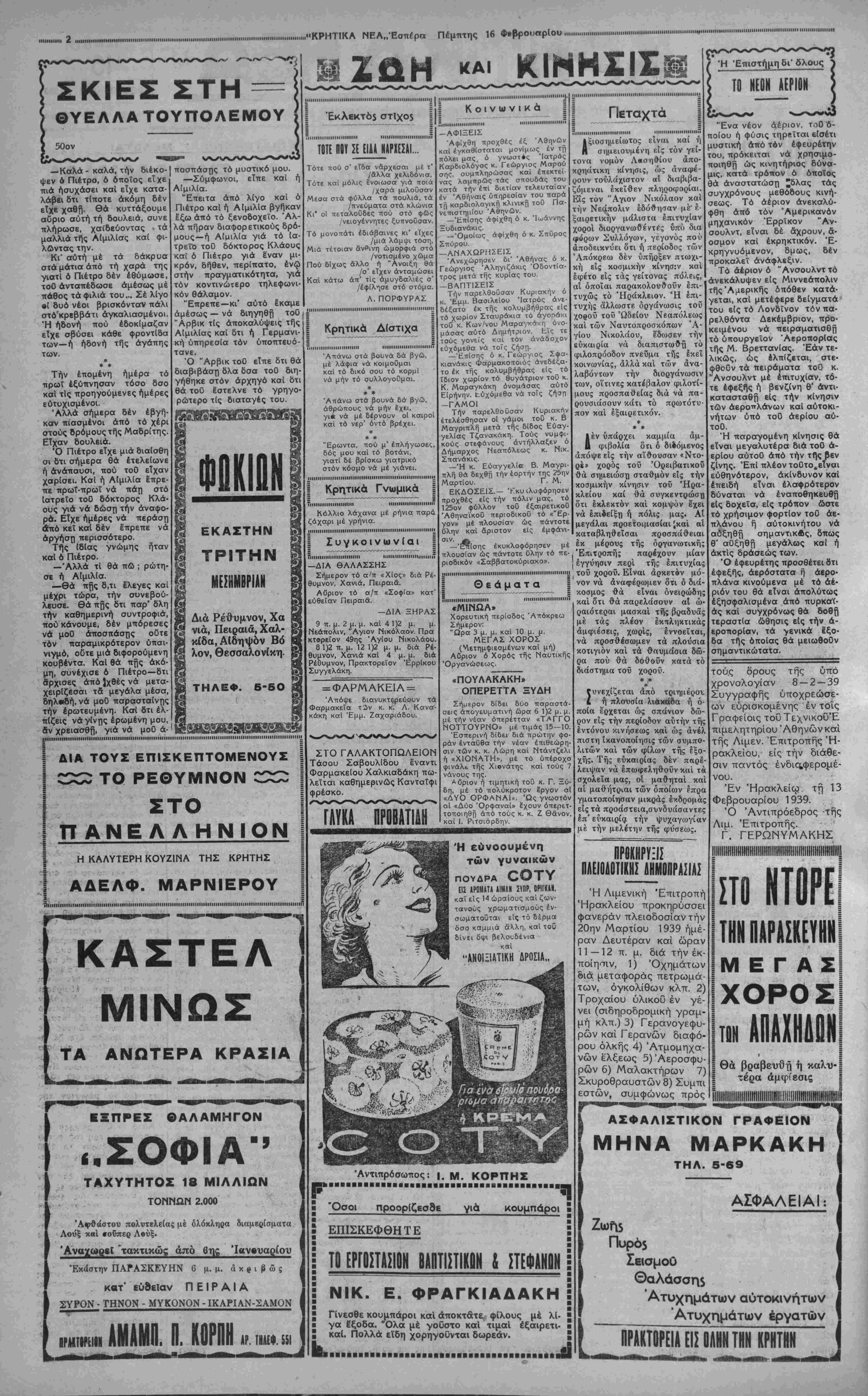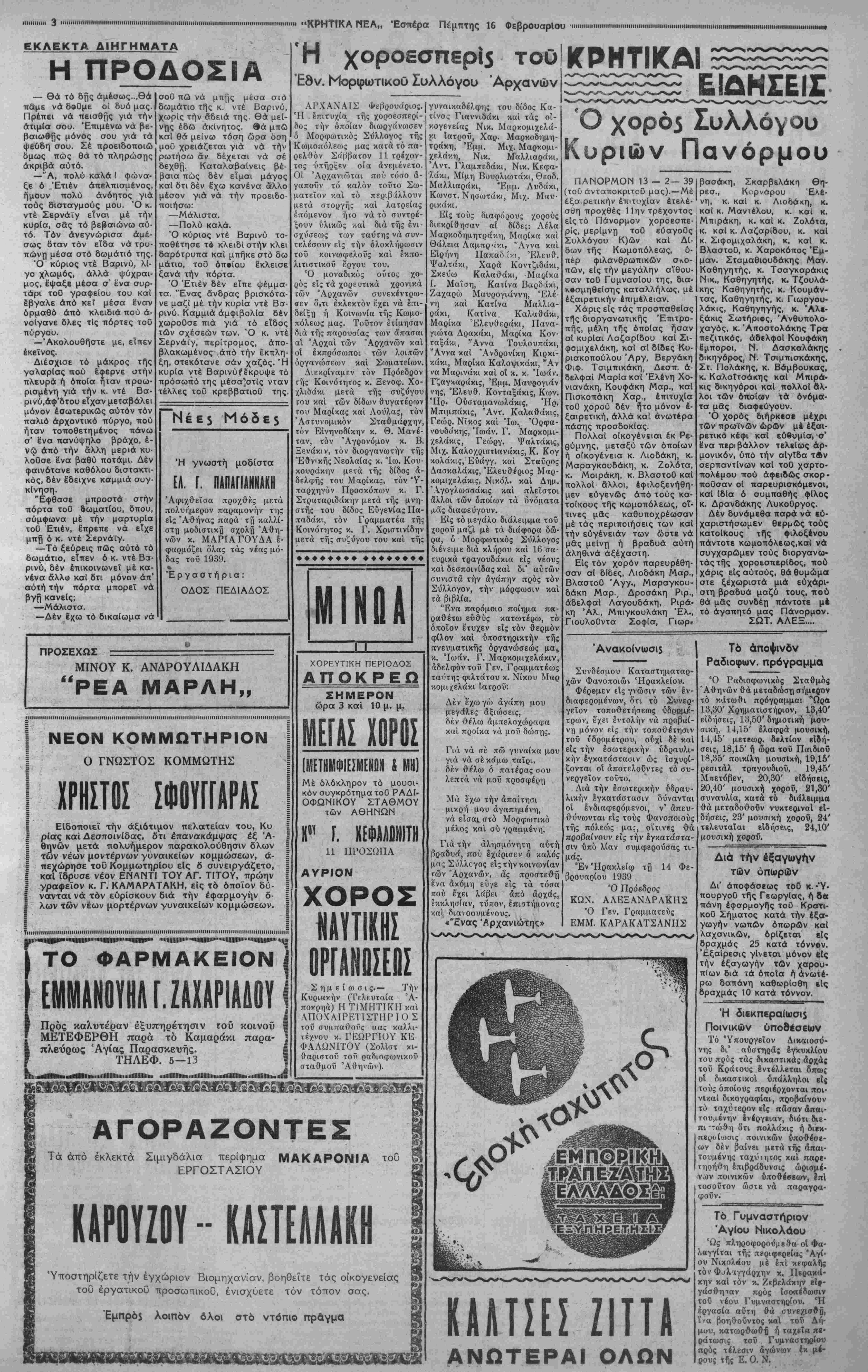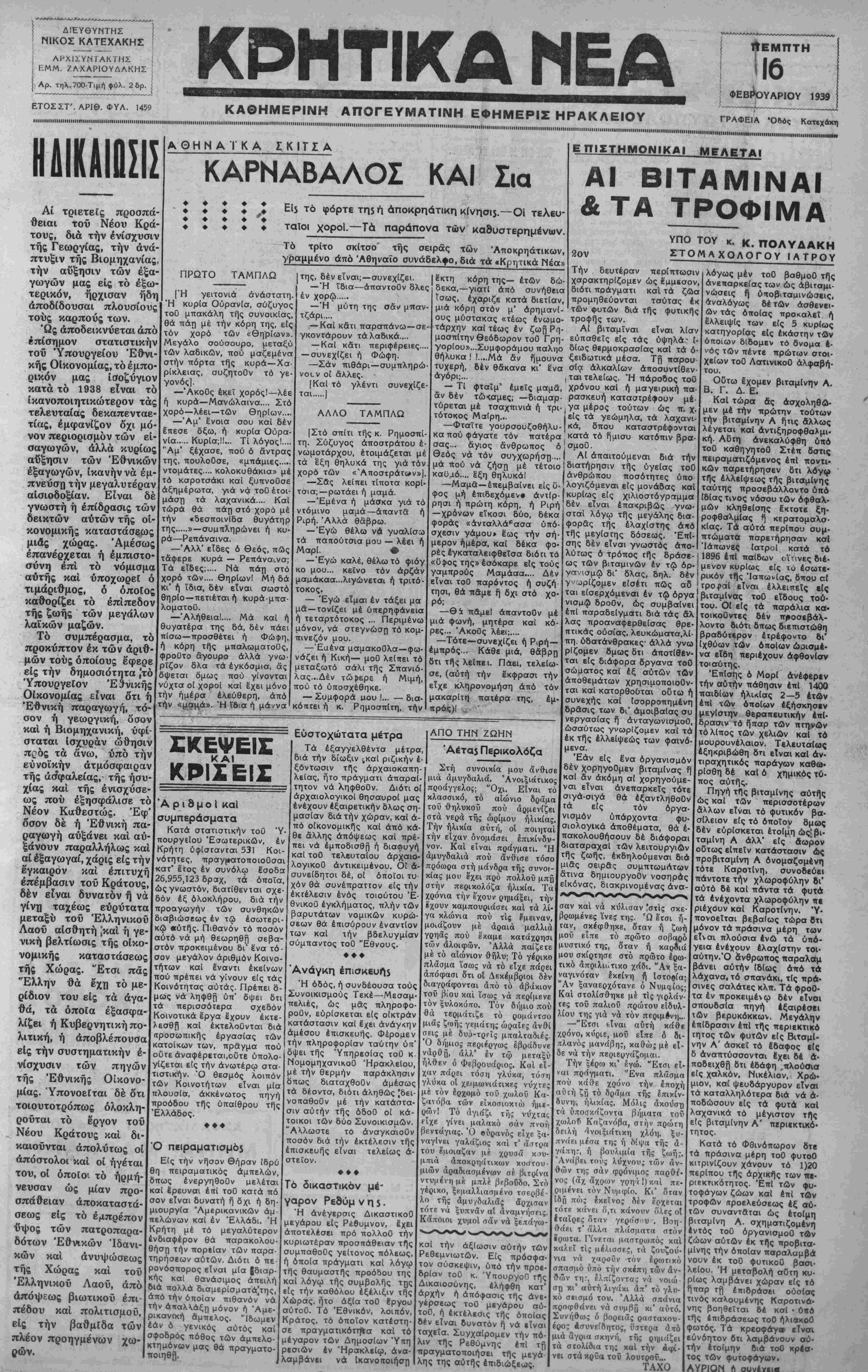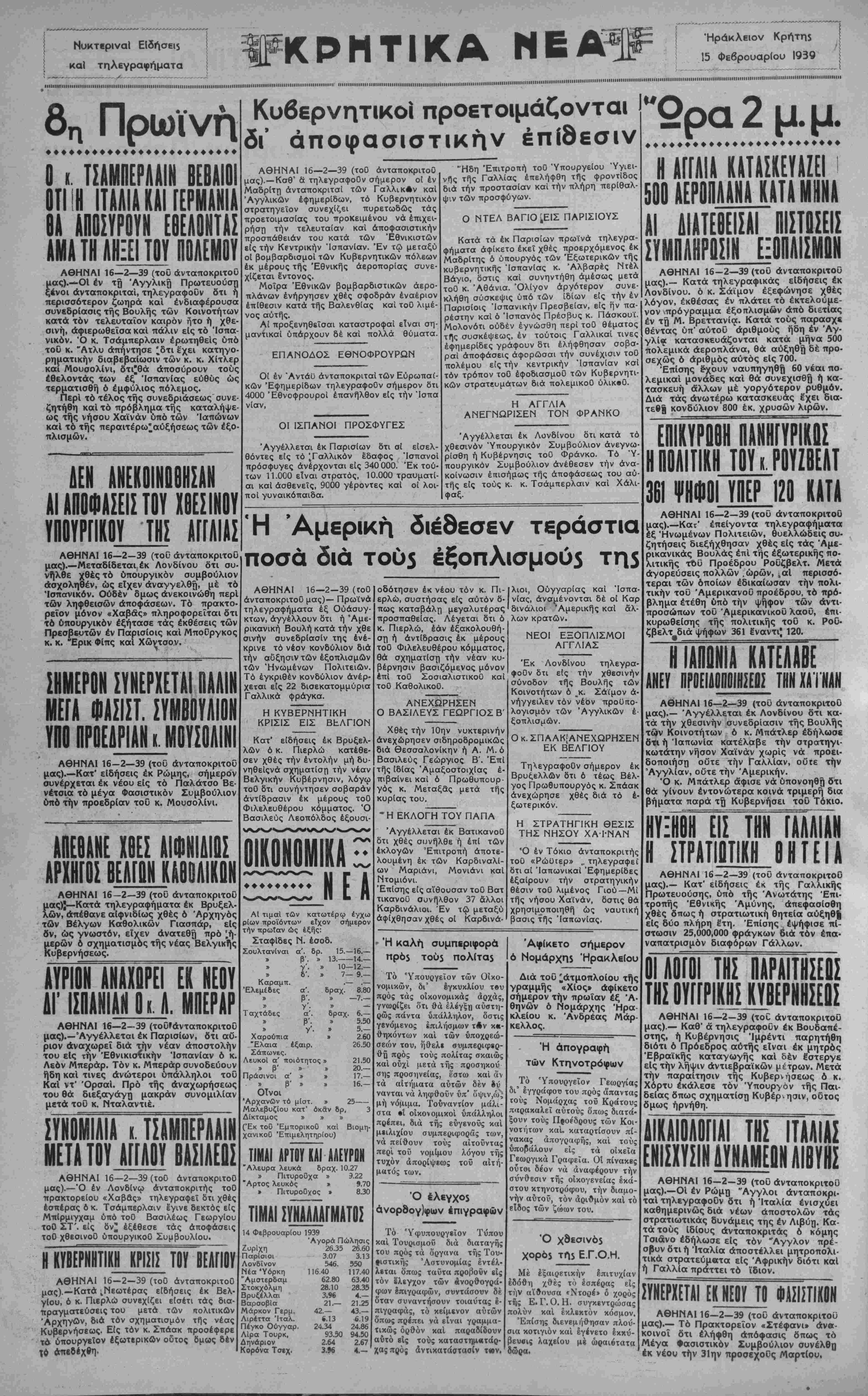 ΑΘΗΝΑΙ 16—2—39 (τοϋ ανταποκριτού