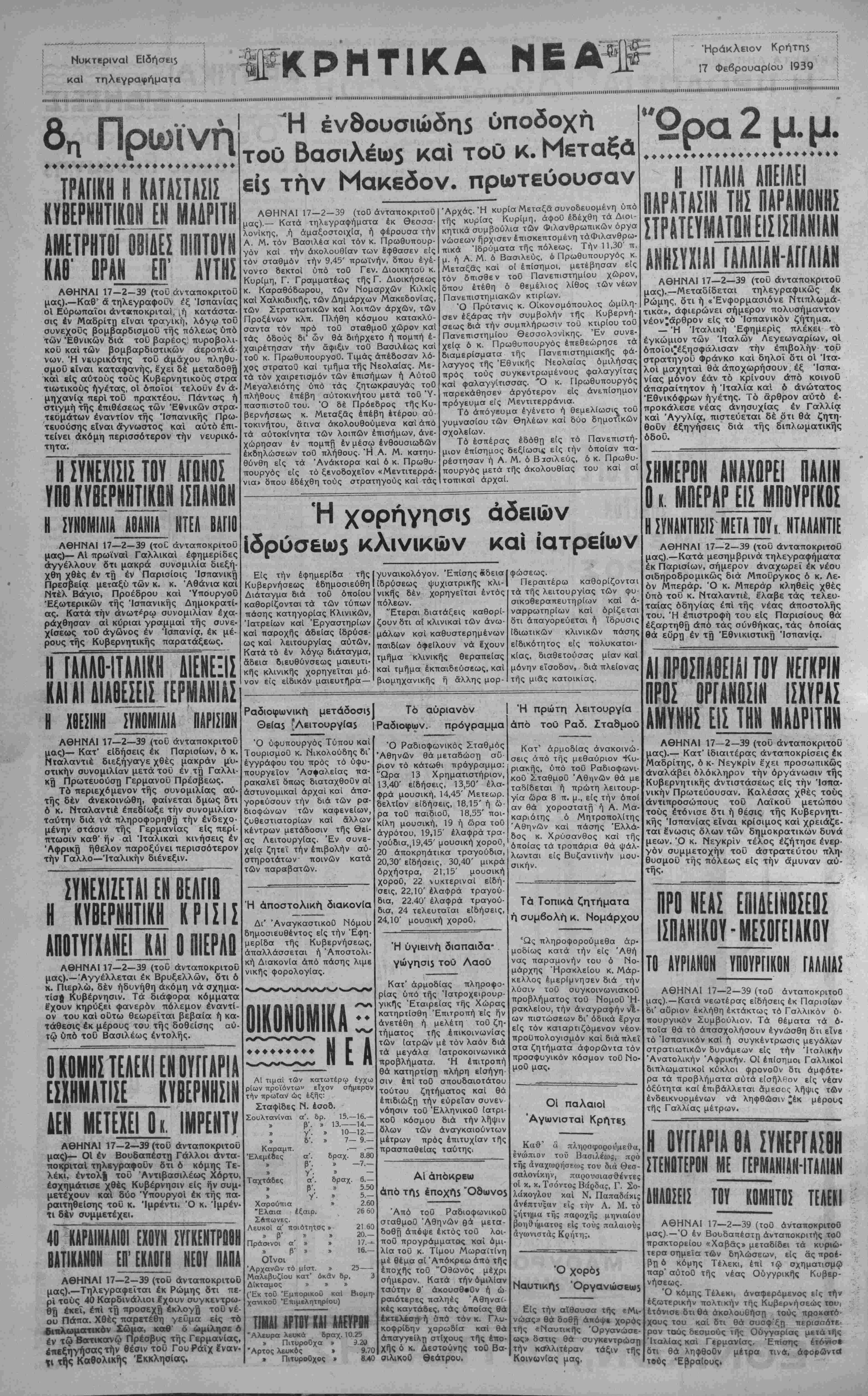 ΑΘΗΝΑΙ 17—2—39 (του ανταποκριτού