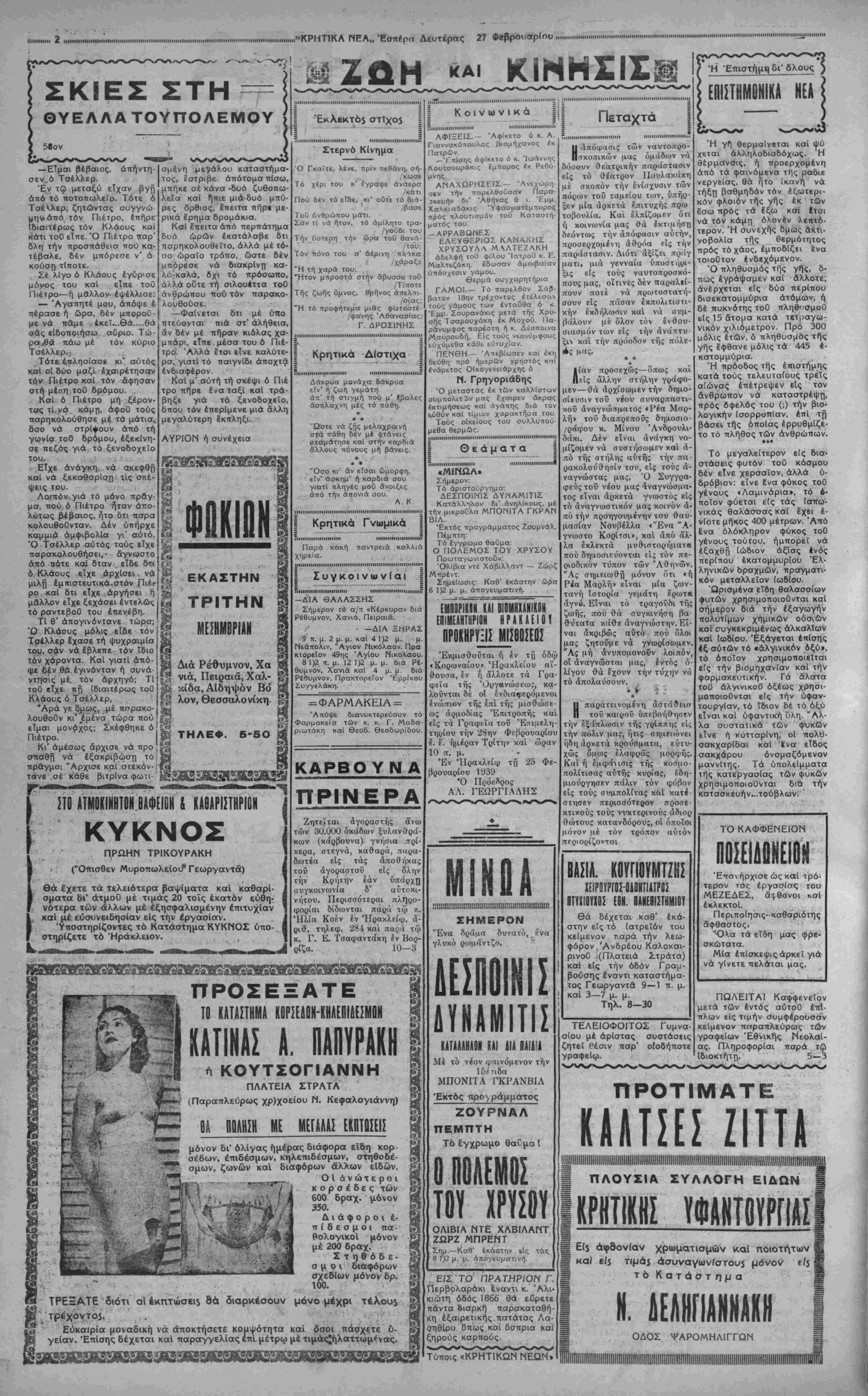 ΑΘΗΝΑΙ 27—2—39 (του άντοβποκριτοΰ