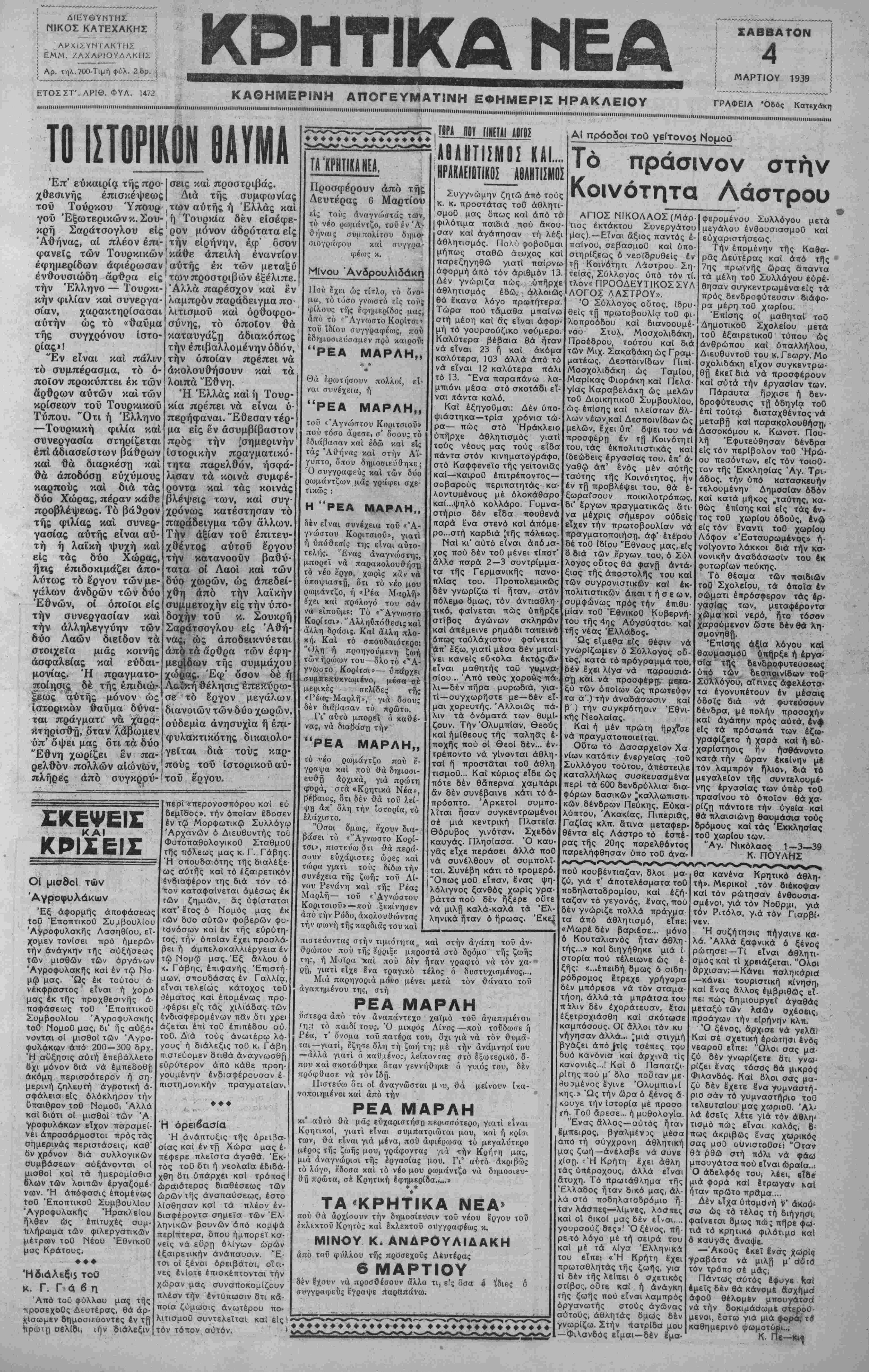 ΑΘΗΝΑΙ 4—3—39 (τοΟ άνταποκριτοΟ