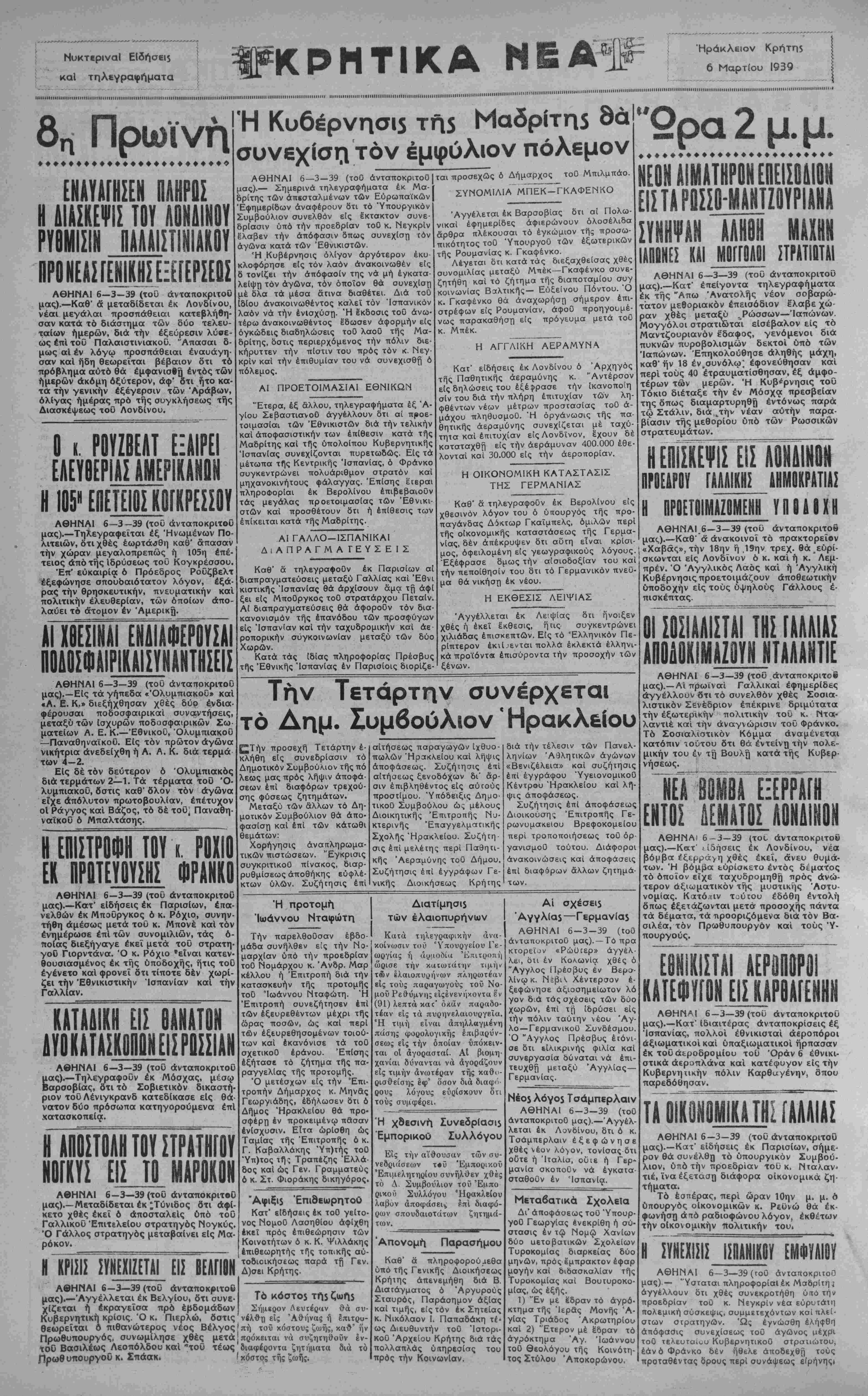 ΑΘΗΝΑΙ 6-3-39 (τοϋ ανταποκριτού