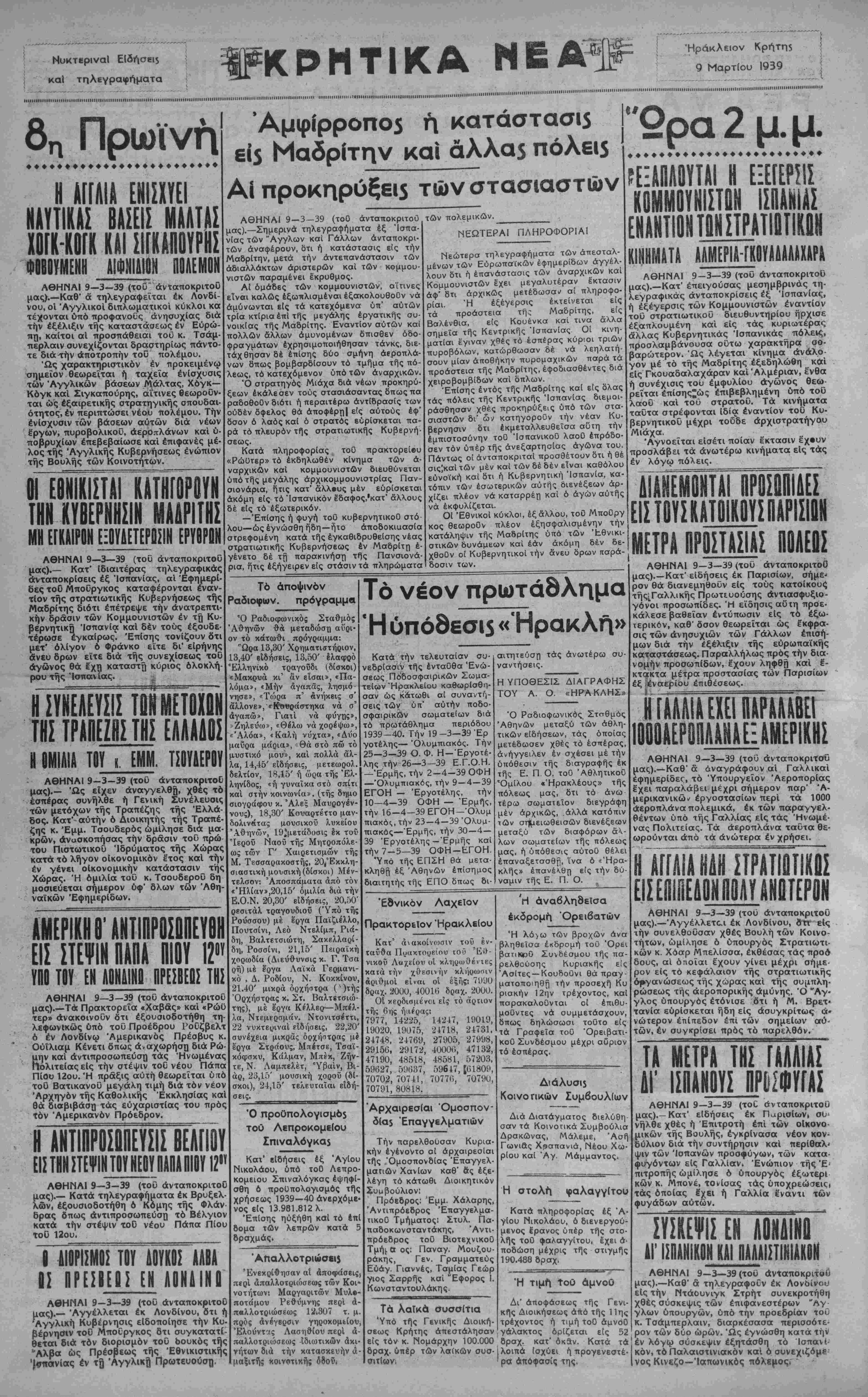 ΑΘΗΝΑΙ 9—3—39 (τοΰ ανταποκριτού