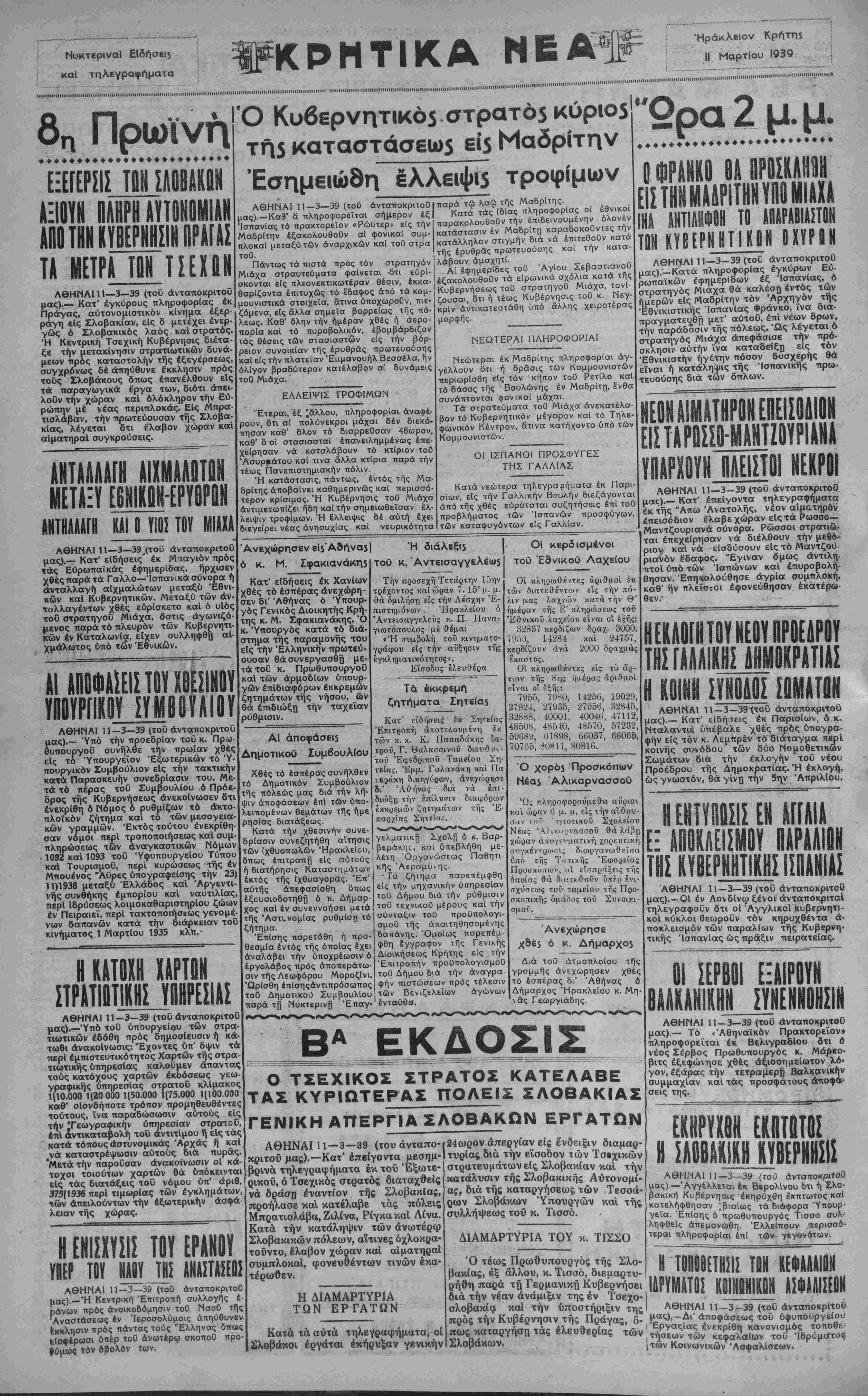 ΑΘΗΝΑΙ 11—3—39 (του άνταποκριτοΟ