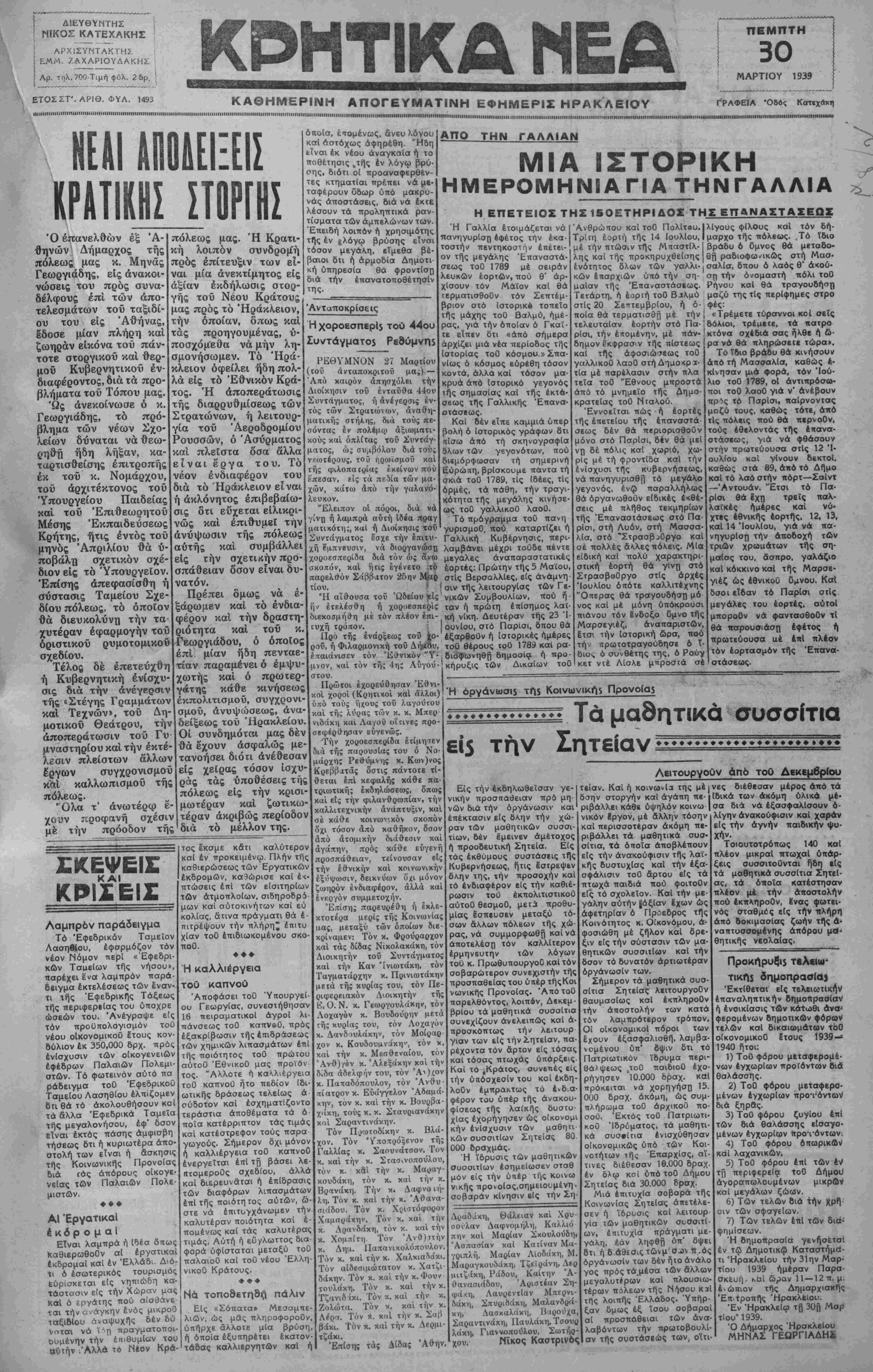 ΑΘΗΝΑΙ 30—3—39 (του άνταποκριτοϋ