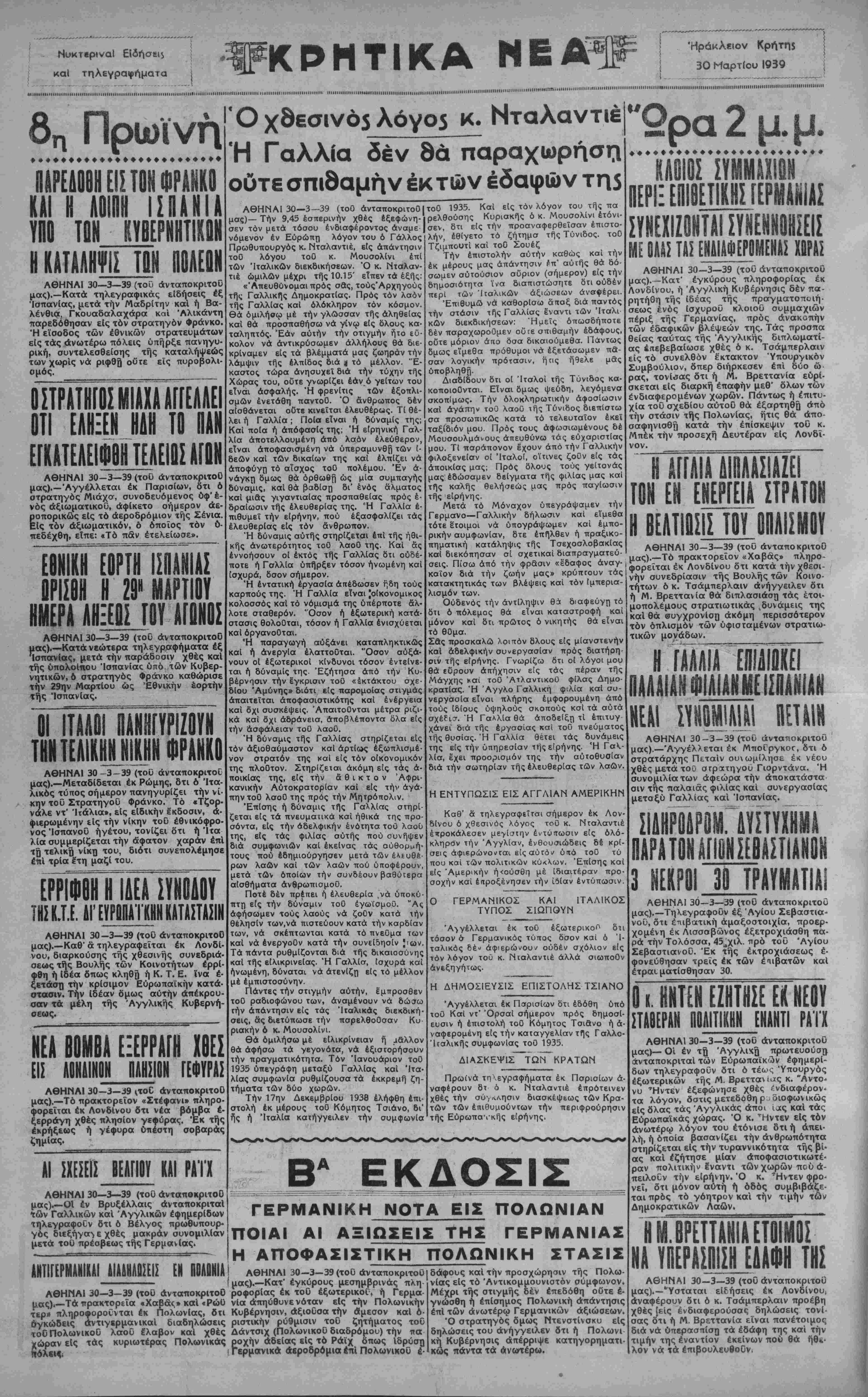 ΑΘΗΝΑΙ 30—3—39 (του ανταποκριτού