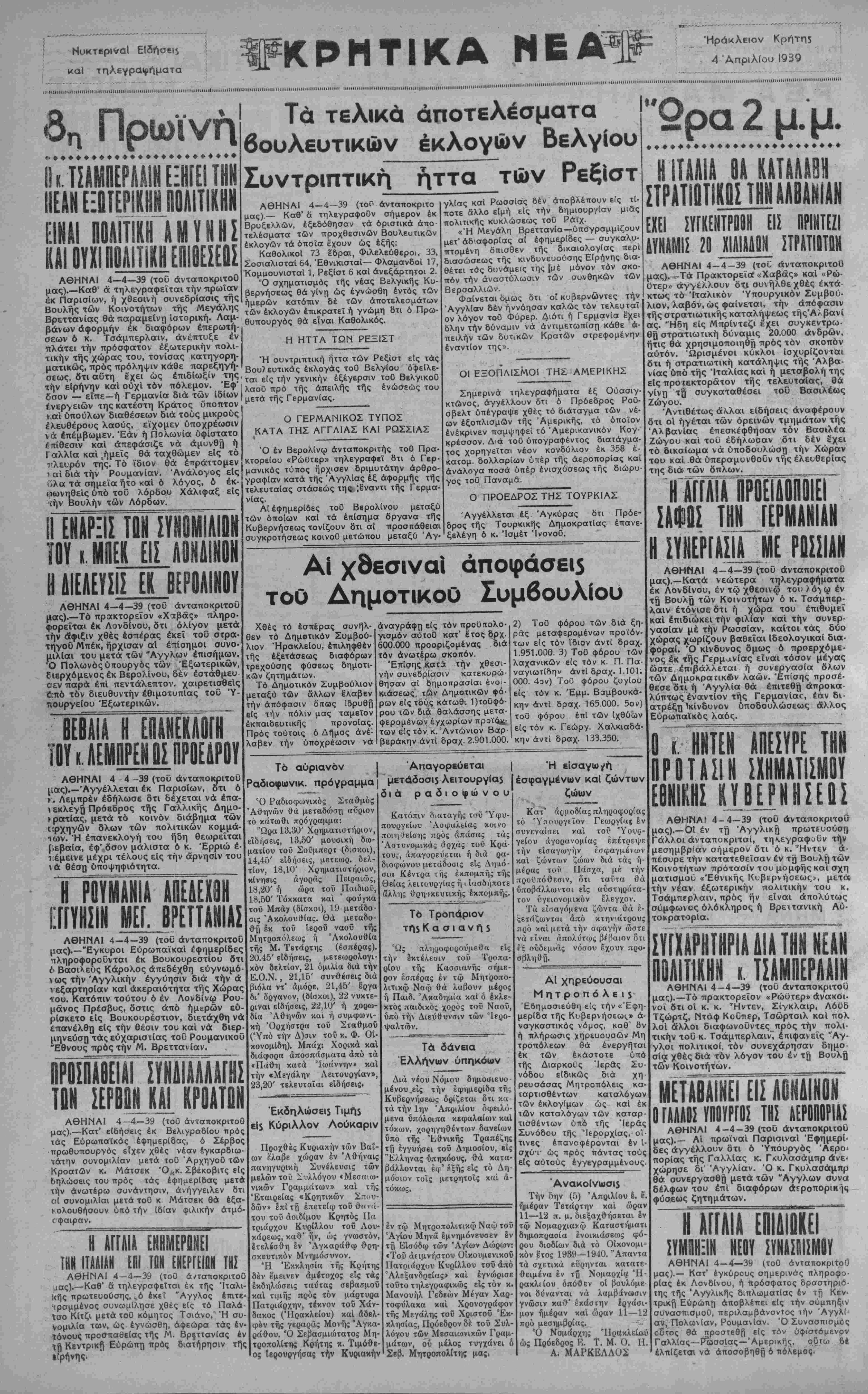 ΑΘΗΝΑΙ 4-4-39 (του άνταποκριτοΟ