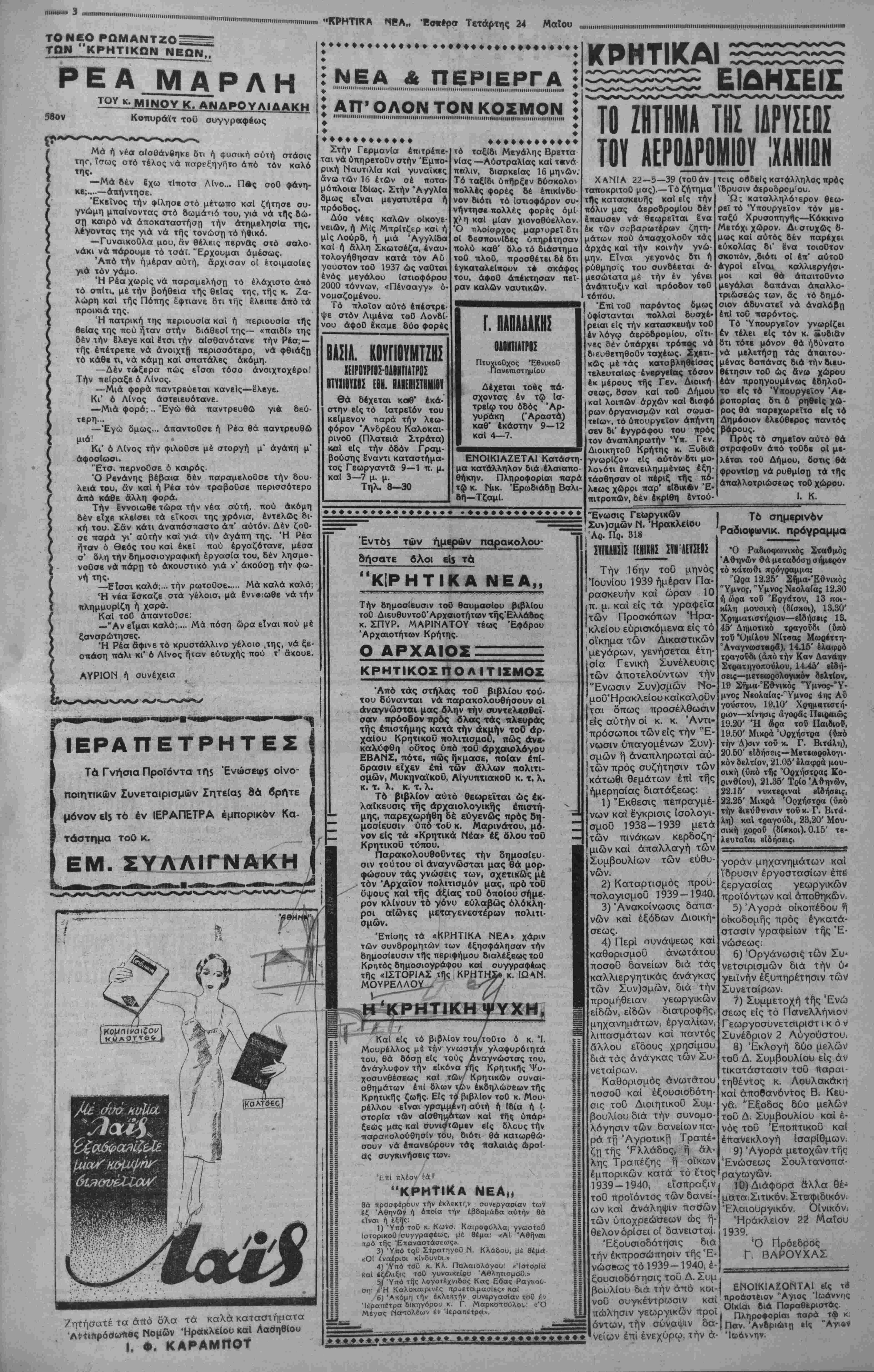 ΑΙ εκλεκτά! συνΕργασίαι των «Κρητικών Νέων»