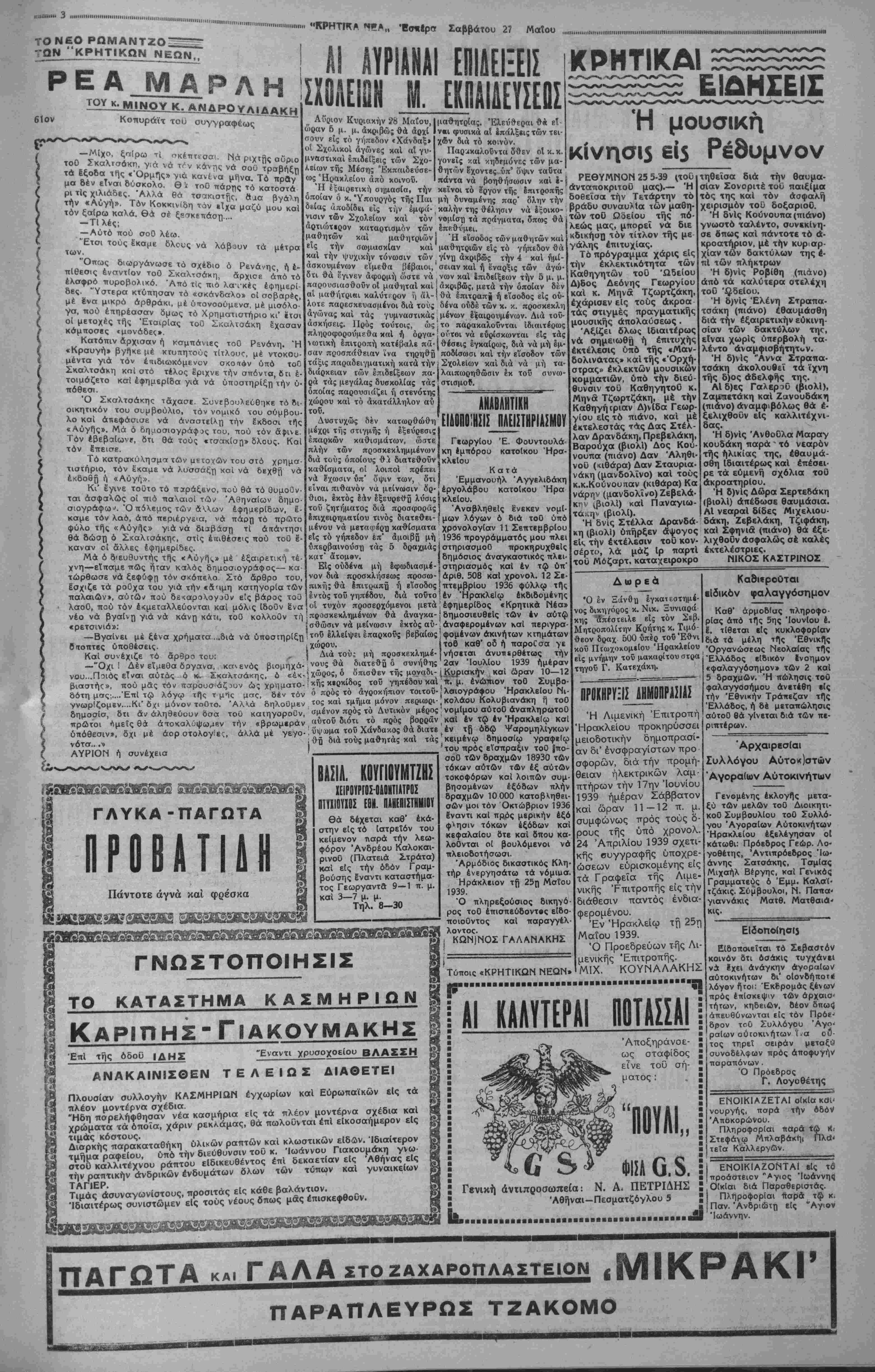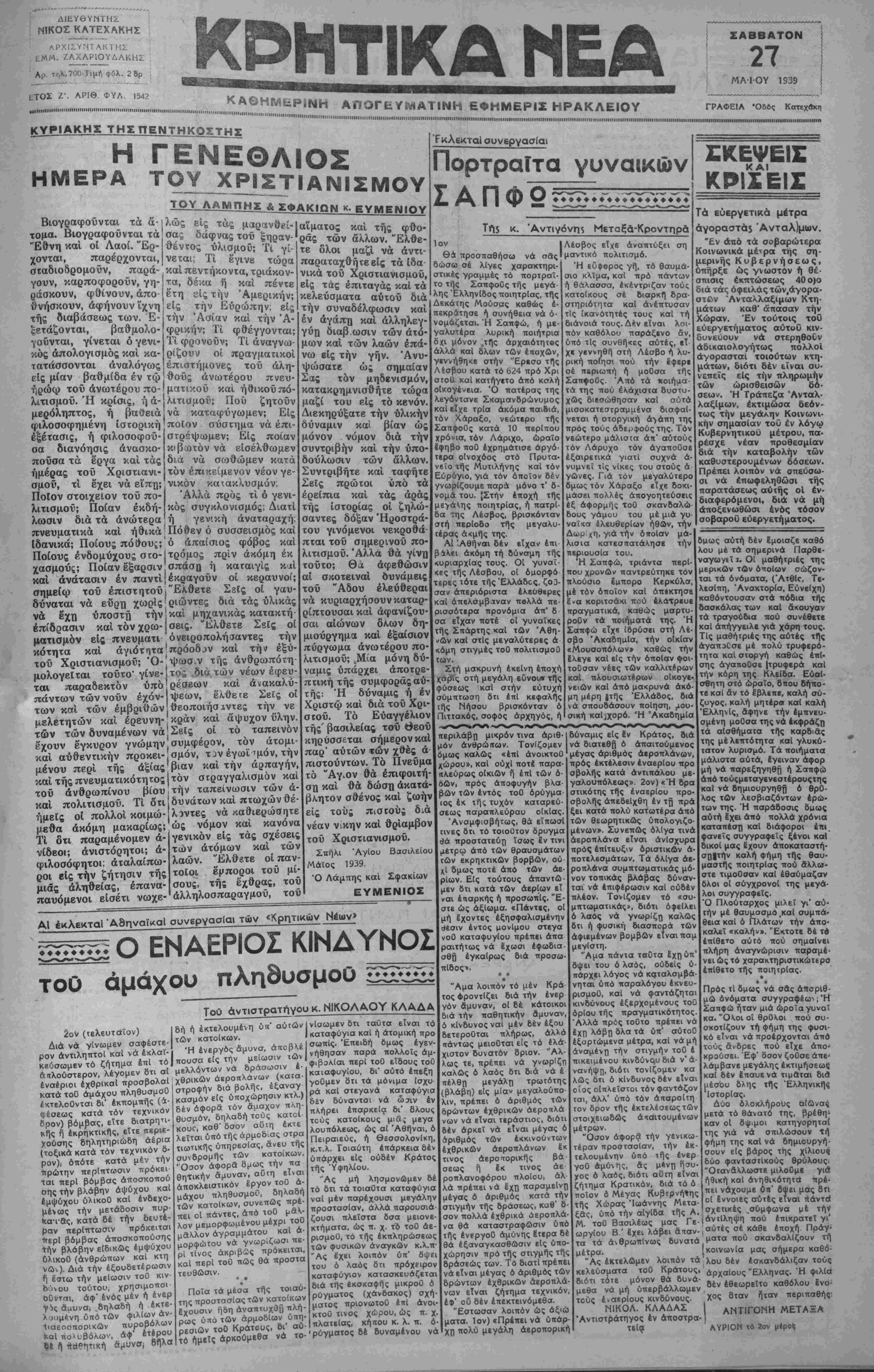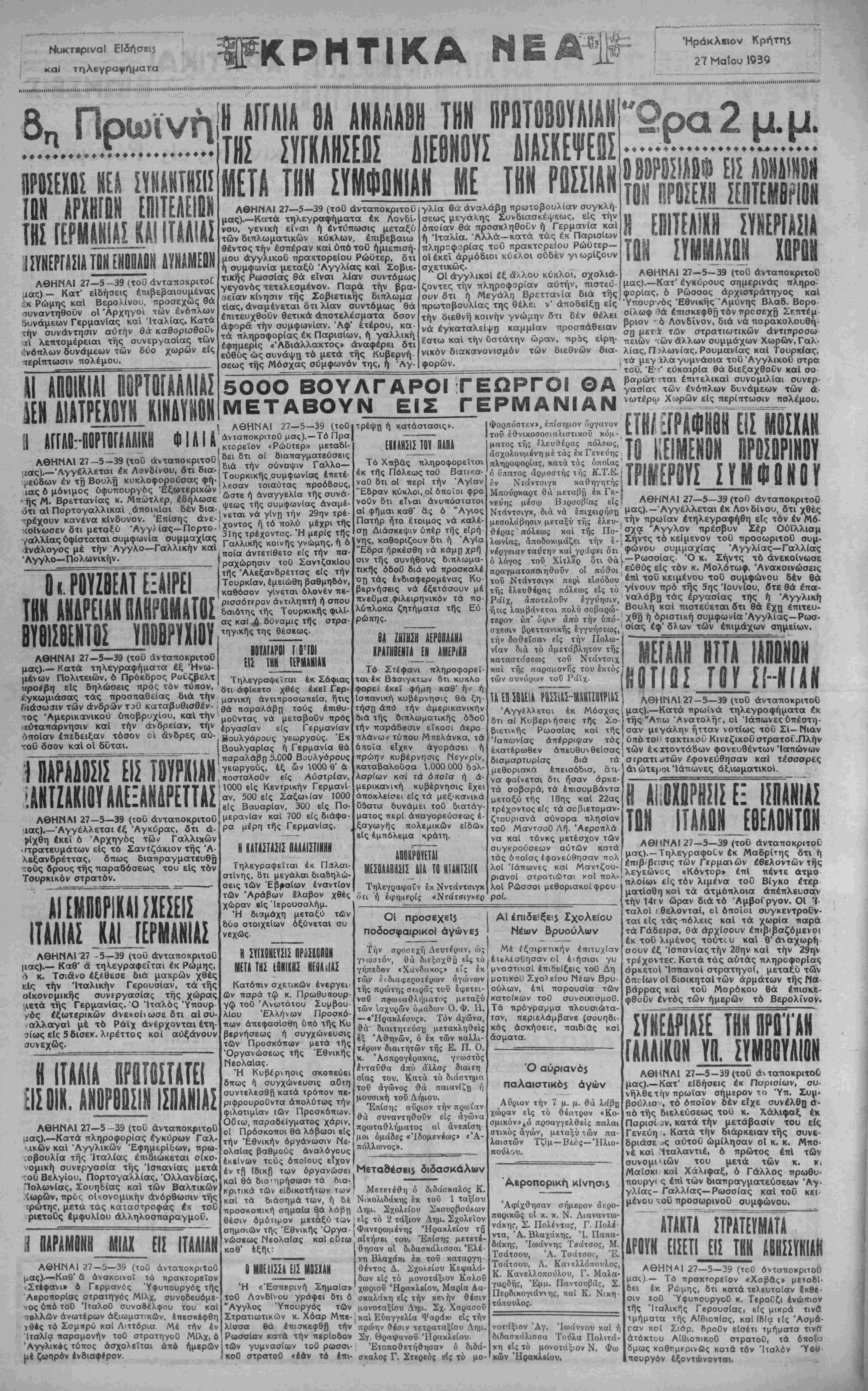 ΑΘΗΝΑΙ 27—5-39 (τοϋ άνταποκριχοΟ