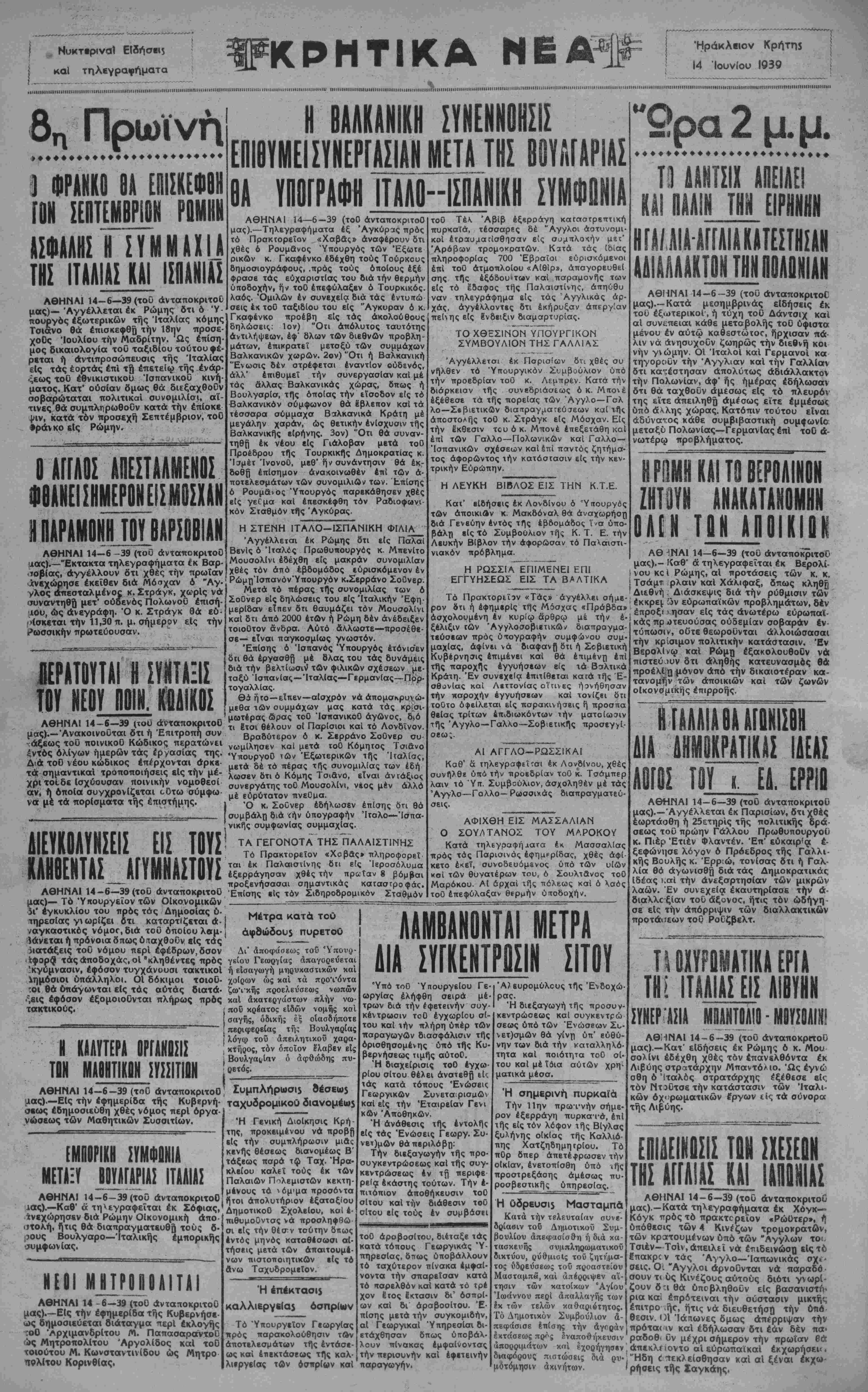 ΑΘΗΝΑΙ 14-6—39 (τοϋ ανταποκριτού