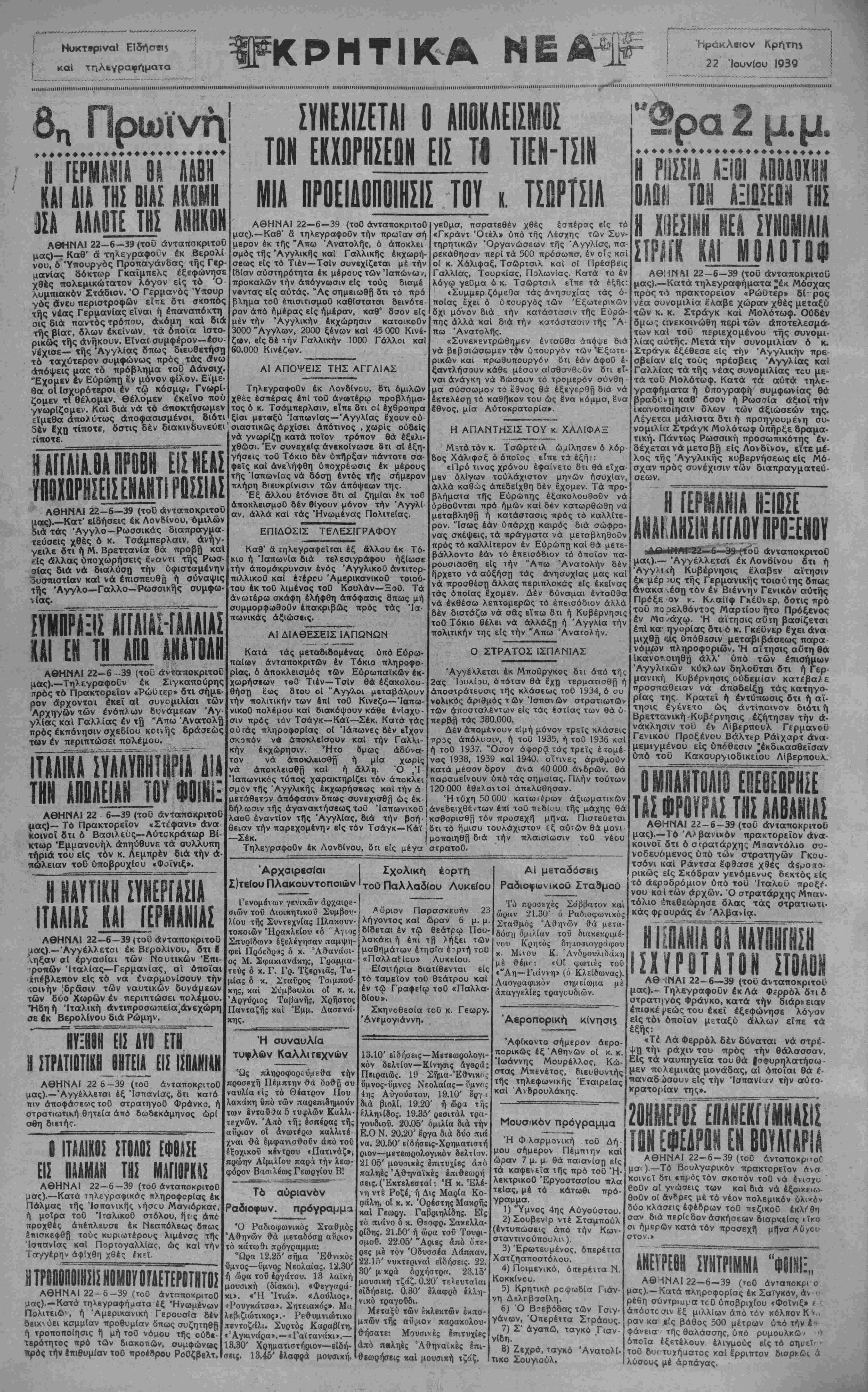 ΑΘΗΝΑΙ 22-6-39 (του άνταποκριτοΟ