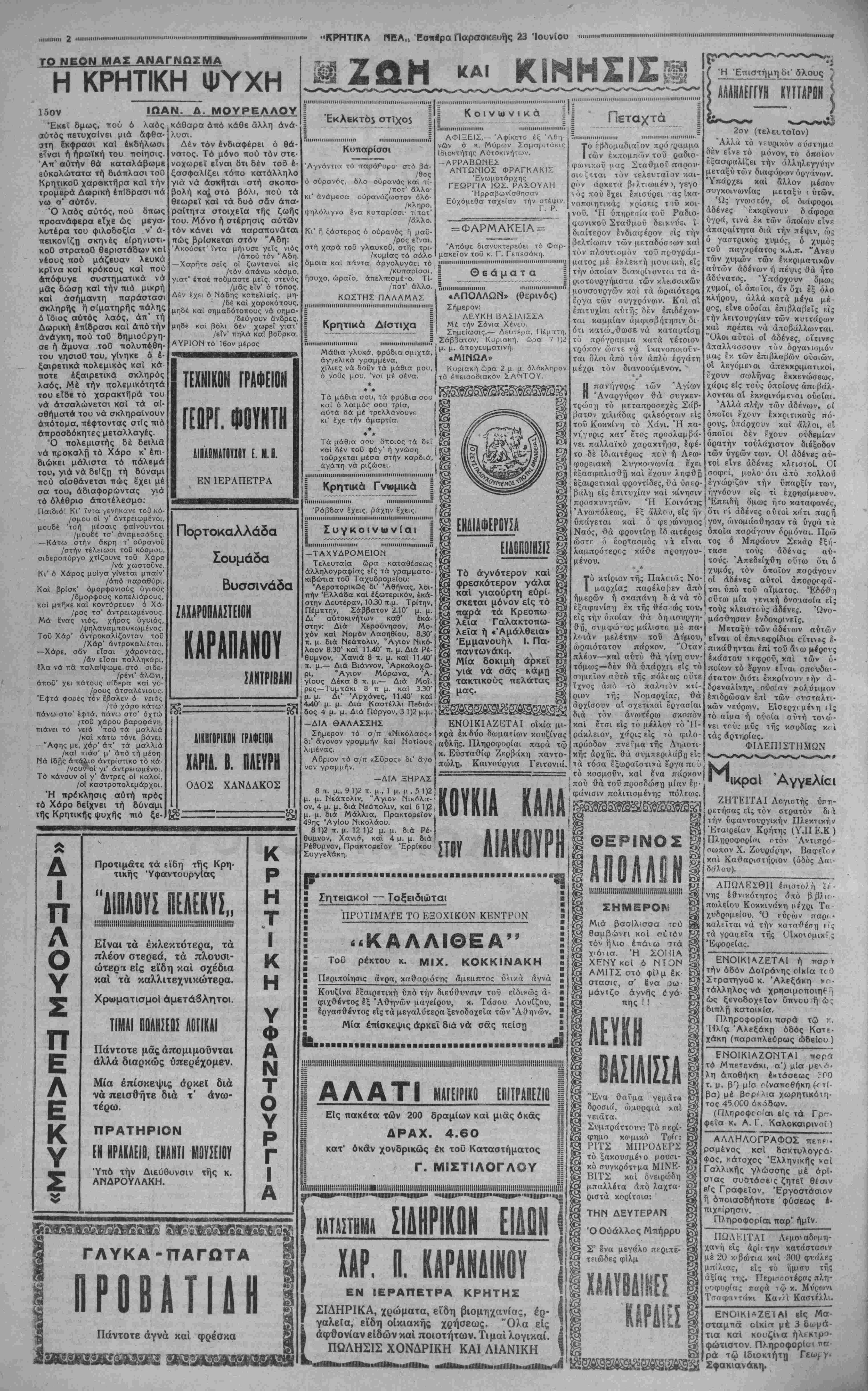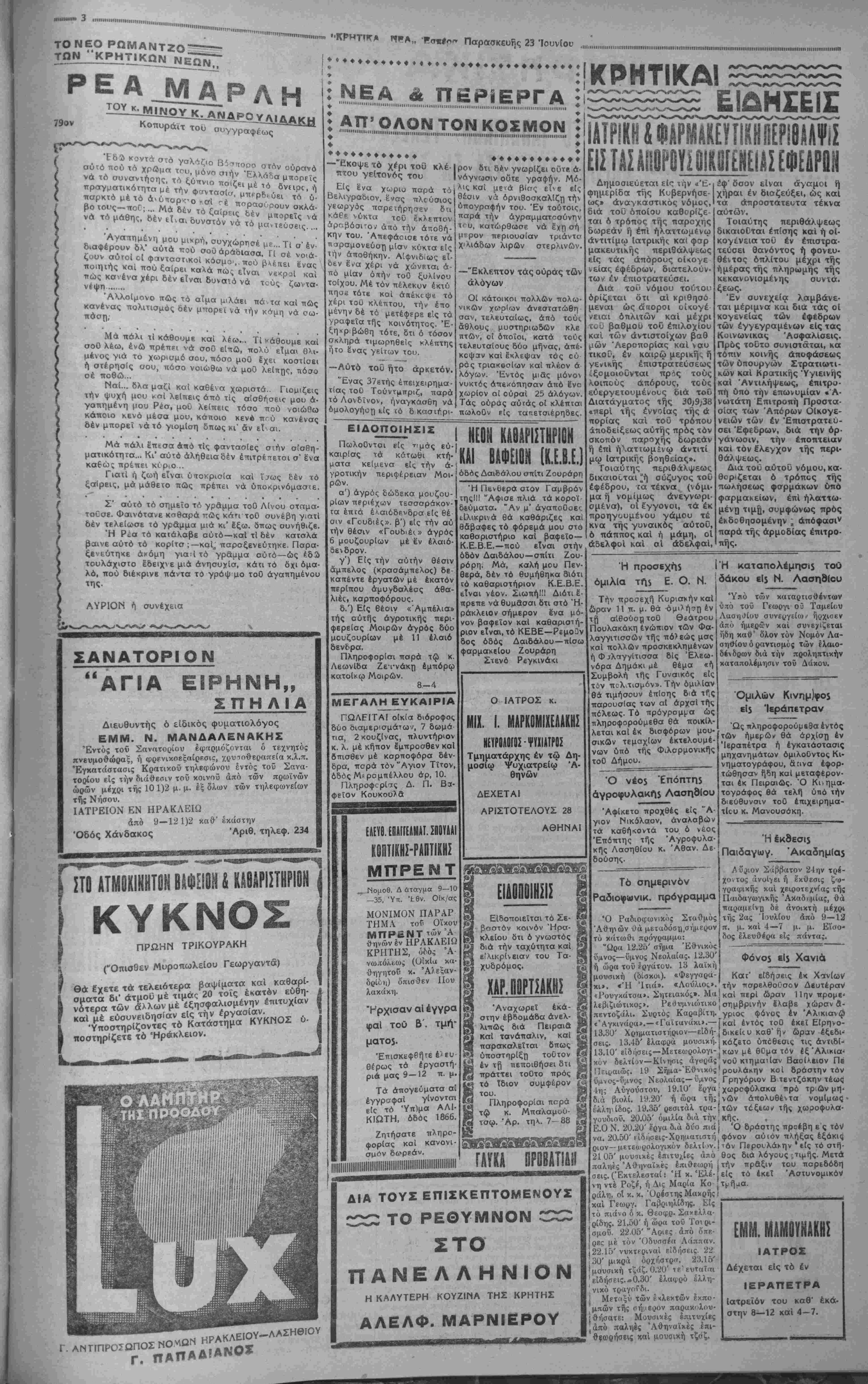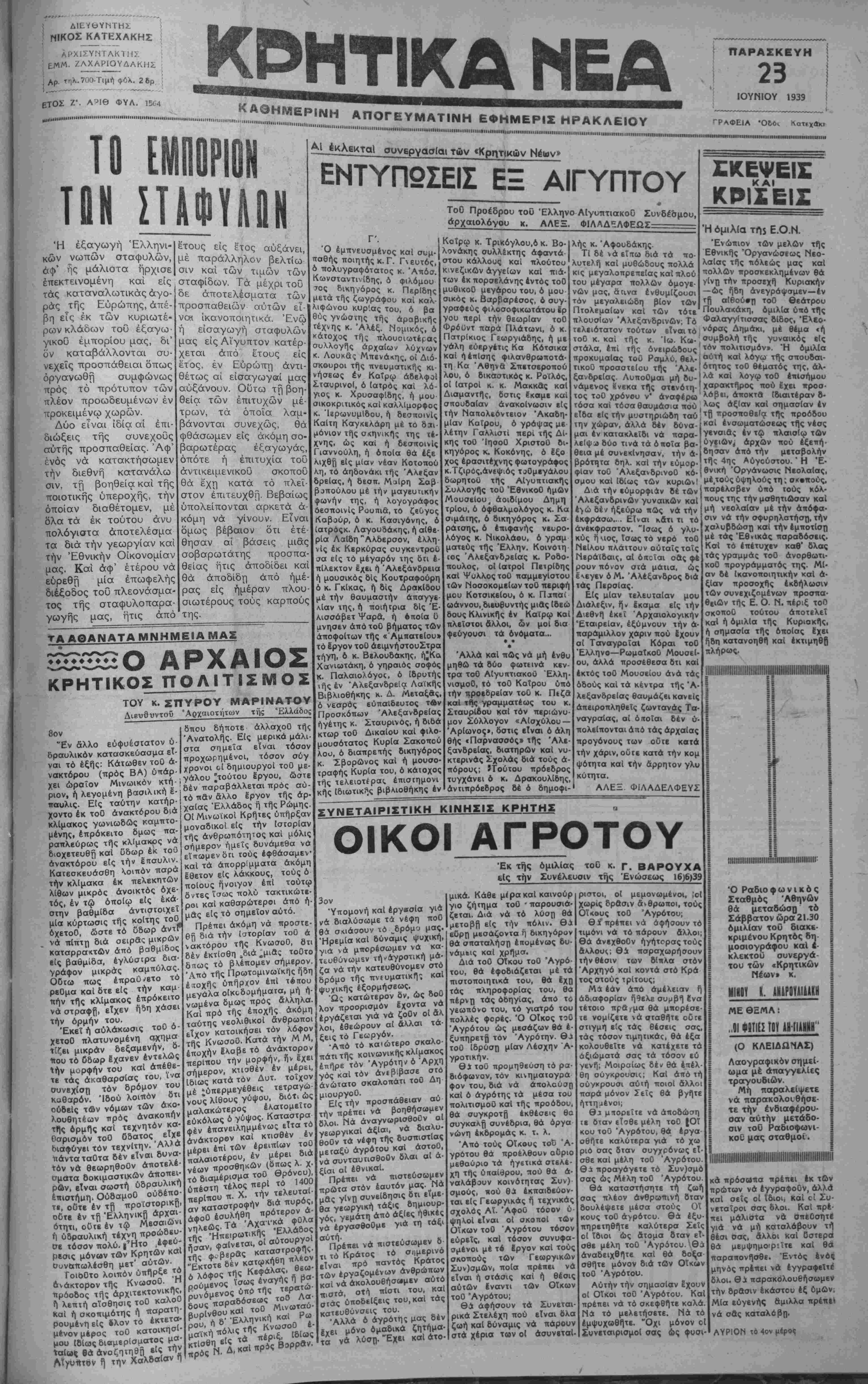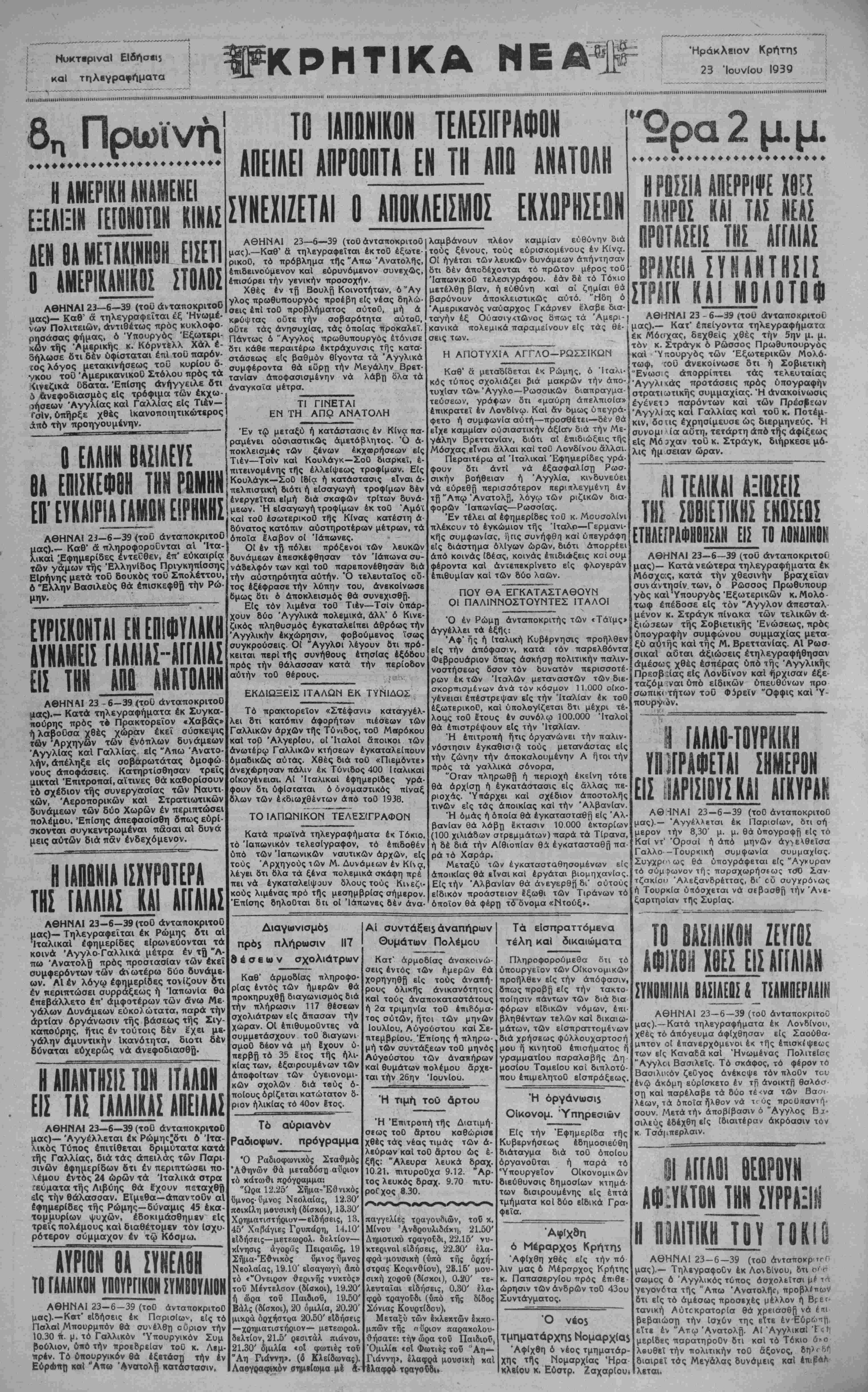 ΑΘΗΝΑΙ 23—6—39 (τοϋ ανταποκριτού