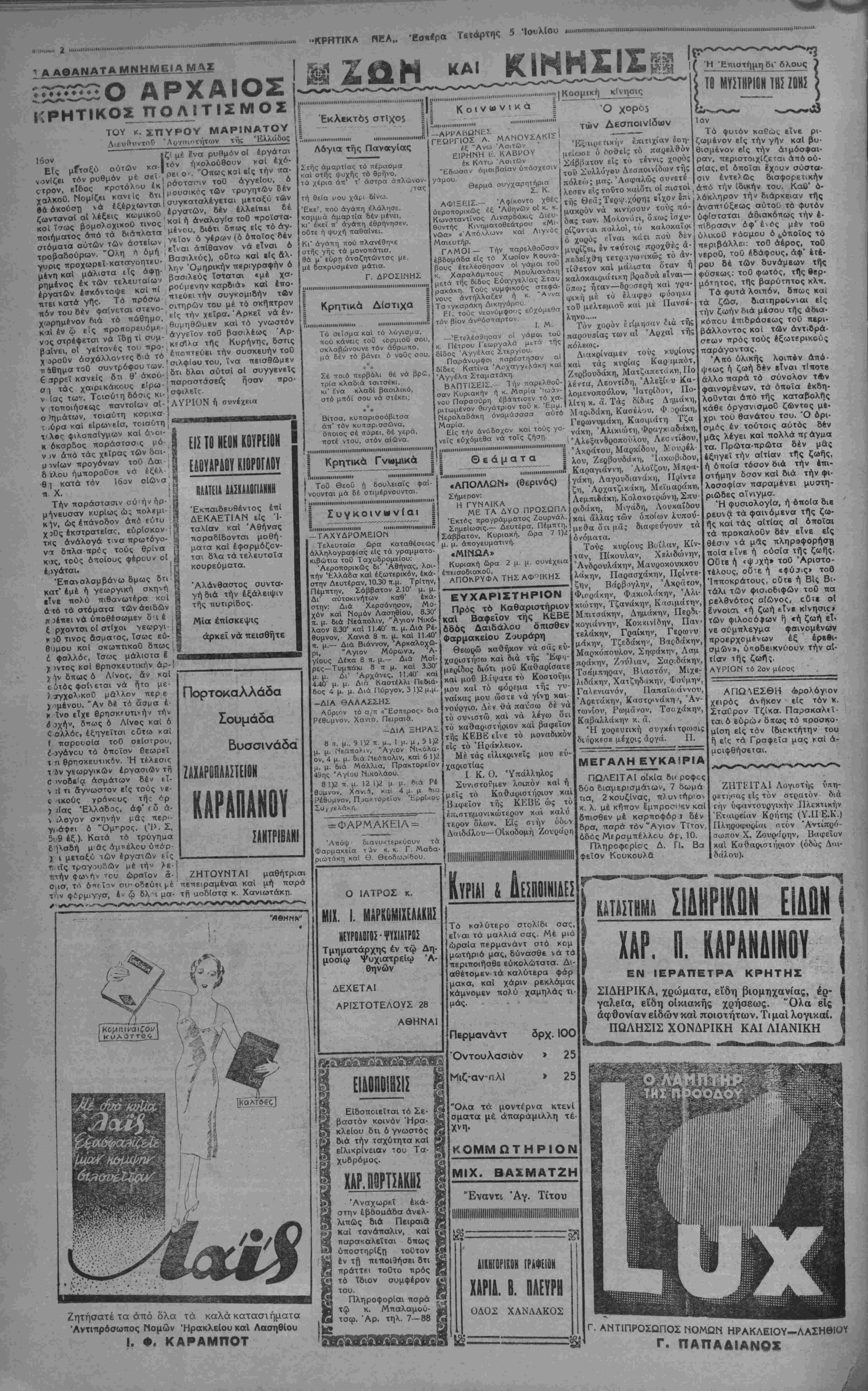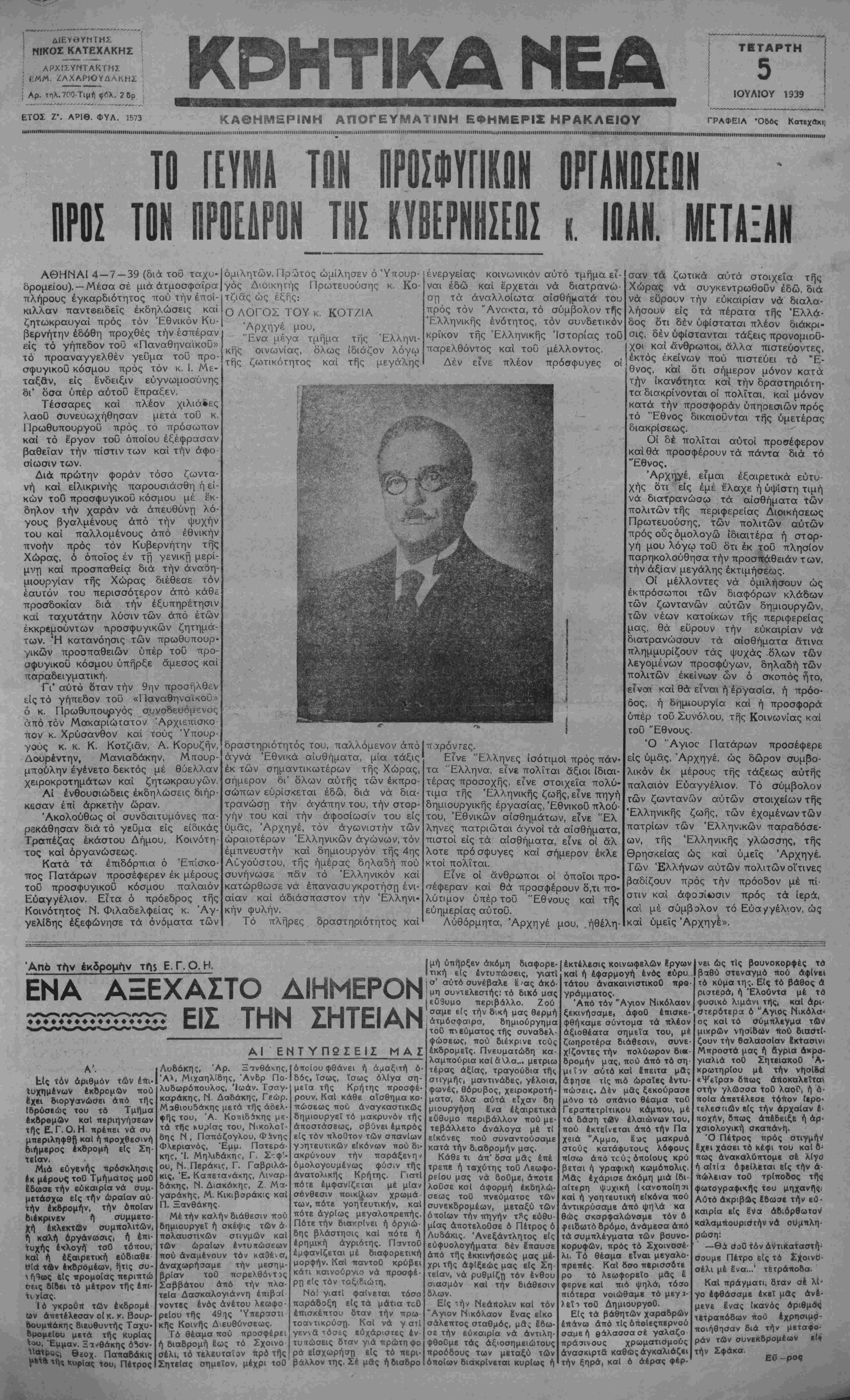 • Αρ. τηλ.700-Τιμή φ<ίλ. 2 Βρ ετοσ ζ αριθ. φυλ. 1573 ΚΑΘΗΜΕΡΙΝΗ ΑΠΟΓΕΥΜΑΤΙΝΗ ΕΦΗΜΕΡΙΣ ΗΡΑΚΛΕΙΟΥ γραφεία ·οδ6ς Κατεχβκη ΙΙΙΙΙΙΙΙΐηηΜΙΐηΐΙΙΙΙΙΙΙΙΙΙΗΙΙΜΙΙΙΙΙΙΙΙΙΜΙΙΙΙΙΙΙΙΙΙΚΙΙΙΙΙΙΙΗΙ........■■■ΙΙΙΙΙΙΜΙΙΙΙΙ·ΜΙ·ΜΙΙ·ΙΙΙΙΙ·ΙΙΜΙ.....■ΙΙΙΙΙΙ11ΙΙΠ.ΙΙΠΙΙΙΙΙΙΙ1Ι.Ι1ΙΙΙΙ1Κ1Ι1ΠΙΙΙ1ΙΙΙΙΙΙΙ11ΙΙΙΠΙΙΙ1......ΜΙΙΚΙΙΙΙΜΙΙΠΙΙΙΙΙΙΙΜΙΙΙΙΙΙΙΙΜΙ·!!·.....ΙϋΙΙΙ,ιιϋΜΙΙΙΜΙΙΙΙΠΠΜΙΙΙΙΐηΐΙΙΚΙΙΙΙΙΙ.......Ι'Ι'ΗΙΙΙΙΙΙΙΙΙΙΗΙΙΙΙΗΙΙΙΙΙΙΙΙΙΙΙΙΙΙΙΙΙΙΗΙΙΙΙΙΙΙΙΙΙΙΙΙ!,,!,,,,,,,,,,,,,,,,,,,,,,,,,,,,,,,,,,,,,,,,,,,,,,,,,,,,,,,,,,,,,,, ΤΟ ΓΕΥΜΑ ΤΟΝ Ι ΤΟΝ ΠΡΟΕΔΡθΝ ΤΗΣ Ι. ΑΘΗΝΑΙ 4-7-39 (διά του ταχυ¬ δρομείου).—Μέσα σε μιά ατμόσφαιρα πλήρους έγκαρδιότητος πού τήν έποί- κιλλαν παντ©ειδεΐς εκδηλώσεις και ζητωκραυγαΐ προς τον Έθνικόν Κυ· βερνήτην εδόθη προχθές τήν έσπέραν εις το γήπεδον τοΟ «Παναθηναϊκού» τό προαναγγελθέν γεΟμα του προ¬ σφυγικού κόσμου προς τον κ. Ι. Με- ταξαν, εις έ'νδειξιν ευγνωμοσύνης 8ι* δσα υπέρ αύτου επραξεν. Τέσσαρες και πλέον χιλιάδες λαού συνευωχήθησαν μετά του κ. Πρωθυπουργού προς το πρόσωπον και τό έ'ργον του οποίου εξέφρασαν βαθεϊαν τήν πίστιν των καί τήν άφο· σίωσιν των. Διά πρώτην φοράν τόσο ζωντα¬ νή καί είλικρινής παρουσιάσθη ή εΐ- κών τοΟ προσφυγικού κόσμου με εκ- δηλον τήν χαράν νά άπευθύνη λό¬ γους βγαλμένους άπό τήν ψυχήν του καί παλλόμενους άπό έθνικήν πνοήν προς τόν Κυβερνήτην της Χώρας, ό όποιος έν τη γενική μερί- μνη καί προσπάθεια δια τήν αναδη- μιουργίαν της Χώρας διέθεσε τόν εαυτόν του περισσότερον άπό κάθε προσδοκίαν διά τήν έξυπηρέτησιν καί ταχυτάτην λύσιν των άπό ετών εκκρεμούντων προσφυγικών ζητημά¬ των. Η κατανόησις των πρωθυπουρ¬ γικών προσπαθειών υπέρ του προ¬ σφυγικού κόσμου υπήρξε άμεσος καί παραδειγματική. Γι" αυτό δταν τήν 9ην ττροοήλθεν είς τό γήπεδον τοϋ «Παναθηναϊκού* ό κ. Πρωθυπουργός συνοδευόμενος άπό τον Μακαριώτατον Άρχιεπισκο πον κ. Χρύσανθον καί τους Υπουρ¬ γούς κ. κ. Κ. Κοτζιδν, Α. Κορυζήν, Δουρέντην, Μανιαδάκην, Μπουρ- μπούλην έγένετο δεκτός με θύελλαν χειροκροτημάτων καί ζητωκραυγών. Αι ενθουσιώδεις εκδηλώσεις διήρ¬ κεσαν έπί άρκετήν ώραν. Ακολούθως οι συνδαιτυμόνες πα- ρεκάθησαν διάτό γεΟμα είς είδικάς Τράπεζας εκάστου Δήμου, Κοινότη¬ τος και οργανώσεως. Κατά τά επιδόρπια ό Επίσκο¬ πος Πατάρων προσέφερεν έκ μέρους του προσφυγικού κόσμου παλαιόν Εύαγγέλιον. Είτα ό πρόεδρος της Κοινότητος Ν. Φιλαδέλφειας κ. Αγ¬ γελίδης έξεφώνησε τά ονόματα των ομιλητών. Προτος ώμίλησεν ό Υπουρ¬ γός Διοικητής Πρωτευούσης κ. Κο- τζιας ώς έξης: Ο ΛΟΓΟΣ ΤΟΥ κ. ΚΟΤ/ΙΑ "Αρχηγέ μου, "Ενα μργα τμήμα της Ελληνι¬ κής οινωνίας, δλως ιδιάζον λόγω της ζωτικότητος καί τής μεγάλης ενεργείας κοινωνικόν αυτό τμήμα εί¬ ναι εδώ καί έρχεται νά διατράνω¬ ση τα αναλλοίωτα αισθήματα του προς τόν "Ανακτά, τό σύμβολον τής Ελληνικής ένότητος, τόν συνδετικόν κρΐκον της Ελληνικής Ιστορίας τοϋ παρελθόντος καί του μέλλοντος. Δεν ε?νε πλέον πρόσφυγες οι δραστηριότητος του, παλλόμενον άπό αγνά Εθνικά αισθήματα, μία τάξις έκ τών σημαντικωτέρων της Χώρας, σήμερον δι' όλων αυτής τών εκπρο¬ σώπων ευρίσκεται εδώ, διά νά δια¬ τράνωση τήν άγάπην του, τήν στορ- γήν του καί τήν άφοσίωσίν του εις υμάς, Αρχηγέ, τόν άγωνιστήν τών ωραιότερων Ελληνικών αγώνων, τόν έμπνευστήν καί δημιουργόν τής 4ης Αυγούστου, τής ημέρας δηλαδή που συνήνωσε παν τό Έλληνικόν καί κατώρθωσε να έπανασυγκροτήση ένι- αίαν καί άδιάστταστον τήν Έλληνι- κήν φυλήν. Τό πλήρες δραστηριότητος καί παρόντες. ΕΓνε "Ελληνες ισότιμοι προς πάν¬ τα "Ελληνα, ει