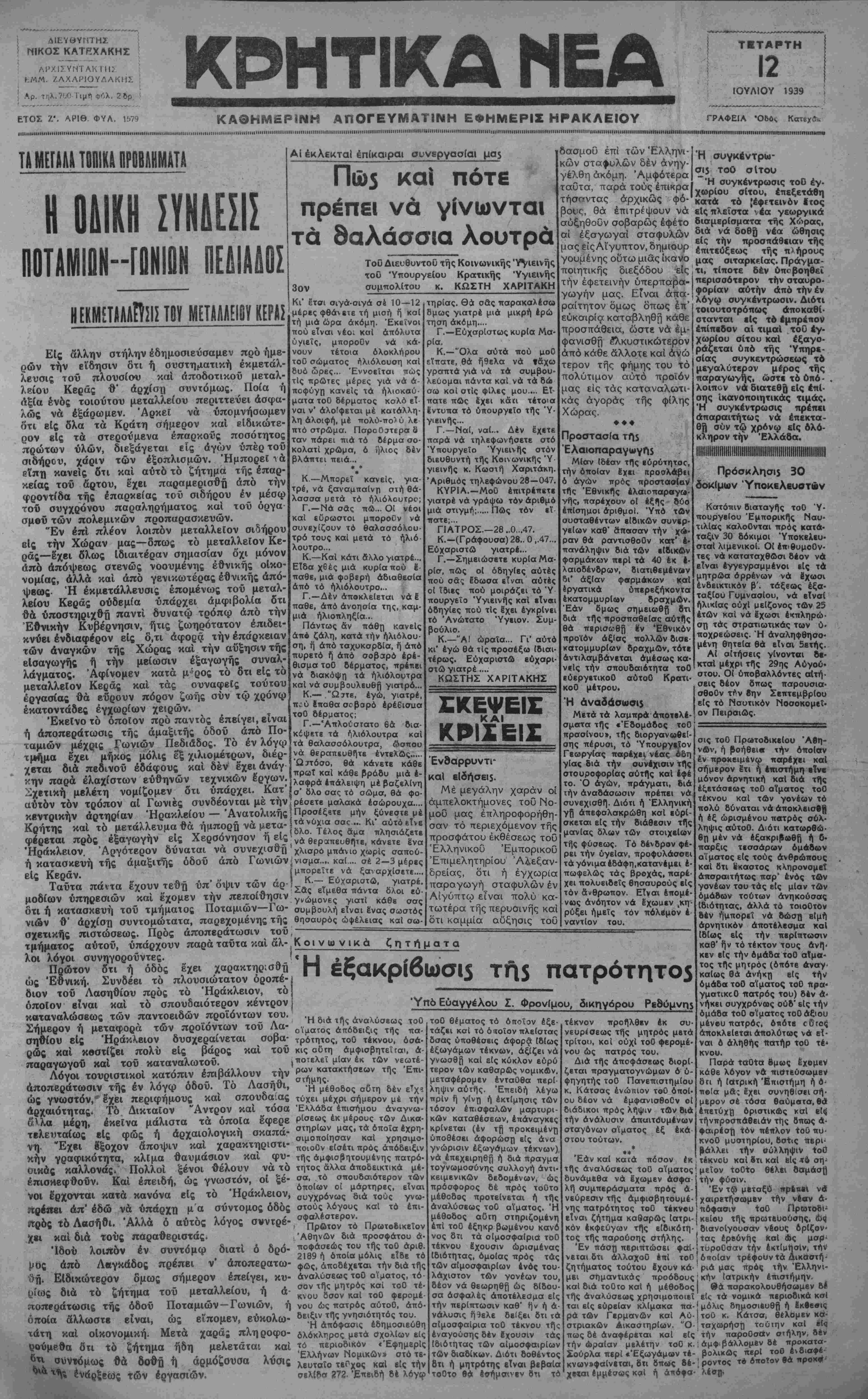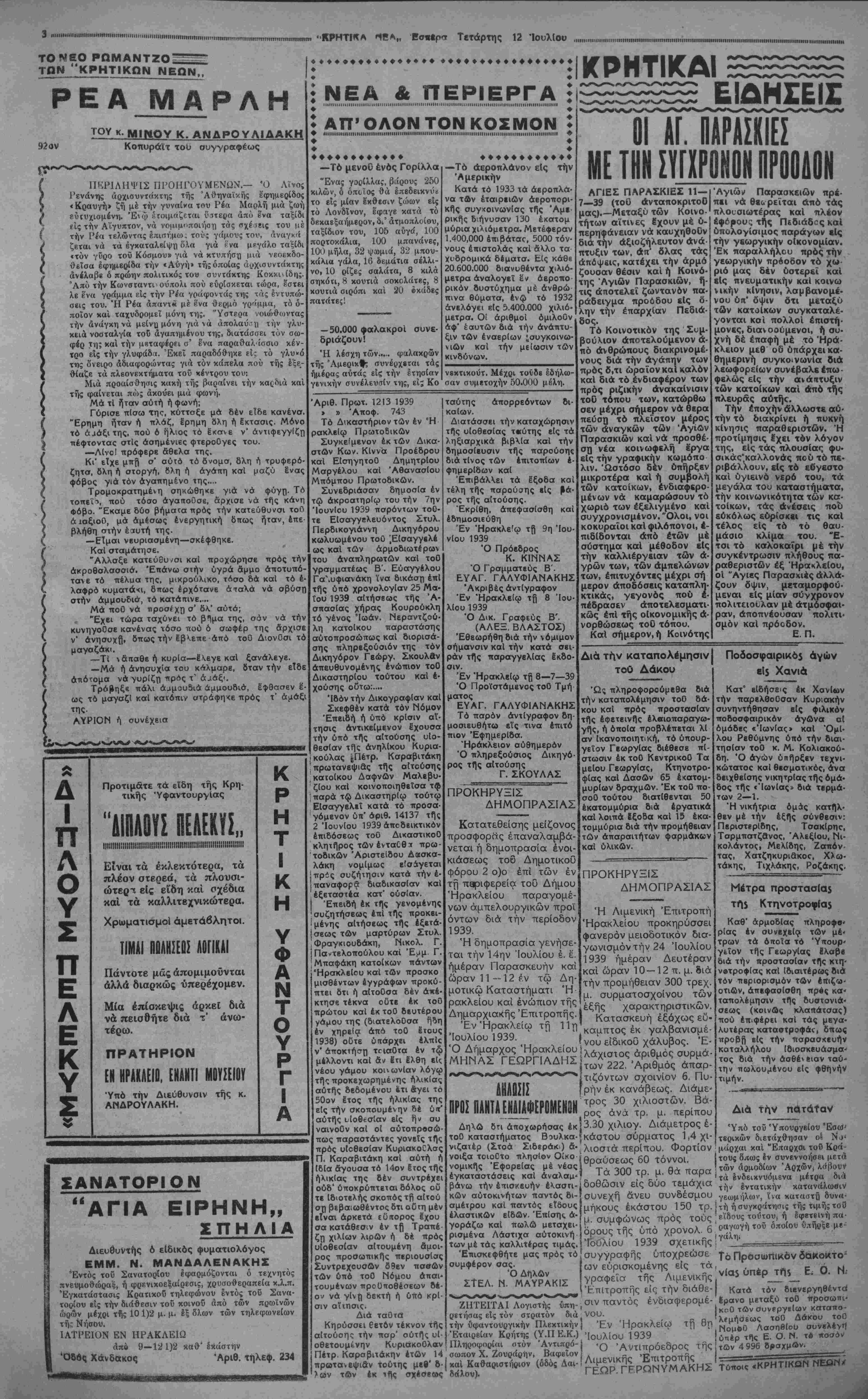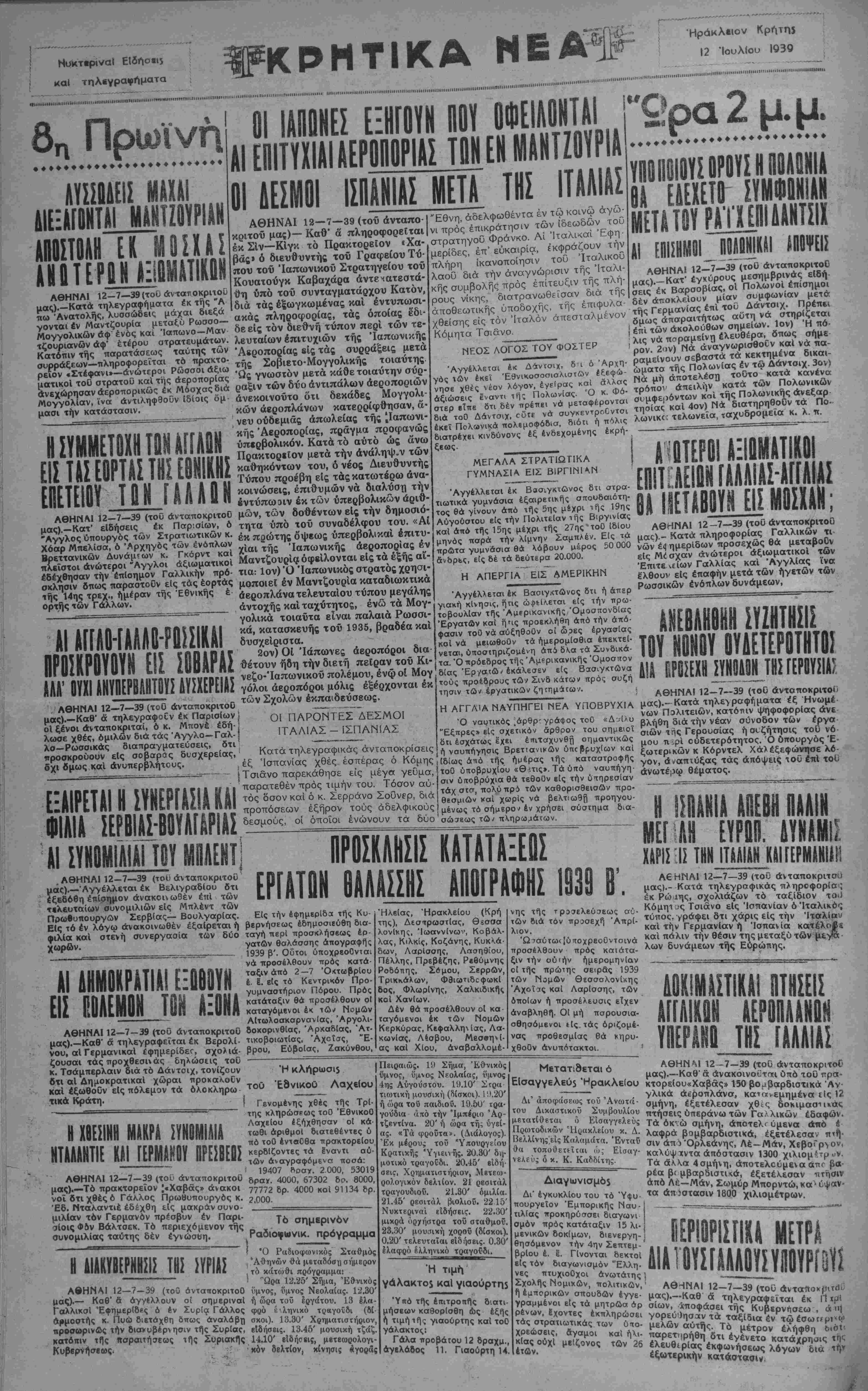 ΑΘΗΝΑΙ 12-7—39 (τοϋ άνταποκριτοϋ