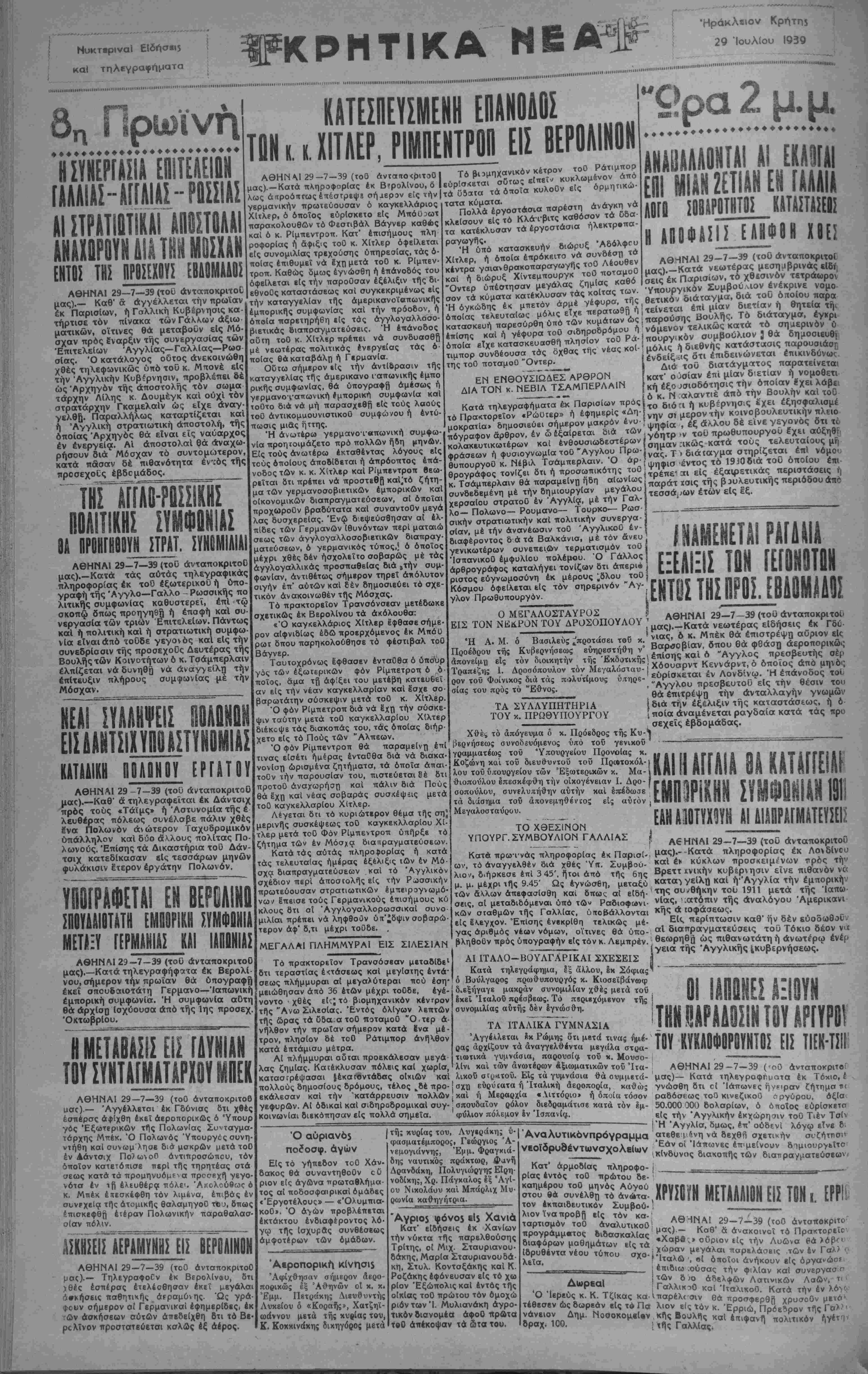 ΑΘΗΝΑΙ 29-7—39 (·οΟ άνταποκριτοί