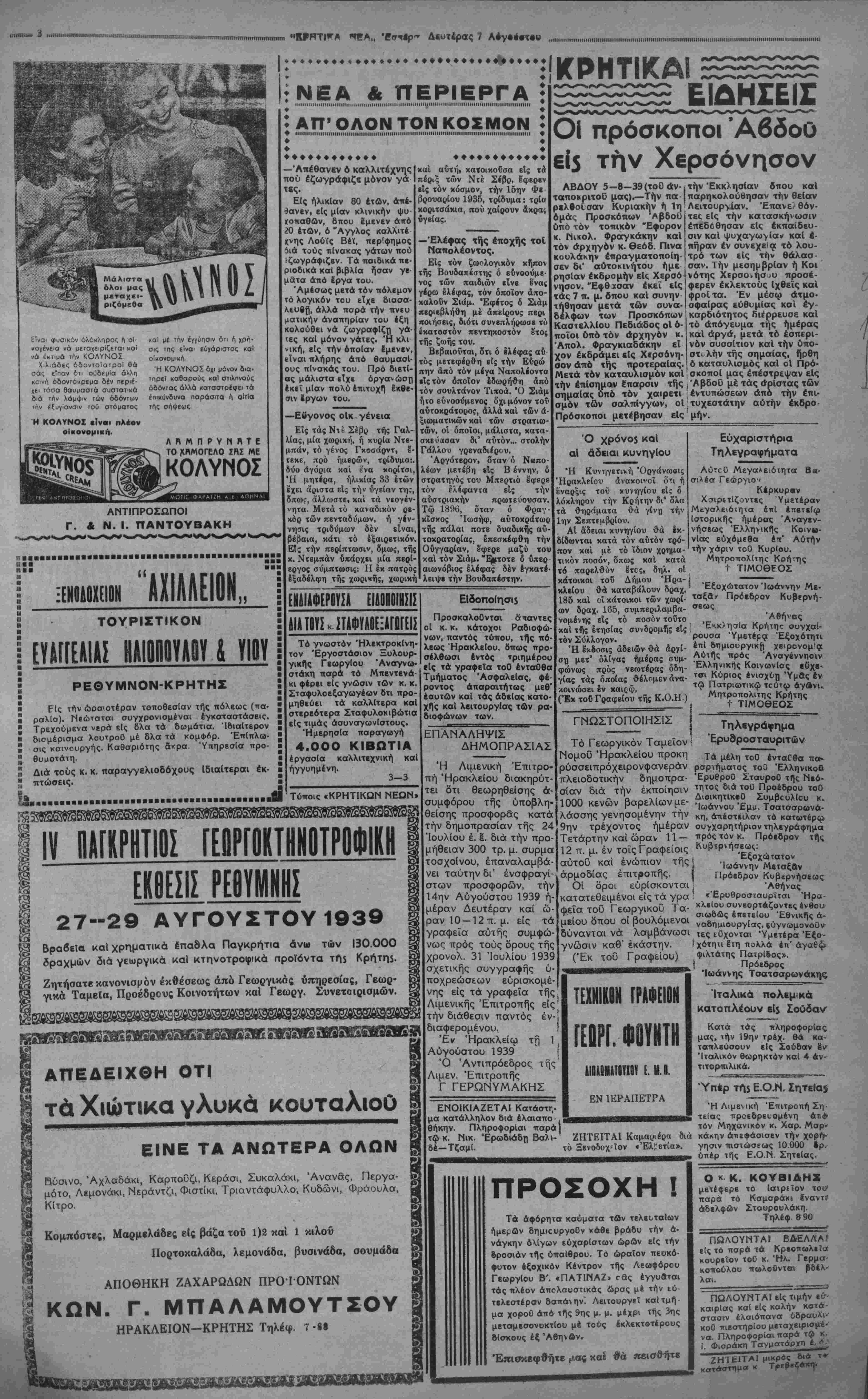 ΑΘΉΝΑΙ 7-8—39 (του άνταποκριτοί