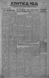 η<ουσε μέ καλήν διάθε οιν τήν σκέψιν περί καταλή¬ ψεως του φρουρίου τής Γρα μβούσης παρά τών έξ "Υδρας κρηταυδραίων, επειδή δέ ή"το εξαίρετος ναυτικός καί είχε πλειστάκις διακριθή είς τους ναυτικούς αγώνας τής έπα στάσεως ηθέλησε ώστε ή τι¬ μή καί ή δόξα τής καταλήψε¬ ως τής Γραμβούσης ν' άνήκρ μόνον είς τους Σφακιανούς. Είς τοΟτο τόν βοήθησε πολύ καί ή τύχη. Ό Ανδρέας Πα χυνάκης συνεννοηθείς μέ άλ¬ λους ό<τώ Σφακιανούς κα- ταφυγόντας εις Κύθηρα τόν Ίωάννην Ρούκουνα, τόν Βκ- ρικάκη, τόν Κριαράκη, τόν Ίάχοβο Κουμή, τόν Σείμένη ιόν 'Αντρούλακα, τόν Πβρ- τσουλινάκη καί τόν παλαιόν σφακιανόν άγωνιστήν Άνα γ*ώστην Παναγιωτακην έν αγνοία τών έξ "Υβοας έκ· ΐΚΕΨΕΙΕ ΚΑΙ ΚΡΙΣΕΙΣ ΑΙ ναυτοιραλαγγ(ΤΊσσαι Άπό τάς εμφανίσεις τών εορτών τής 4ης Αυ¬ γούστου είς τήν πόλιν μας, όφείλομεν δλως ιδι¬ αιτέρως νά έξάρωμεν τήν Όμάδα Ναυτοφαλαγγι- τισσών, τήν οποίαν τό κοινόν απεδέχθη μέ έν· θουσιασμόν. "Οχι μόνον διότι ώς θεαματικόν σύ¬ νολον υπήρξε κάΐΐ τό πρωτότυπον καί επιτυ¬ χές, αλλά διότι κυρίοβς μαρτυρεί κατά τόν προ- φανέστερον τρόπον τήν τάσιν τών νέων μας νά επιδοθούν μέ τό ύγρόν στοιχεΐον καί νά τό αγα¬ πήσουν μέ δλα τά γνω¬ στά εντεύθεν οφέλη. "Η¬ δη άπό ετών βεβαίως, χά¬ ρις είς τάς Όμάδας τών Ναυτοπροσκόπων τής πό¬ λεως μας καί τάς άθλη- τικάς οργανώσεις, Μχει έπιτευχθί] ώστε τά αγό¬ ρια τής πόλεως μας νά επιδοθούν αρκετά μέ τήν θάλασσαν καί μέ θαυμα- βον τοΟ επίσης σφακιανοΟ Έμμ. Βρατσόλη καί μέ τους ό<τώ ρηθέντας συντρόφους του, άνεχώρησεν έξ άντικη- θύρων τήν θυελώδη νύκτα ΐής 31ης Ιουλίου 1825 προς τήν άπόρθητον ΓραμβοΟσαν. ΚωπηλατοΟντες καί αγωνι¬ ζόμενοι εναντίον τών μαινό¬ μενων κυμάτων όλόκληρον τήν νύκτα καί όνόκληρον τήν έπομέ^ην ήμερα/, κατόρθω¬ σαν τέλος νά προσορμισθώ- σιν βίς τήν ΓραμβοΟσαν σώοι τάς απογευματινός ώ¬ ρας τής 1ης Αυγούστου. ΑΥΡΙΟΝ ή συνέχεια μέ χαράν διαπιστώ νομεν δτι χάρις είς τήν Ε. Ο. Ν. τήν θάλασσαν θά γνωρίσουν καί θ' α¬ γαπήσουν καί αί νεανί¬ δες τής πόλεως μας. Διώ τούτο εις τήν όργάνω- σιν τών ναυτοφαλαγγι- τισσών πρέπει να δοθή ί- ιαιτέρα σημασία. ♦ ♦♦ Εκλίκταΐ συνεργασία! τιίν «Κρητικών Νέων» Η οικοτεχνία ε<5 τήν Ελλάδα Τ05 κ. ΕΥΓΕΝΙΛΣ Ζ3ΓΡΑΦΟΥ 3ον (τελευταΐον) Ιρων συστημάτων πού αότή - - τή στιγμή δέν χρειάζεται νά τά αναφέρω λεπτομερώς. Γιά μας χρειάζεται μιά μέ ση λύσι μέ τή βοήθεια πάν τότε τοΟ Κράτους. Μας χρβιά ζεται ίργασία συστηματική, μελετημένη. Χρειάζεται τίς διασκορπισμένες Ελληνικές δυνάμεις νά τίς θέσωμεν ύπβ μίαν καθοδήγησιν καί ίμπνβυ σι γιά ν' αρχίσουμε νά μπαί νουμε σ' έΊ/α δρόμο μελλον¬ τικής αναγεννήσεως. Μέ τόν υποσιτισμό, ό όποιος έπικρα τεΐ σέ πολλά χωριά τής Ελ¬ λάδος καί μέ τους ανθυγιει¬ νούς δρους τής ζωής έκατον τάδες χιλιάδων αγροτικών μας οίκογενειών κινδυνεύο μεν νά δημιουργήσουμε πρό- Αυτό τό χαμομήλι δέν ξέ¬ ρουνε οΰτβ πώς νά τό ξερά¬ νουν καί τΐ εμπορική αξία Γιά τήν άμάθβια τής θεσσαλής άγρότιδος μοΟ δι- ηγεΐτο Θεσσαλός κύριος δτι οί Καραγκούνισσβς δταν οφάζουνβ στό σπίτι τους κα¬ νένα αρνί ου:ε τό περισ- σεΟον κρέας ξβρουνβ νά προ- φυλάξουνβ γιά νά μή χαλάση, οϋτε τό δέρμα νά συντηρή- σουνε, γιά νά μή σκουλήκι ώ¬ ση. Τώρα γιά νά ελαττώ¬ σουμε πρώτα τό κακό ,αύτό καί λίγο λίγο νά τό εξαλεί¬ ψουμε είναι πολλαί μέθο¬ δοι. "Ολοι οί πολιτισμένοι λαοί έχουνε διαφόρων κατη¬ γοριών Σχολές καί διαφό- νιος εορτασμός τής 4 ης | τόν Θεό ν! "Υστερα άπό Αύγουστοι» γ'ινβι;αι έκ'μακράς καί σκληράς πβ- τοϋ περισσεύματος 