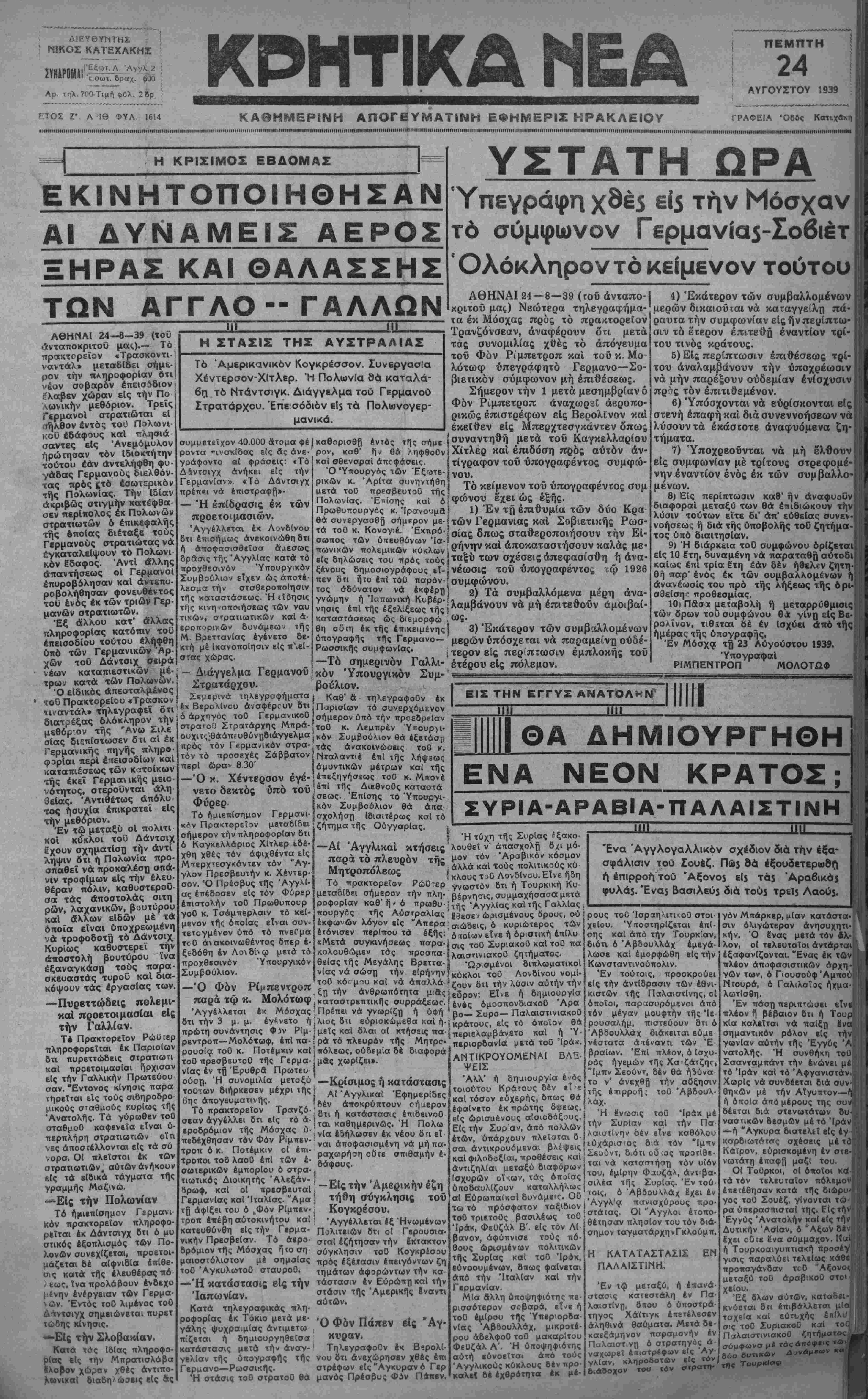 Α6ΗΝΑΙ 24—8—39 (τοΟ άνταποκριτοί'