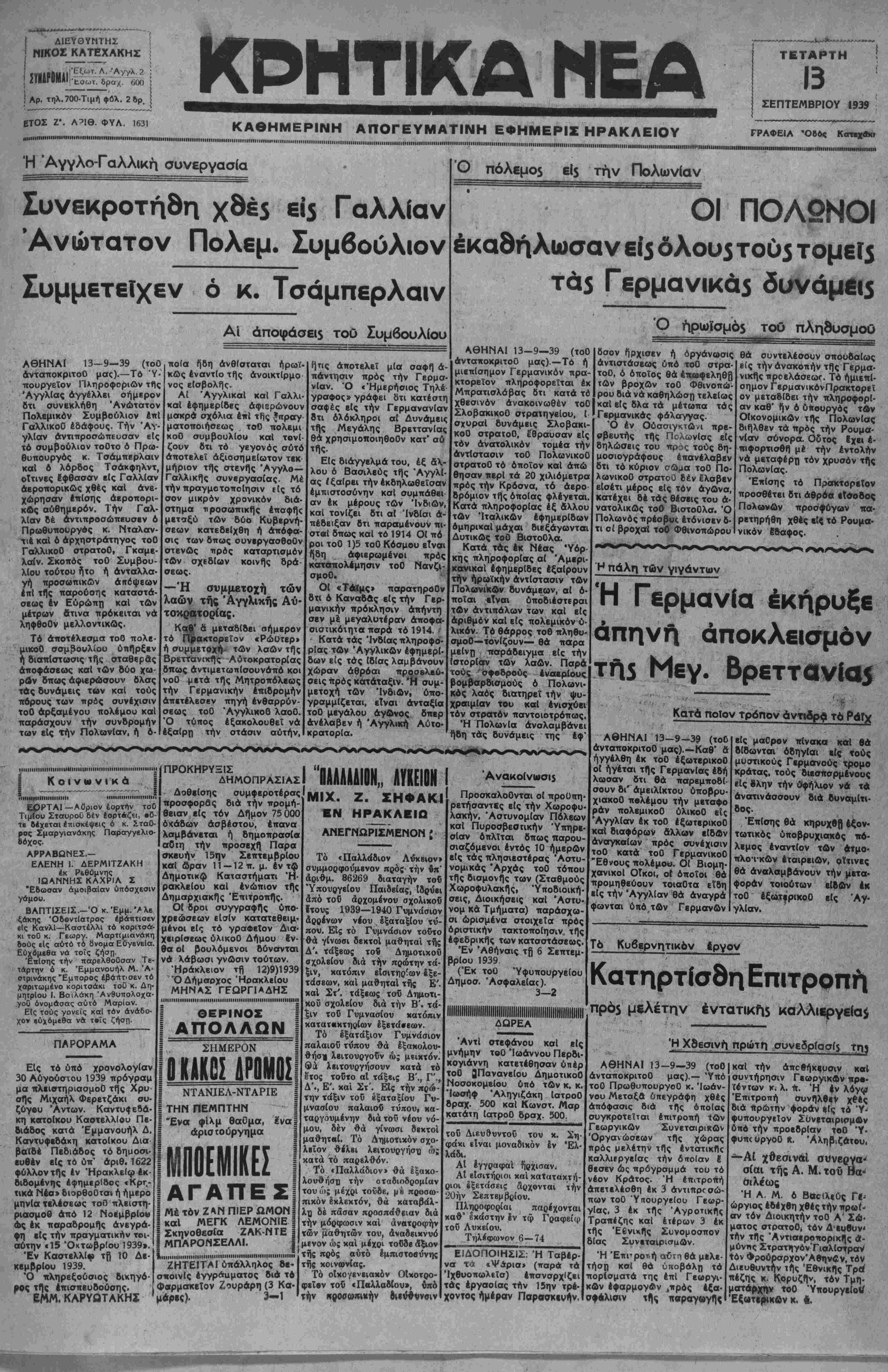 Α6ΗΝΑΙ 13—9-39 (του ανταποκριτού