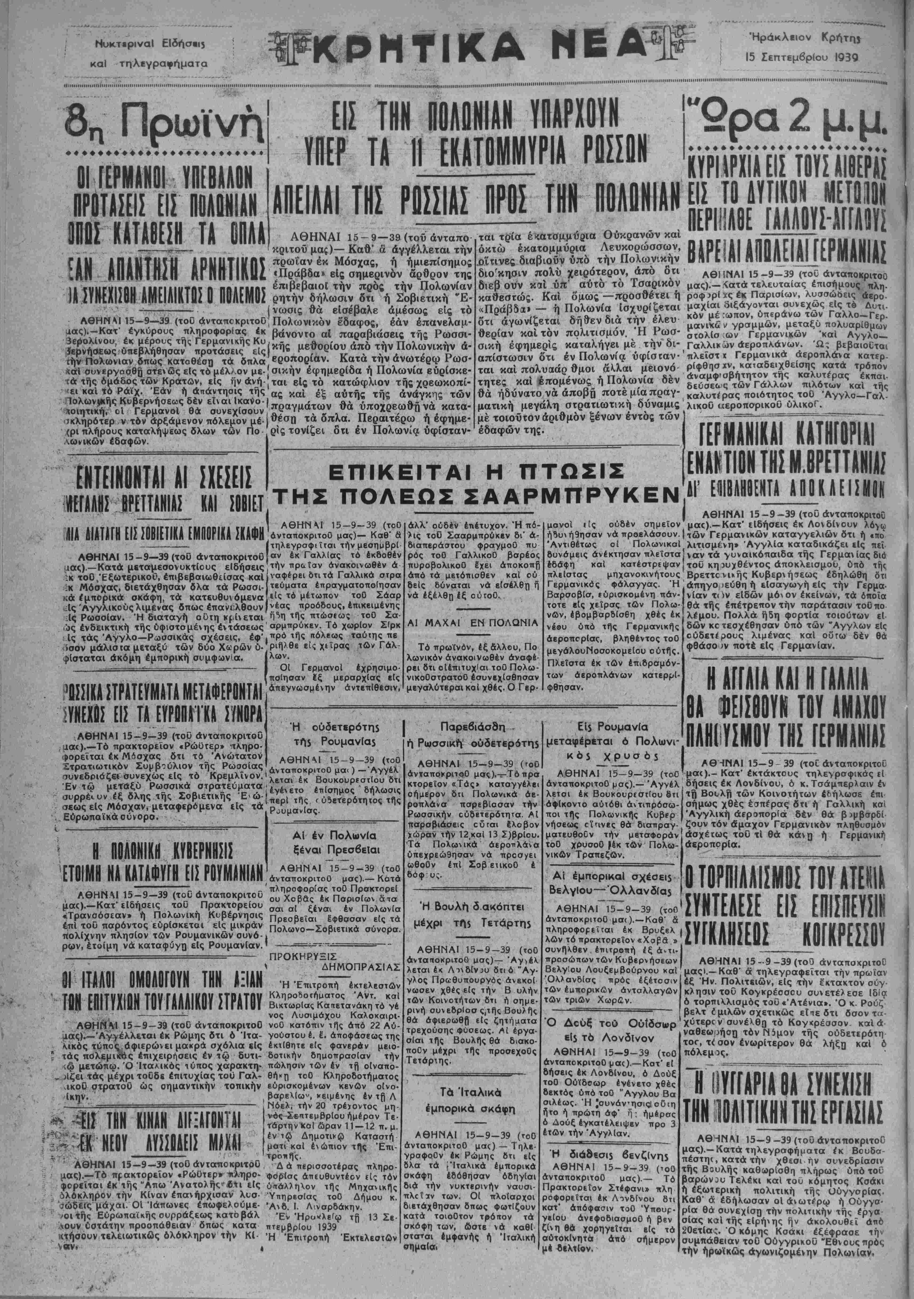 ΑΘΗΝΑΙ 15-9-39 (τοΰ άνταποκριτοΟ