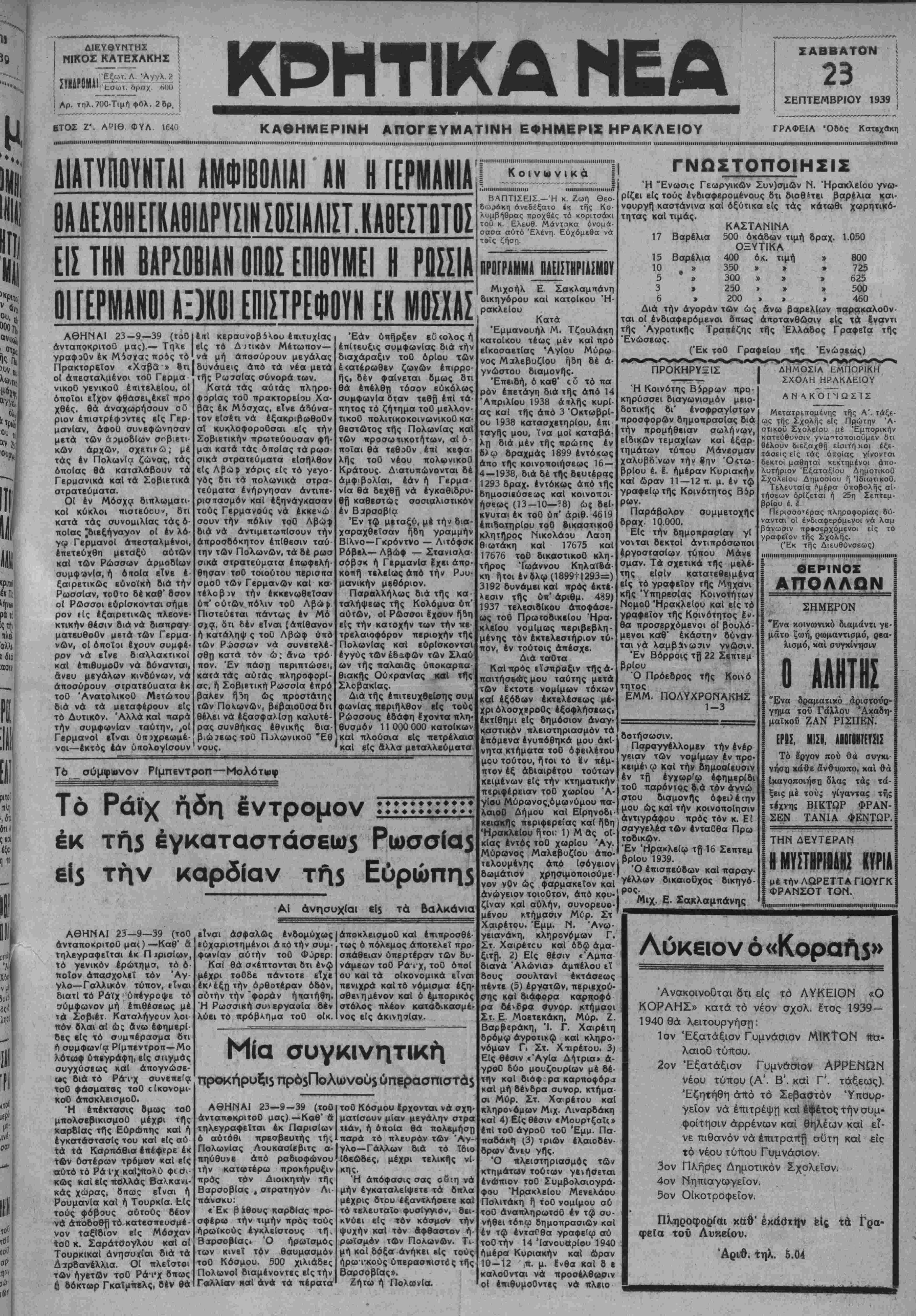 ΑΘΗΝΑΙ 23-9-39 (τοΟ ανταποκριτού