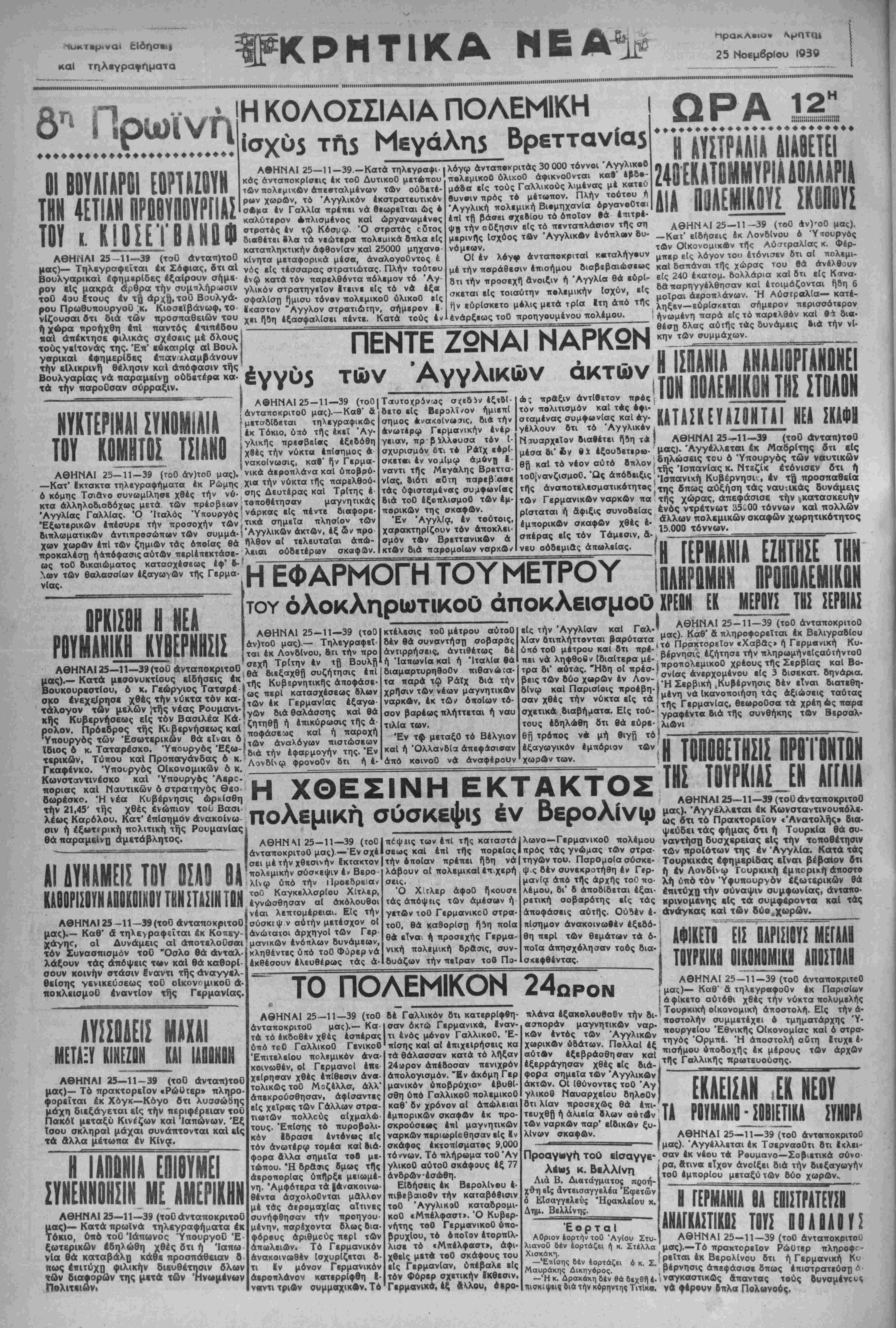 ΑΘΗΝΑΙ 25-11—39 (τοΟ άνταποκριτοΟ