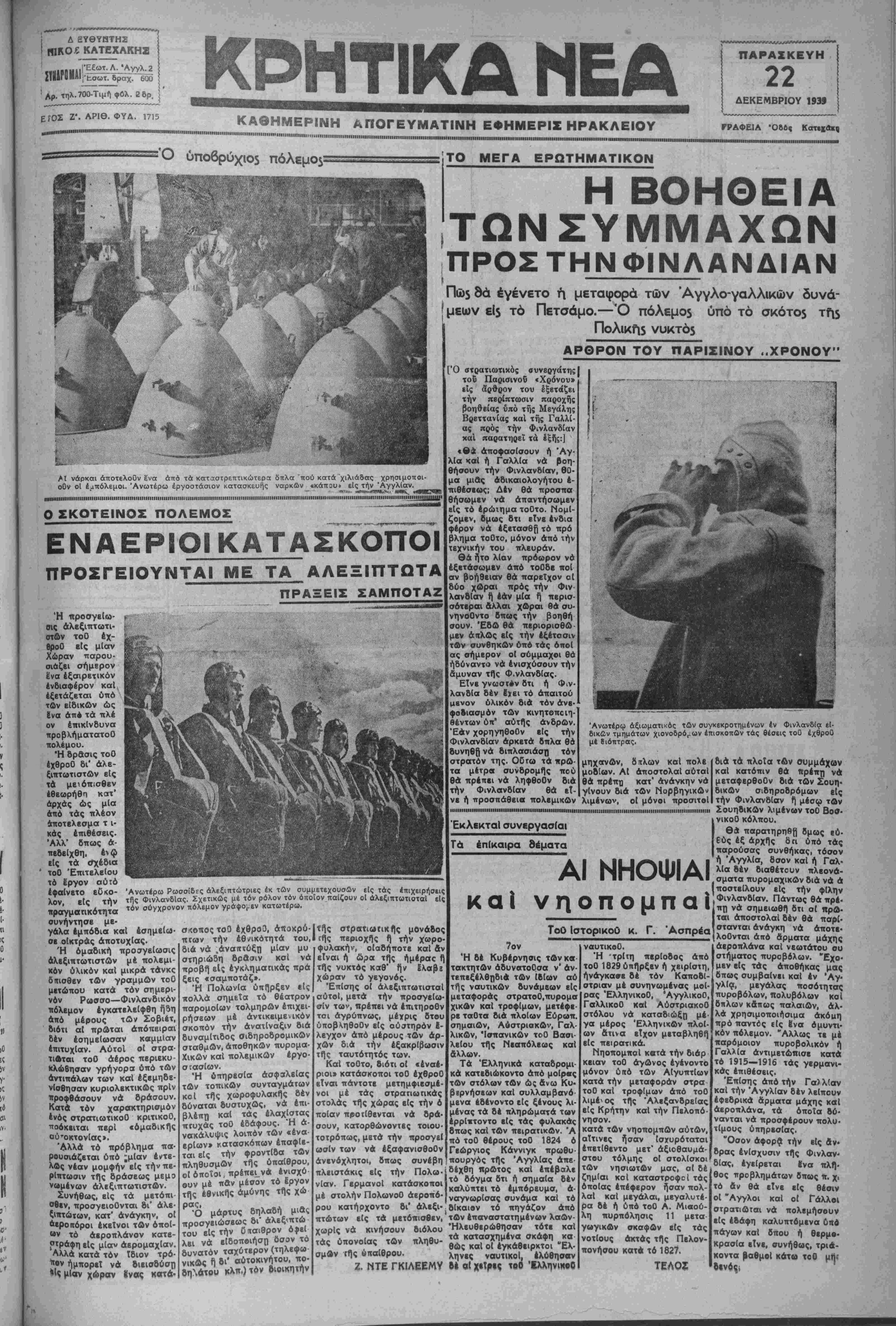 ΑΘΗΝ Μ 22-12—39 (τού άνταποκριτο-