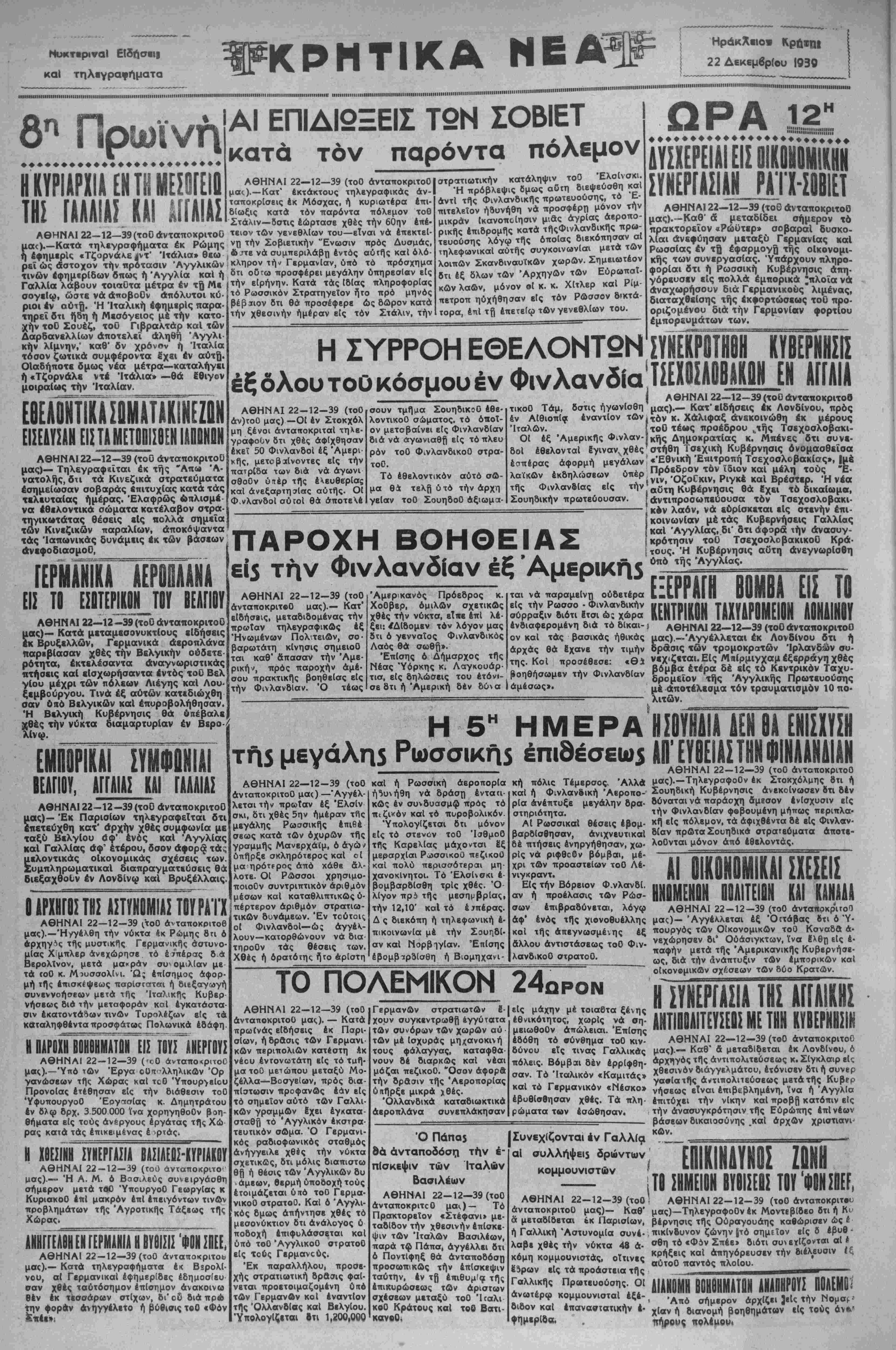 ΑΘΗΝΑΙ 22-12—39 (τοΟ άνταποκριτοΟ