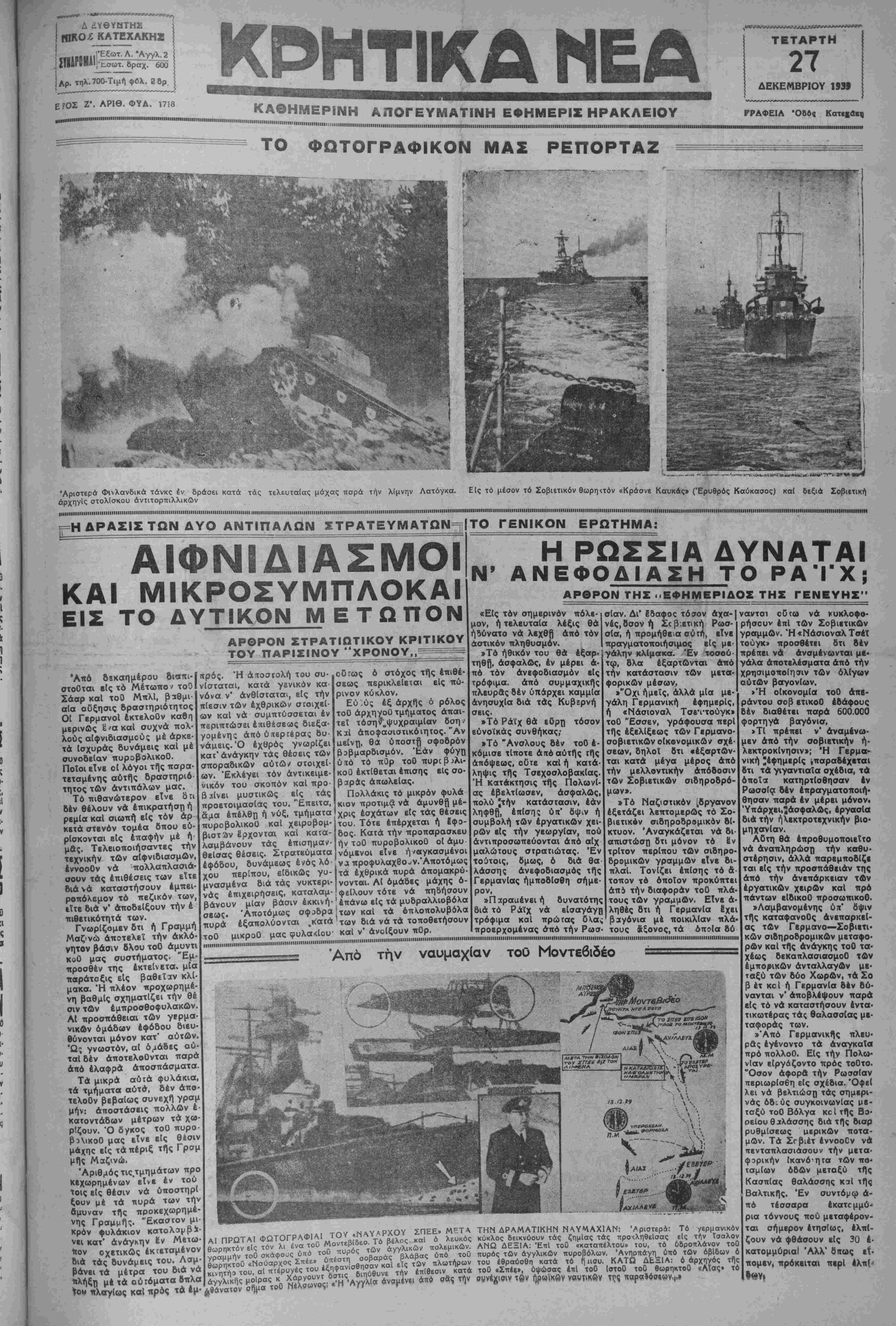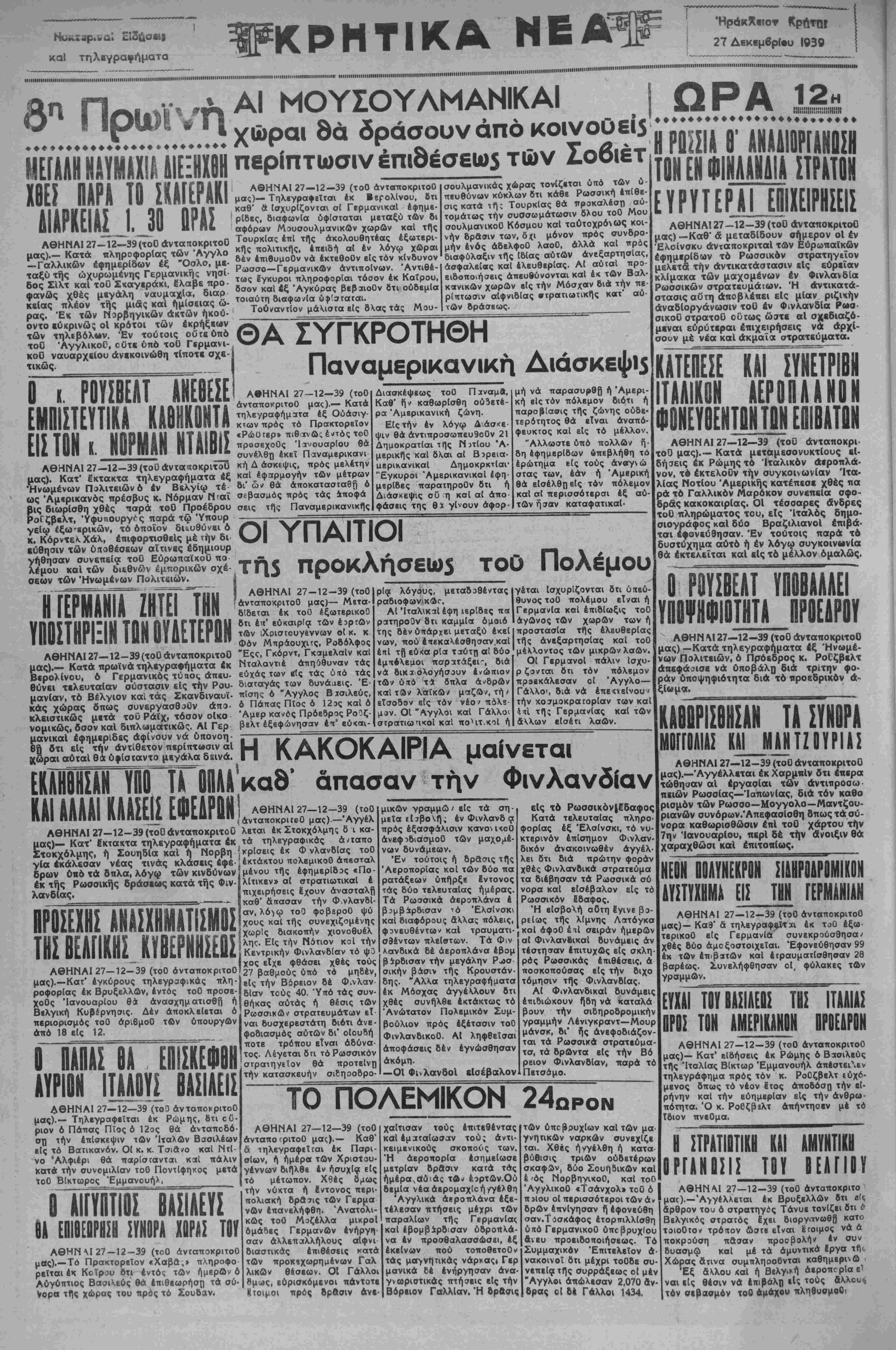 ΑΘΗΝΑΙ 27-12-39 (τοΟ ΑνταποκριτοΟ