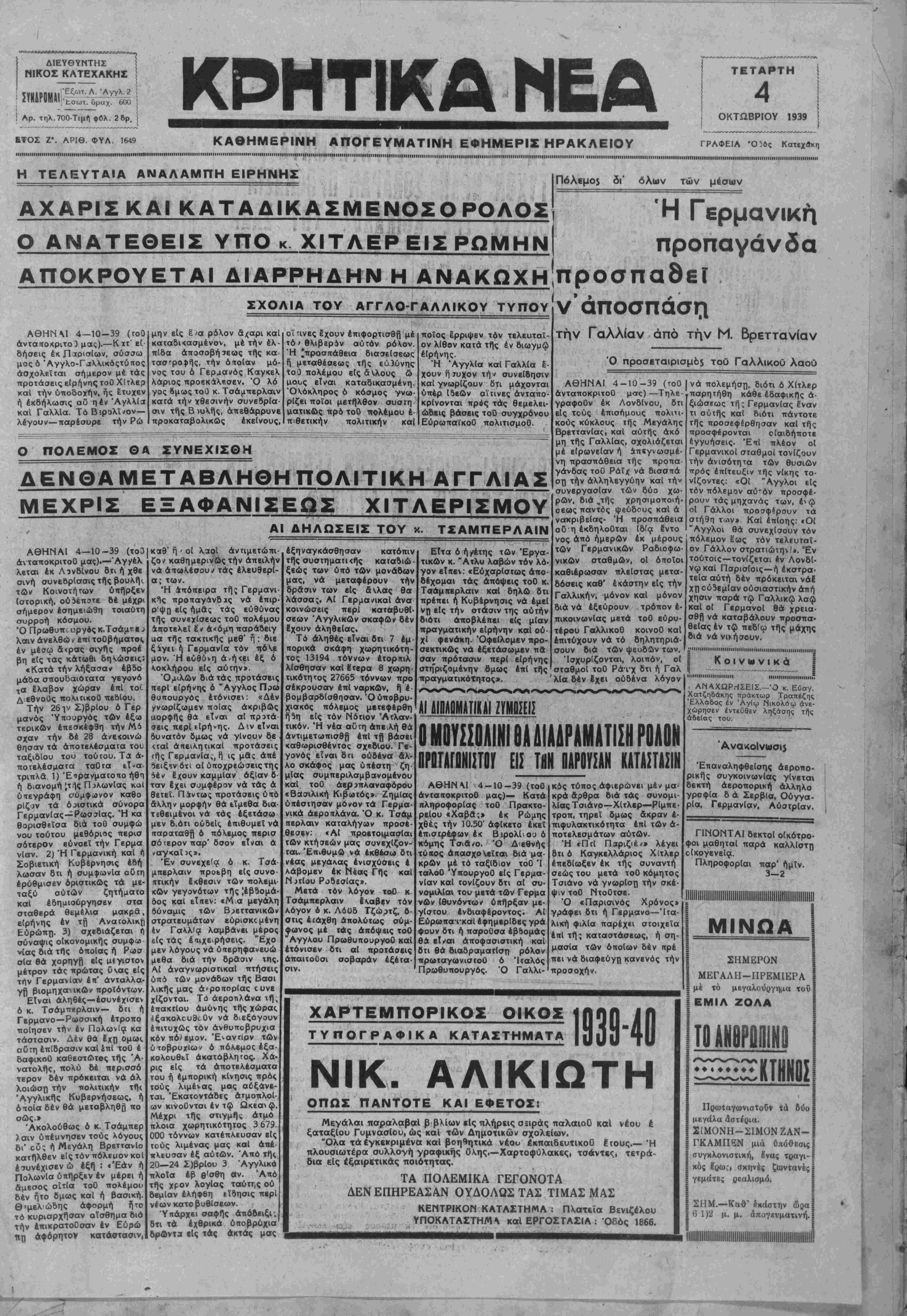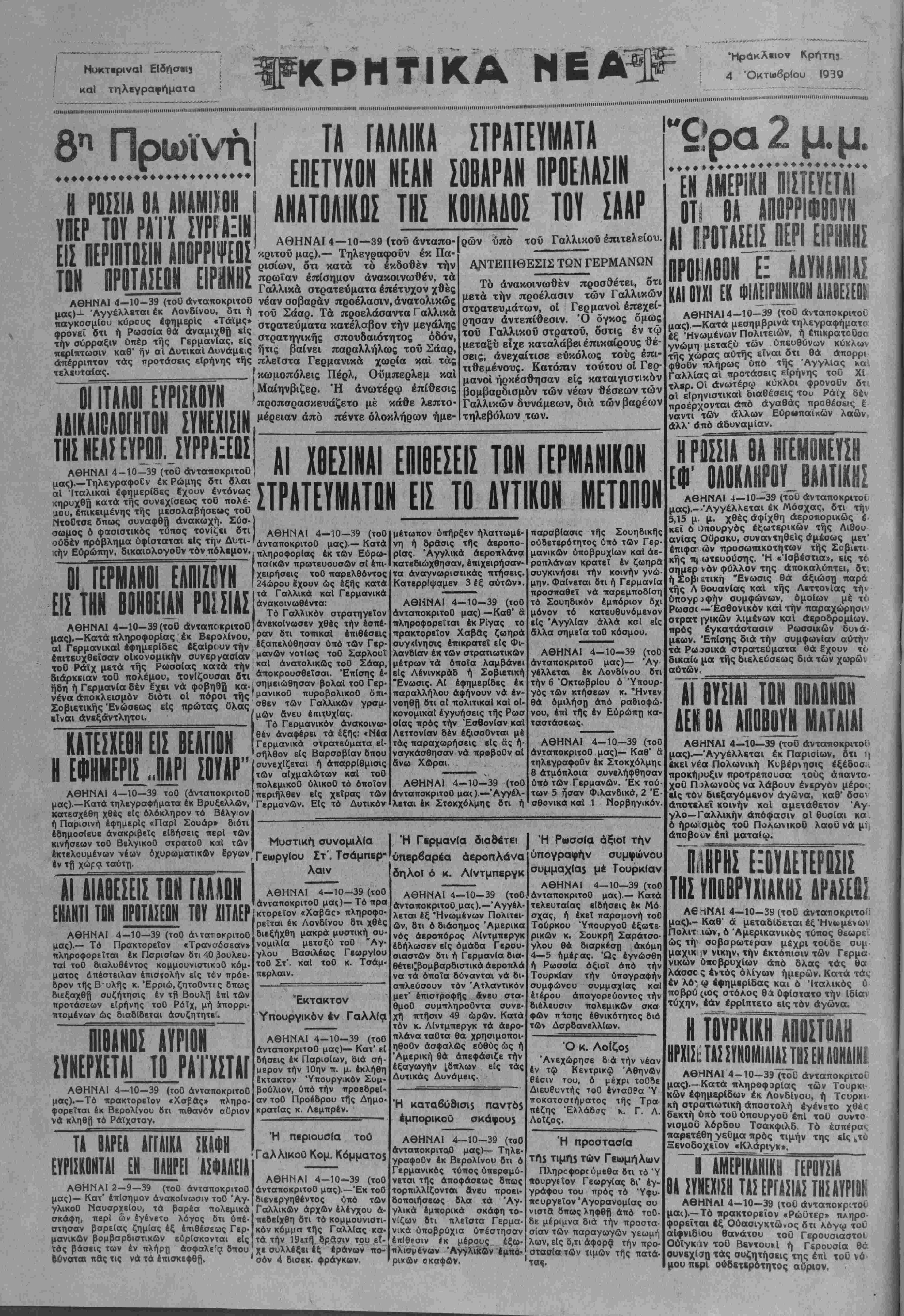 ΑΘΗΝΑΙ 4-10-39 (τοΟ άνταποκριτοΟ