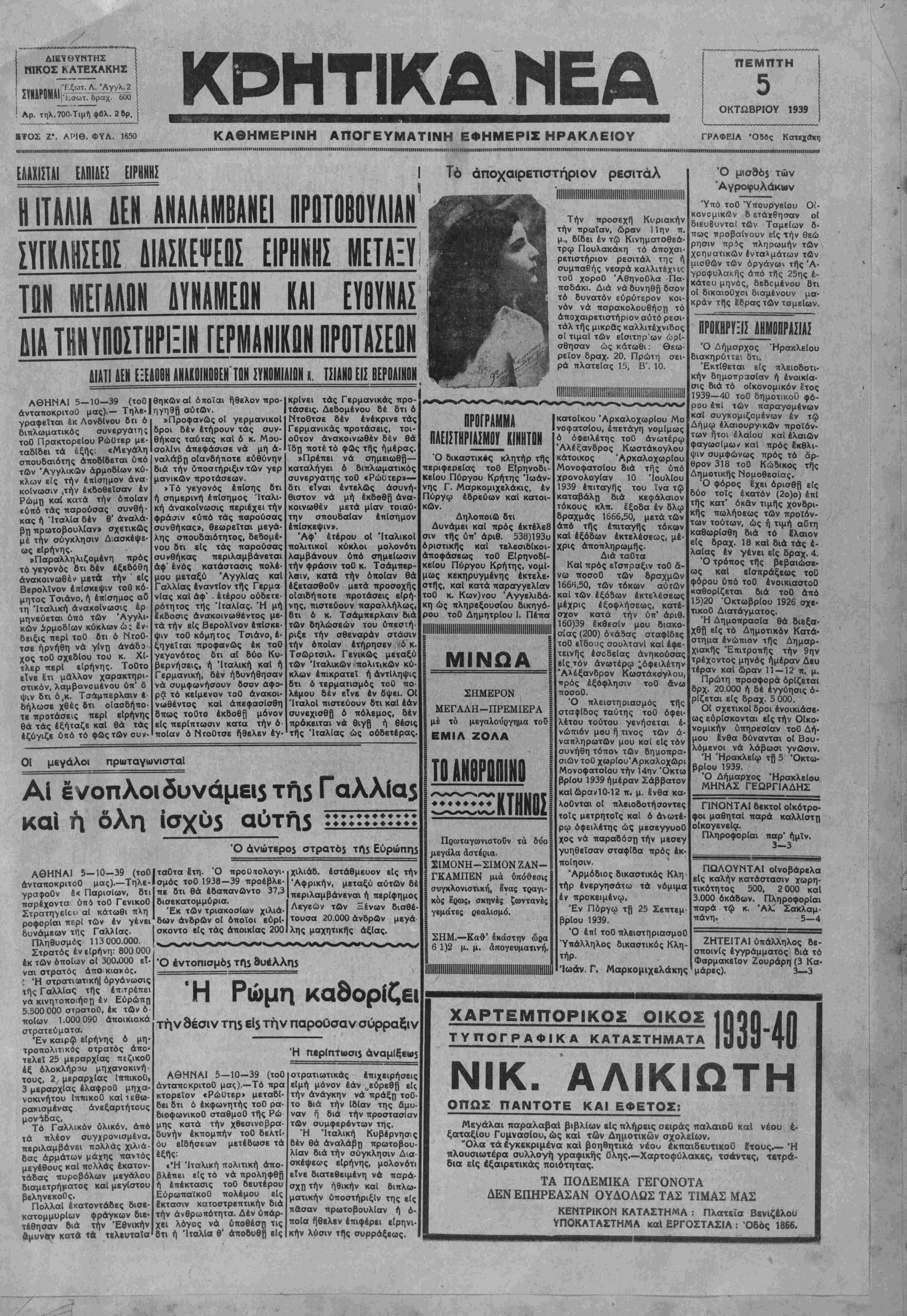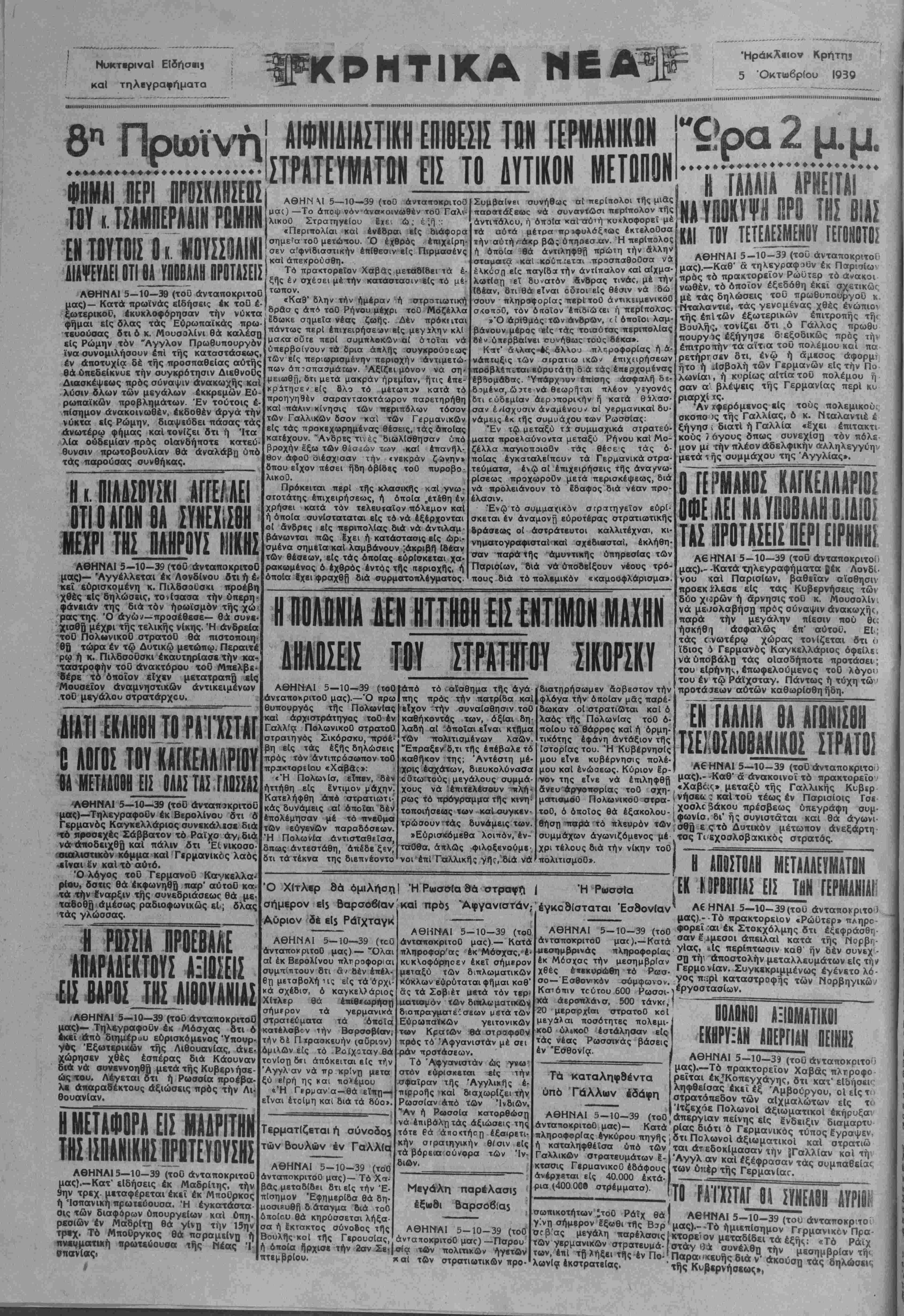 Α6ΗΝΑΙ 5—10-39(τοϋ ανταποκριτού