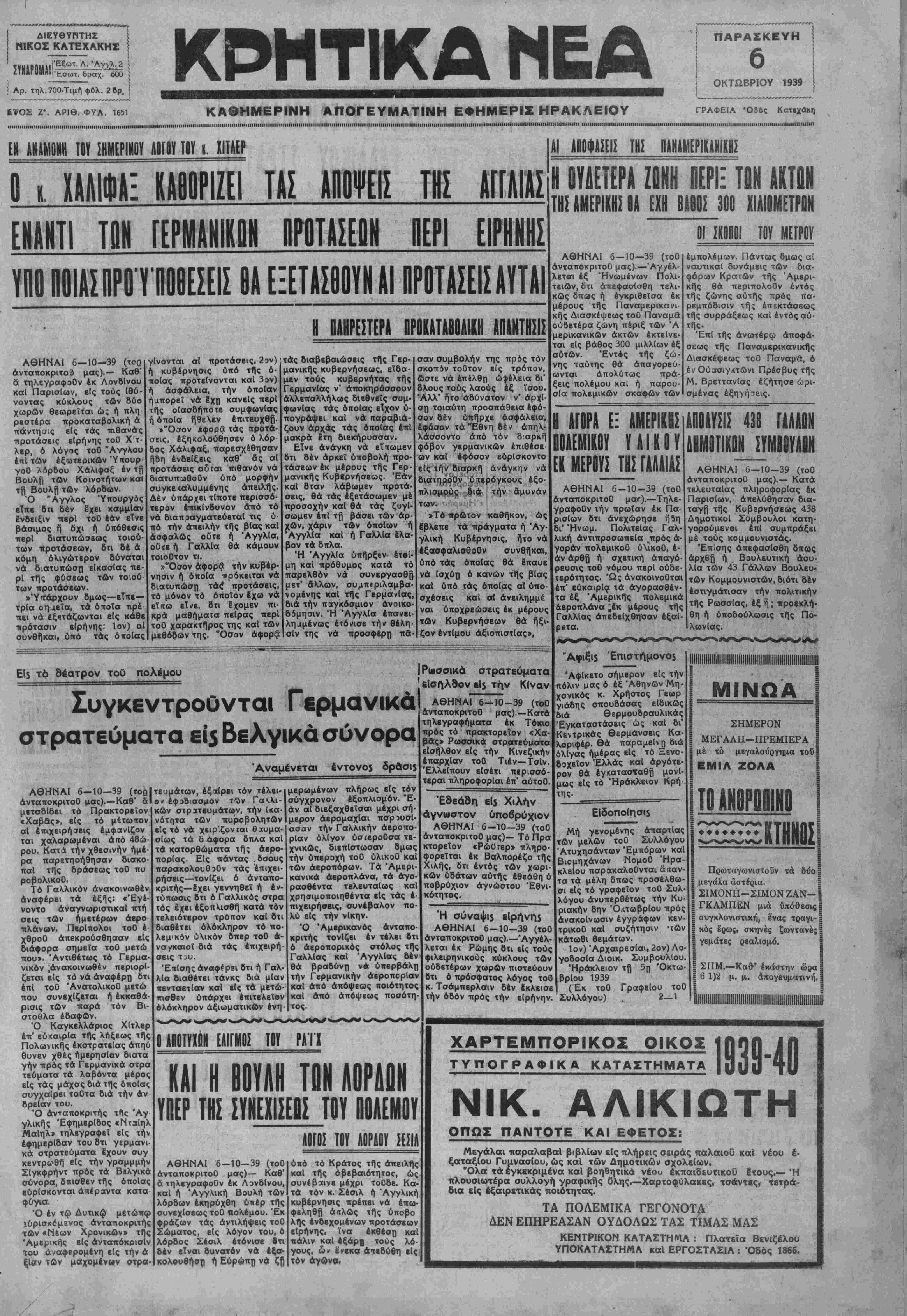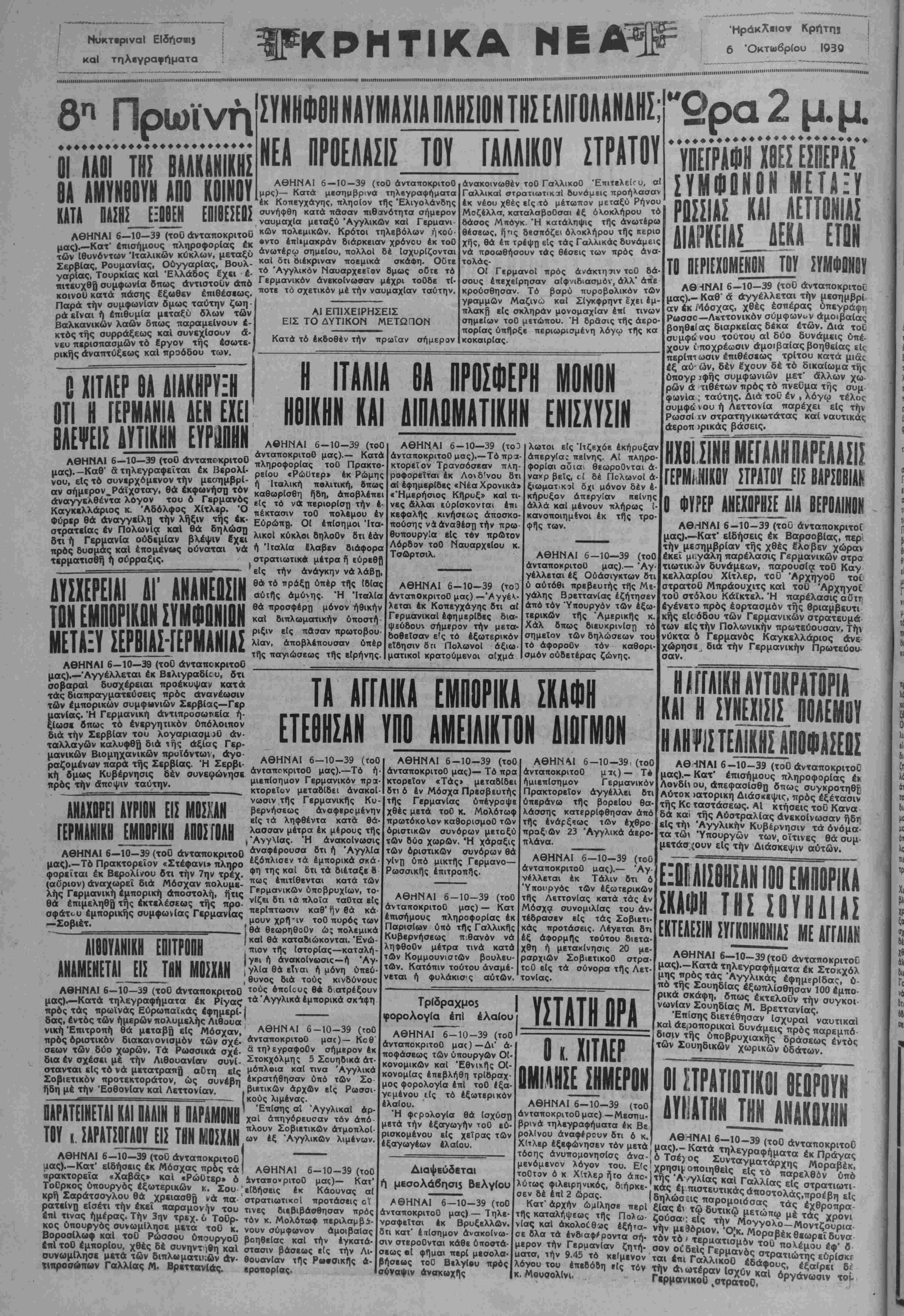 ΑΘΗΝΑΙ 6-10-39 (τοΟ άνταποκριτοΟ