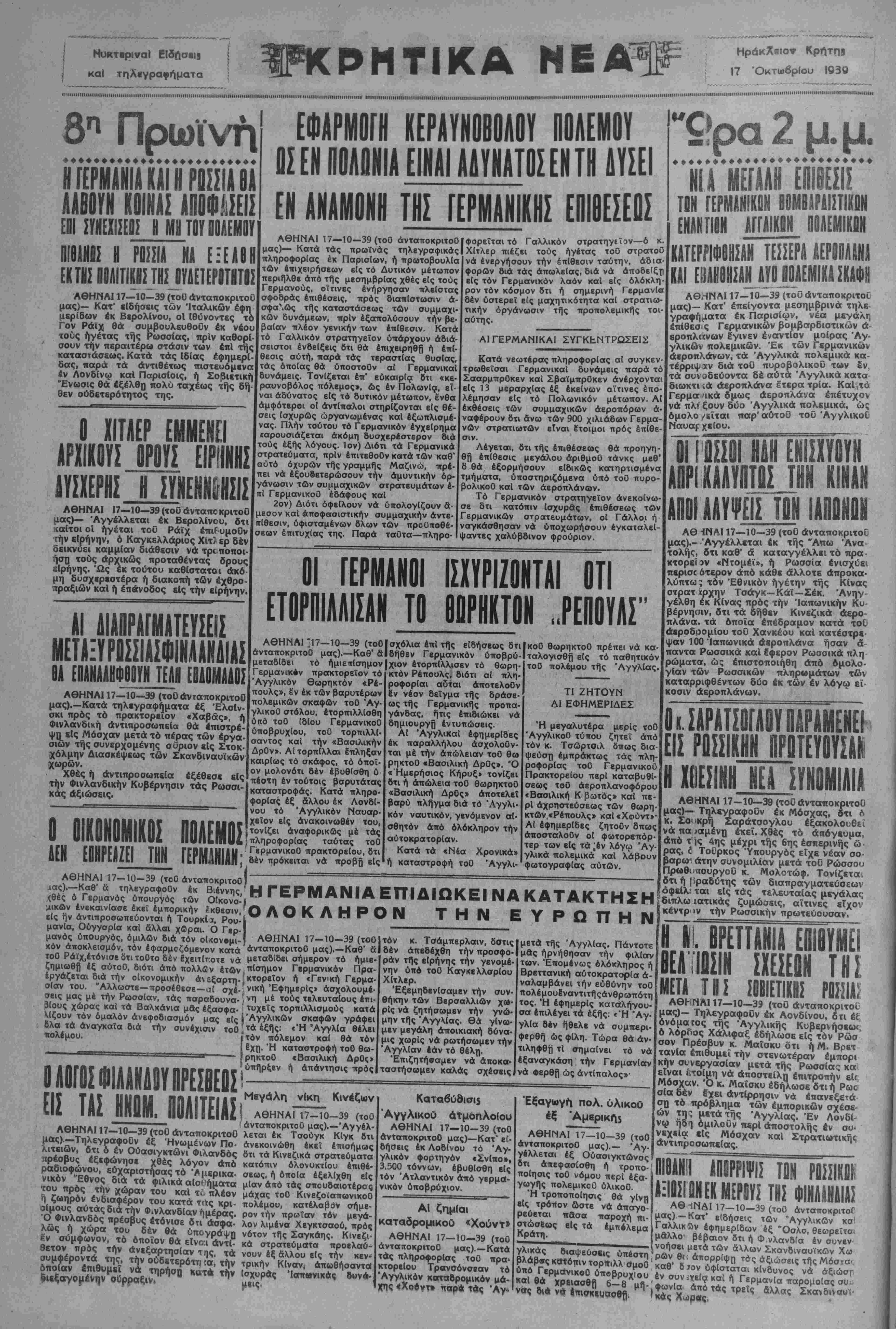ΑΘΗΝΑΙ 17—10-39 (τοΟ άνταποκριτοΟ