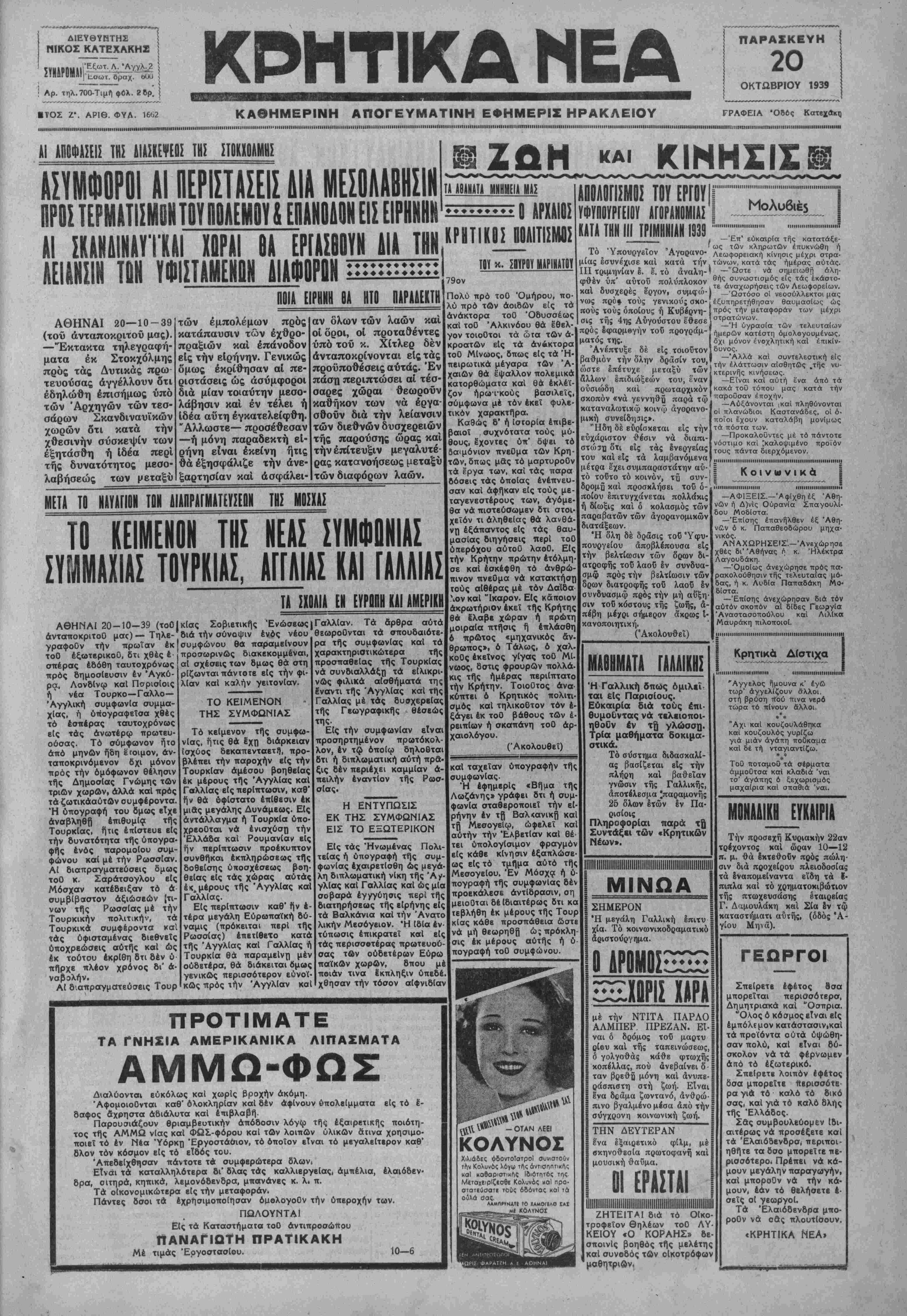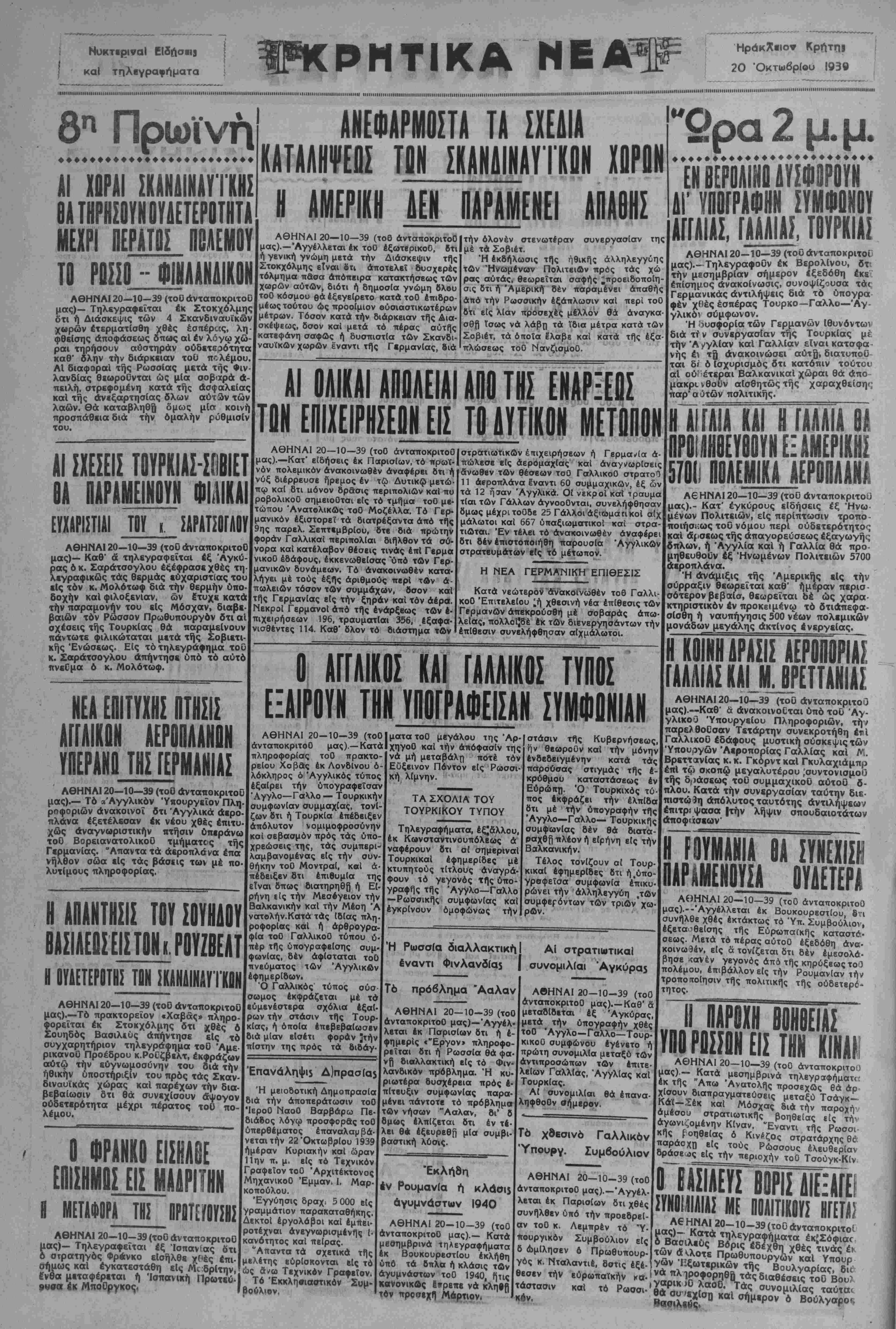 Α€ ΗΝΑΙΙ 20-10-39 (τοθ άνταποκριτοί