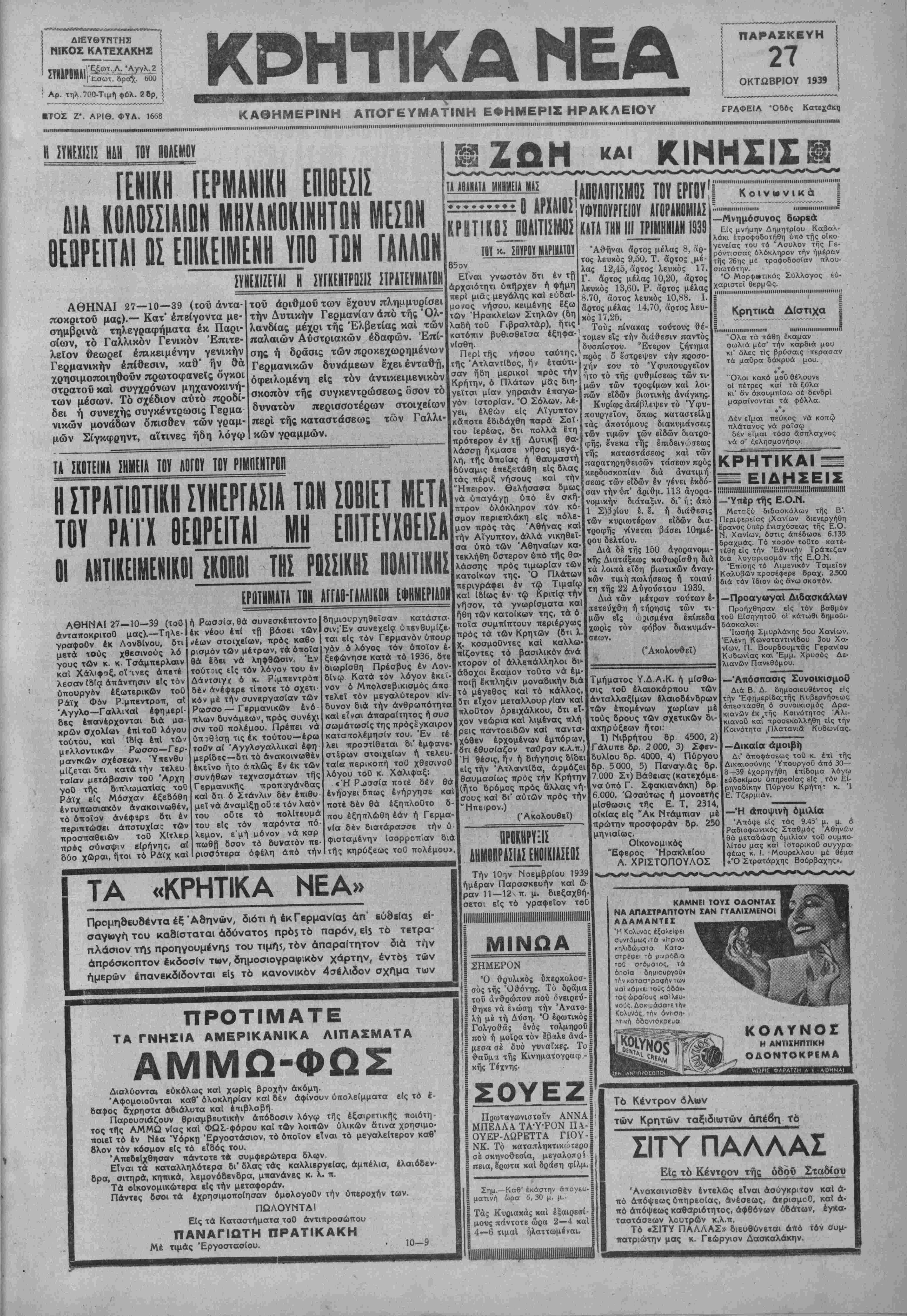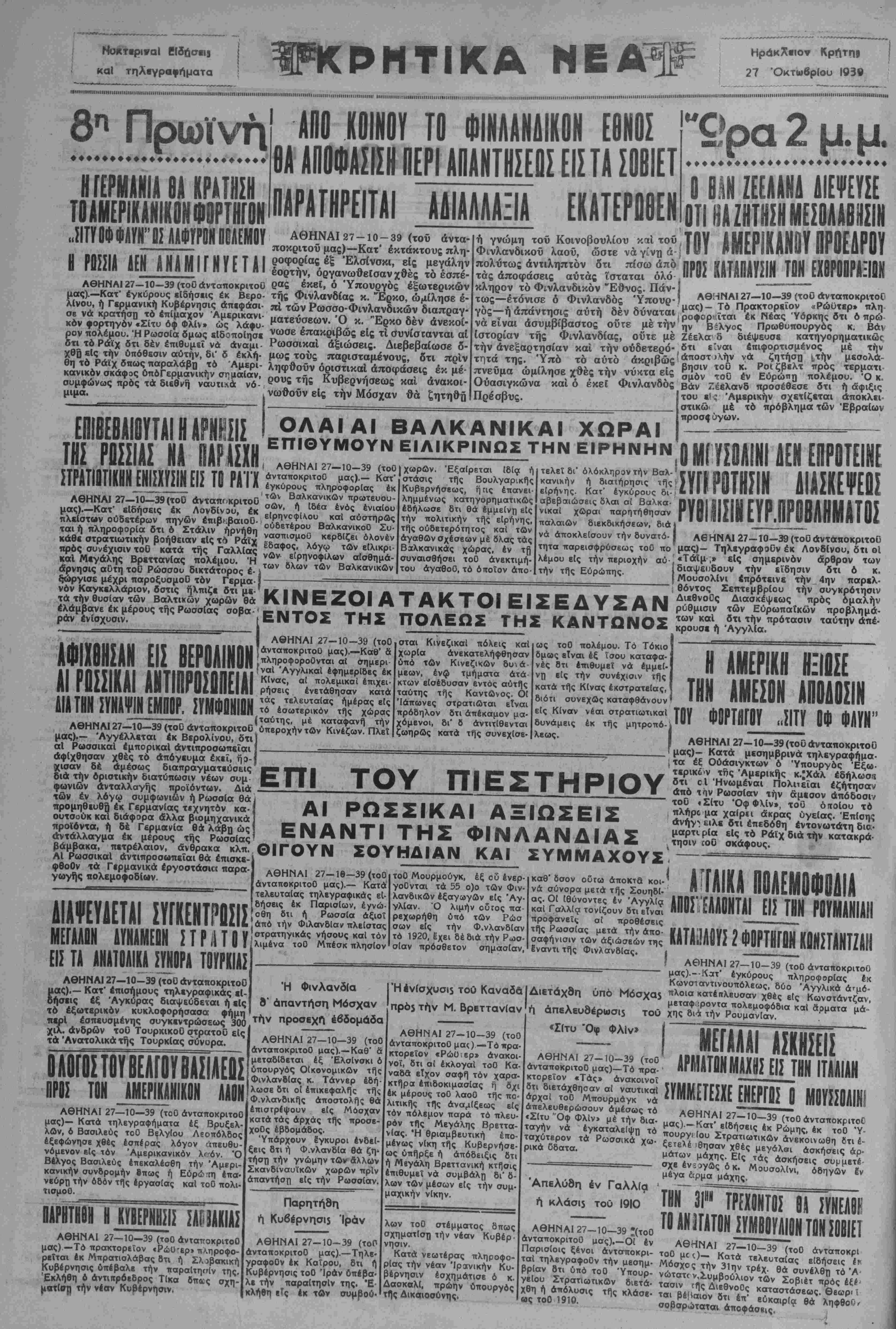 ΑΘΗΝΑΙ 27-10-39 (τοΟ άνταποκριτοΟ