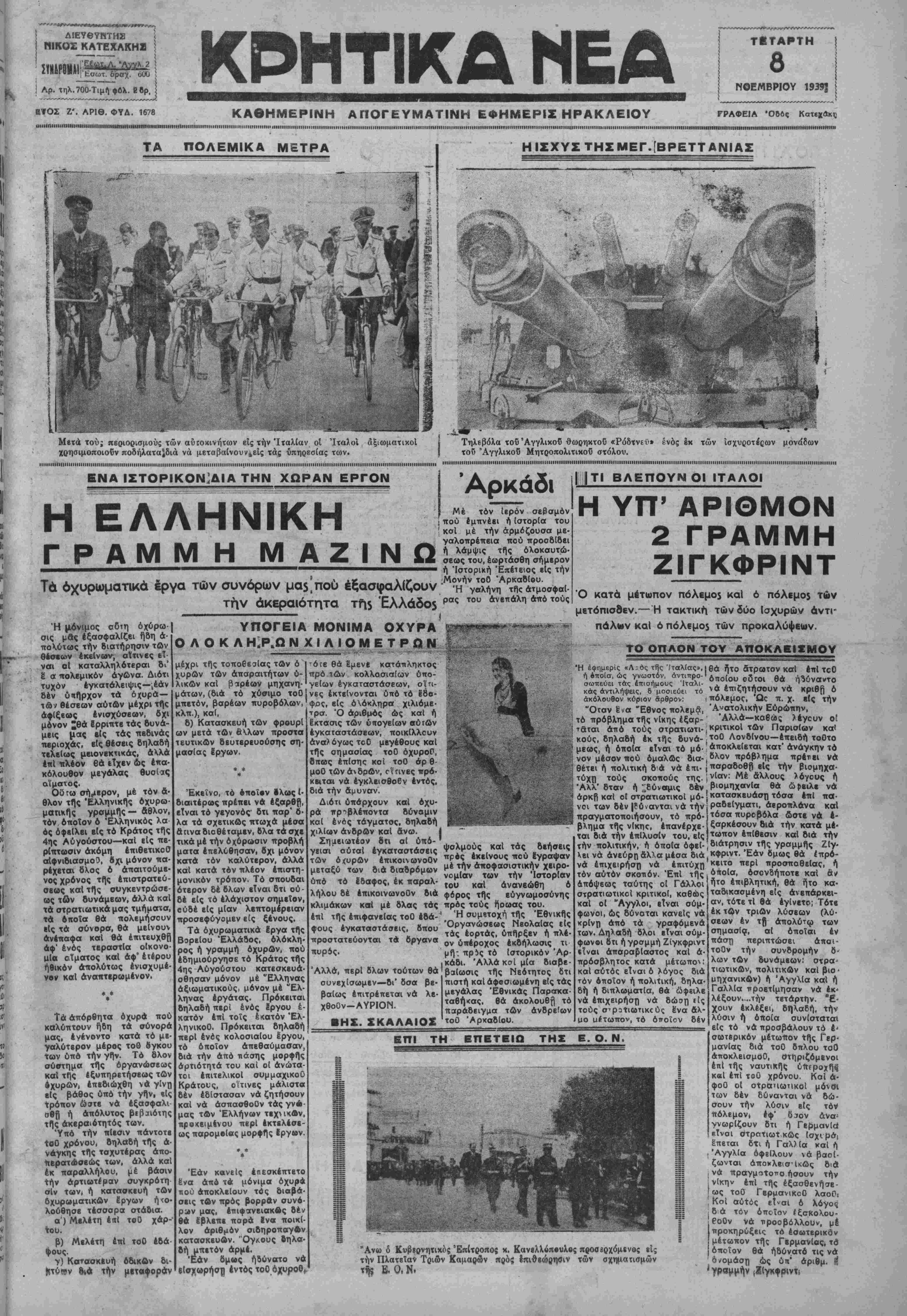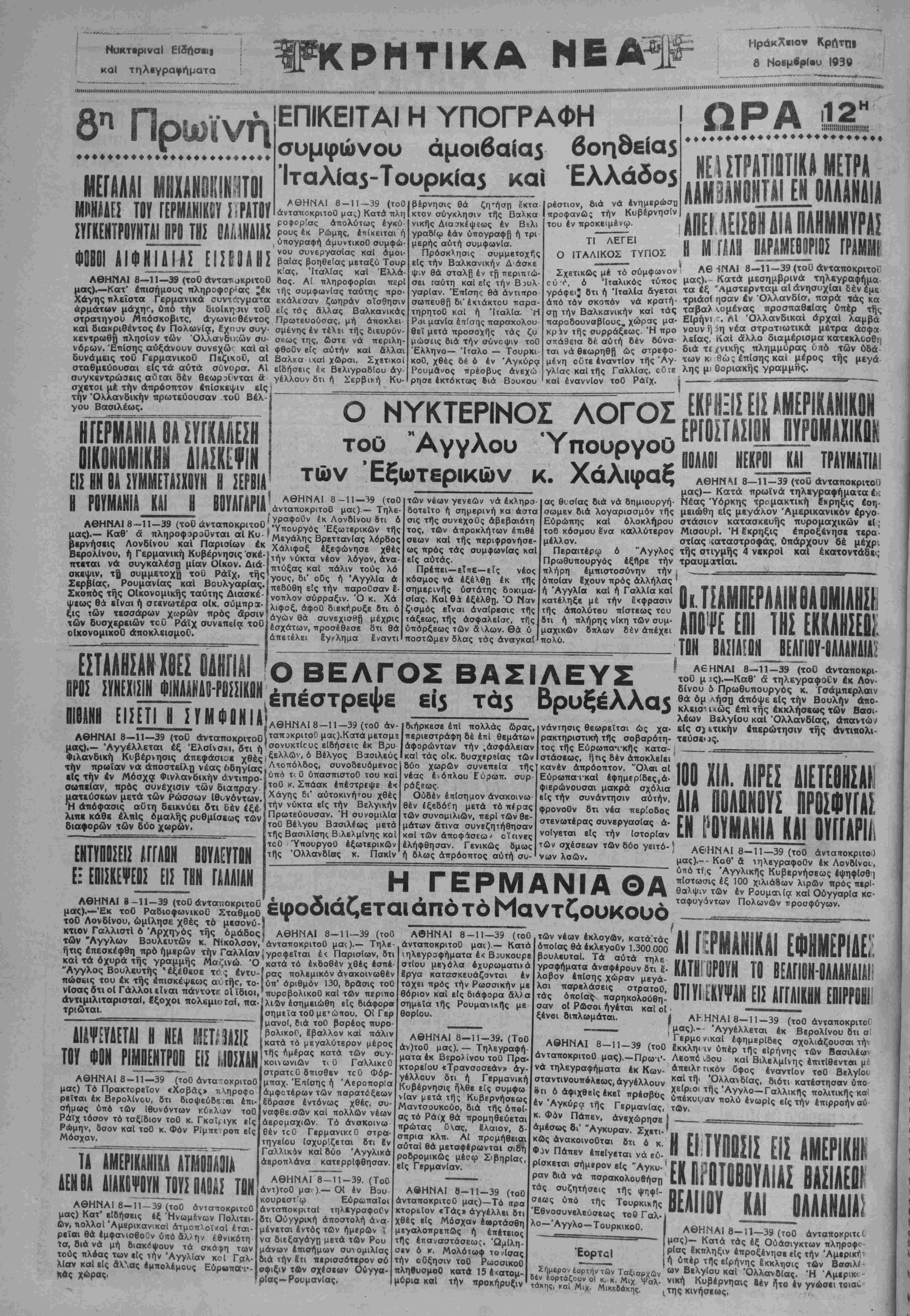 ΑΘΗΝΑΙ 8-11-39 (τοΟ ανταποκριτοΟ