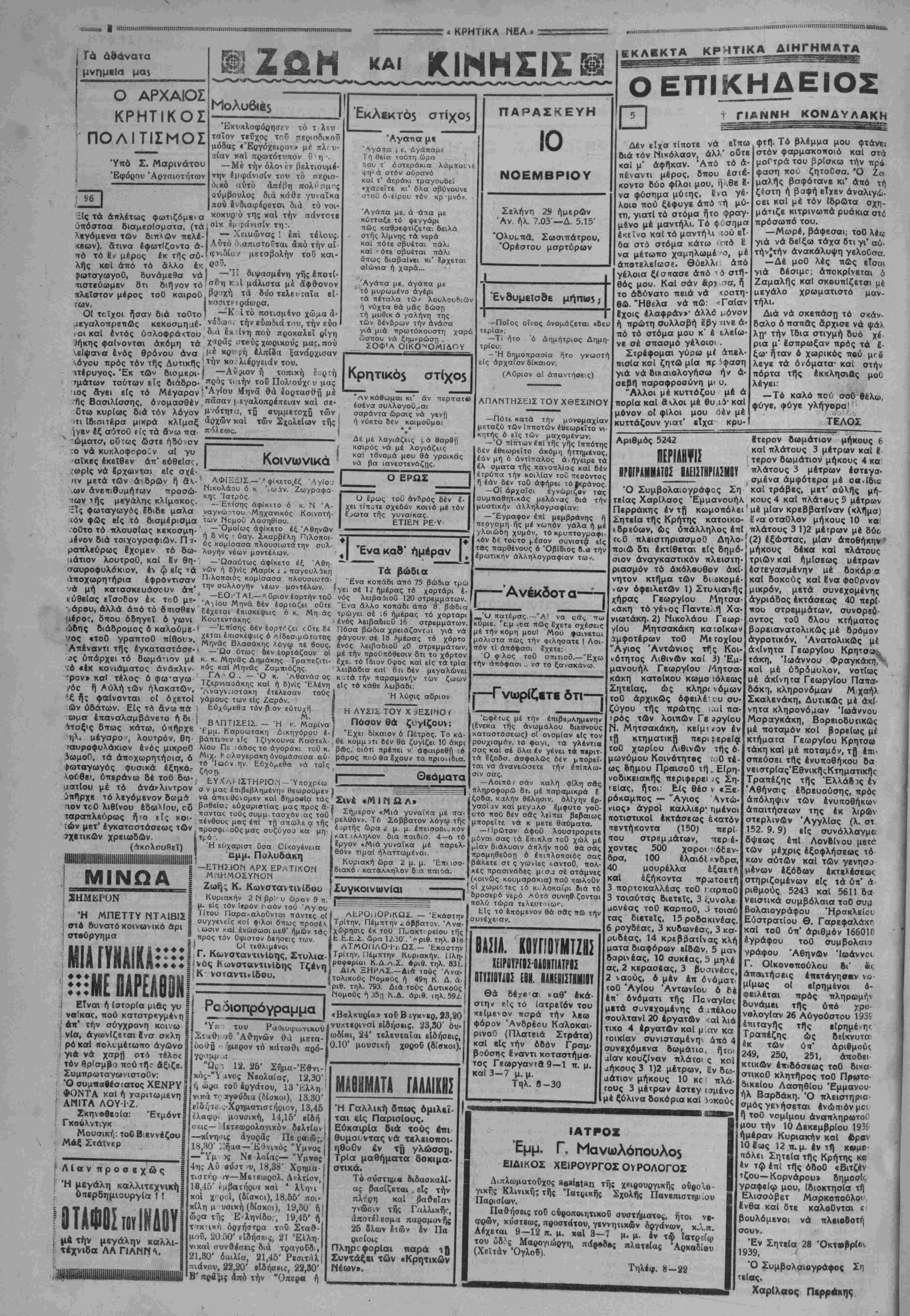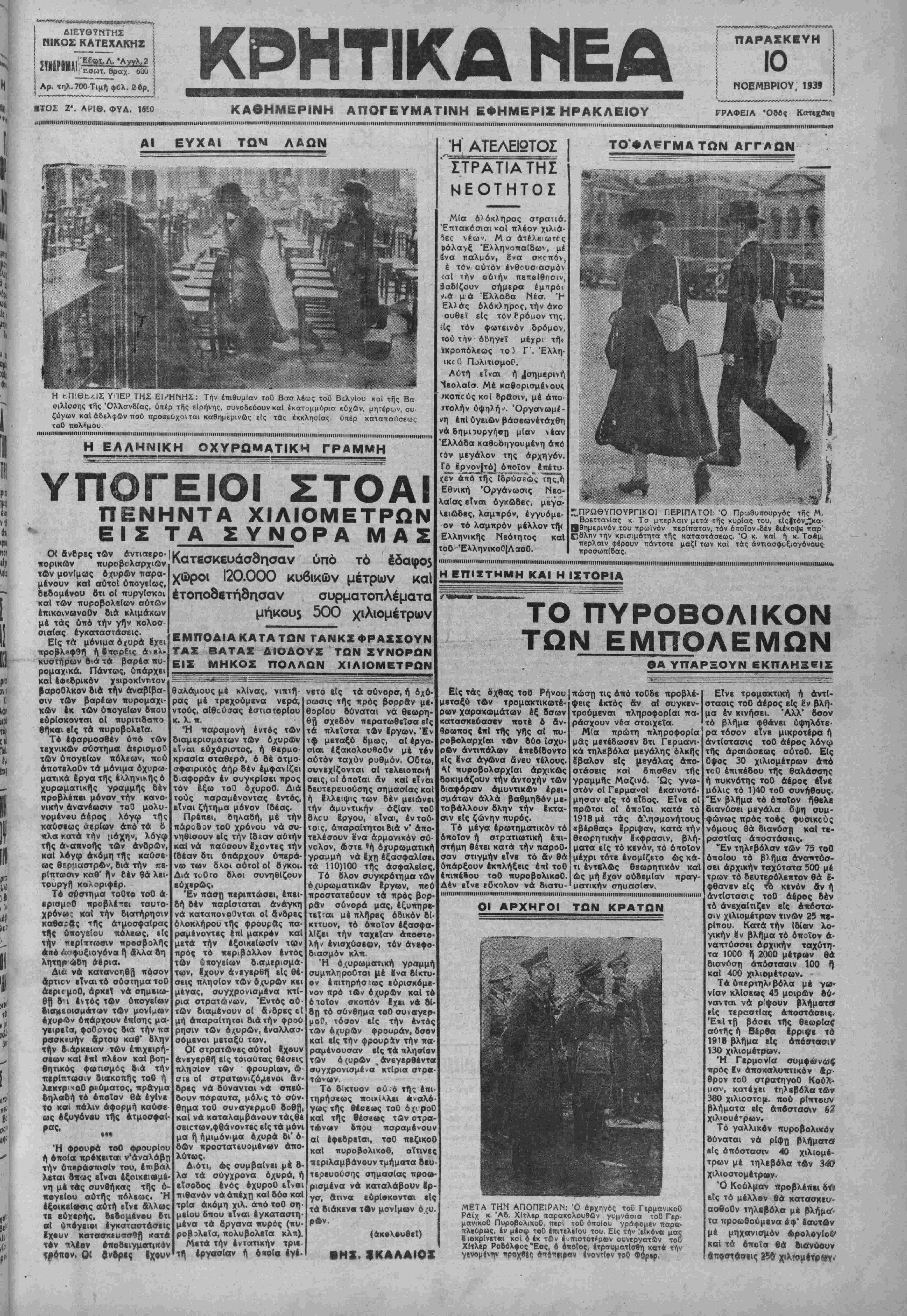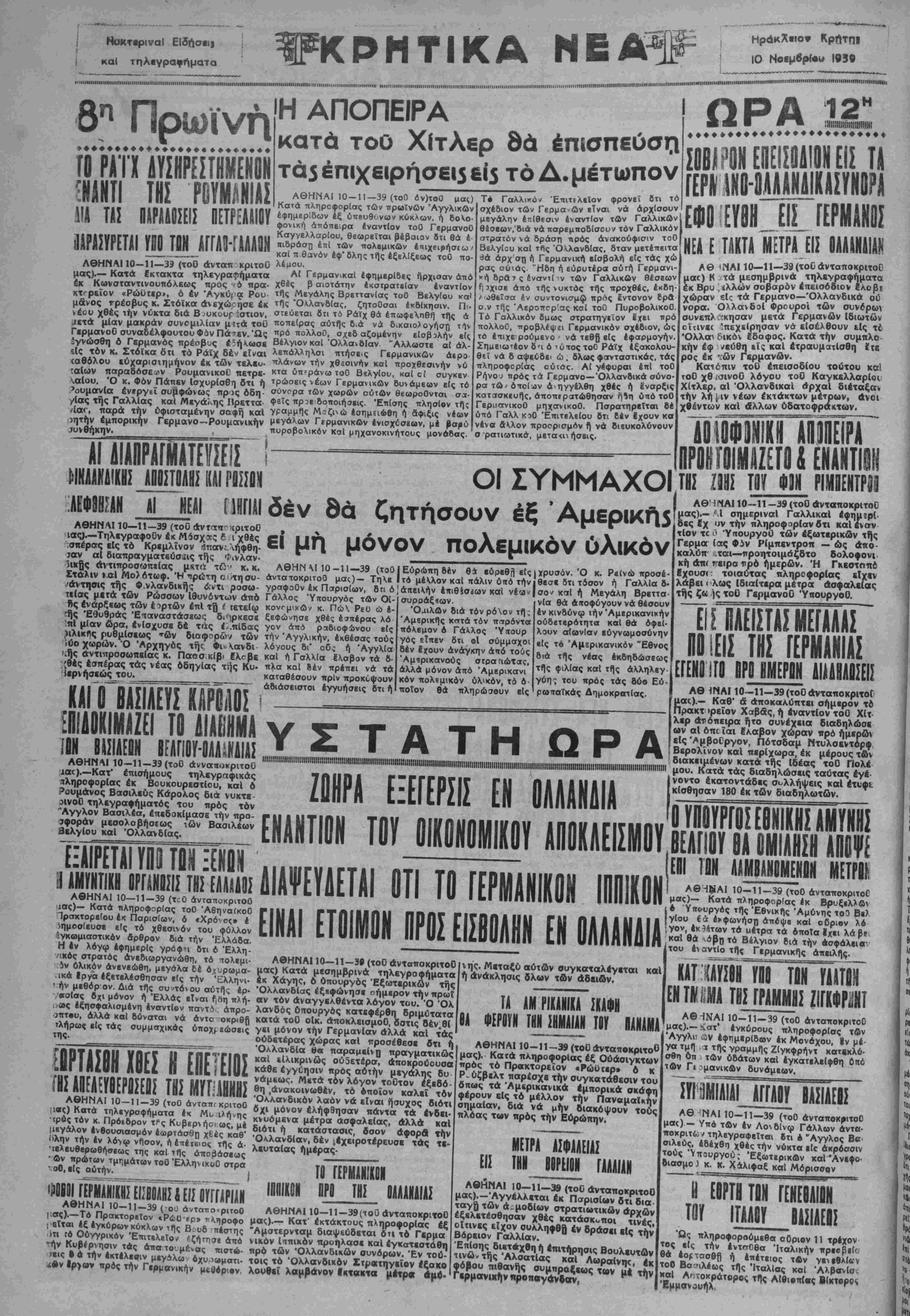 ΑΘΗΝΑΙ 10-11-39 (τοΟ άνταπΓκριτοΟ