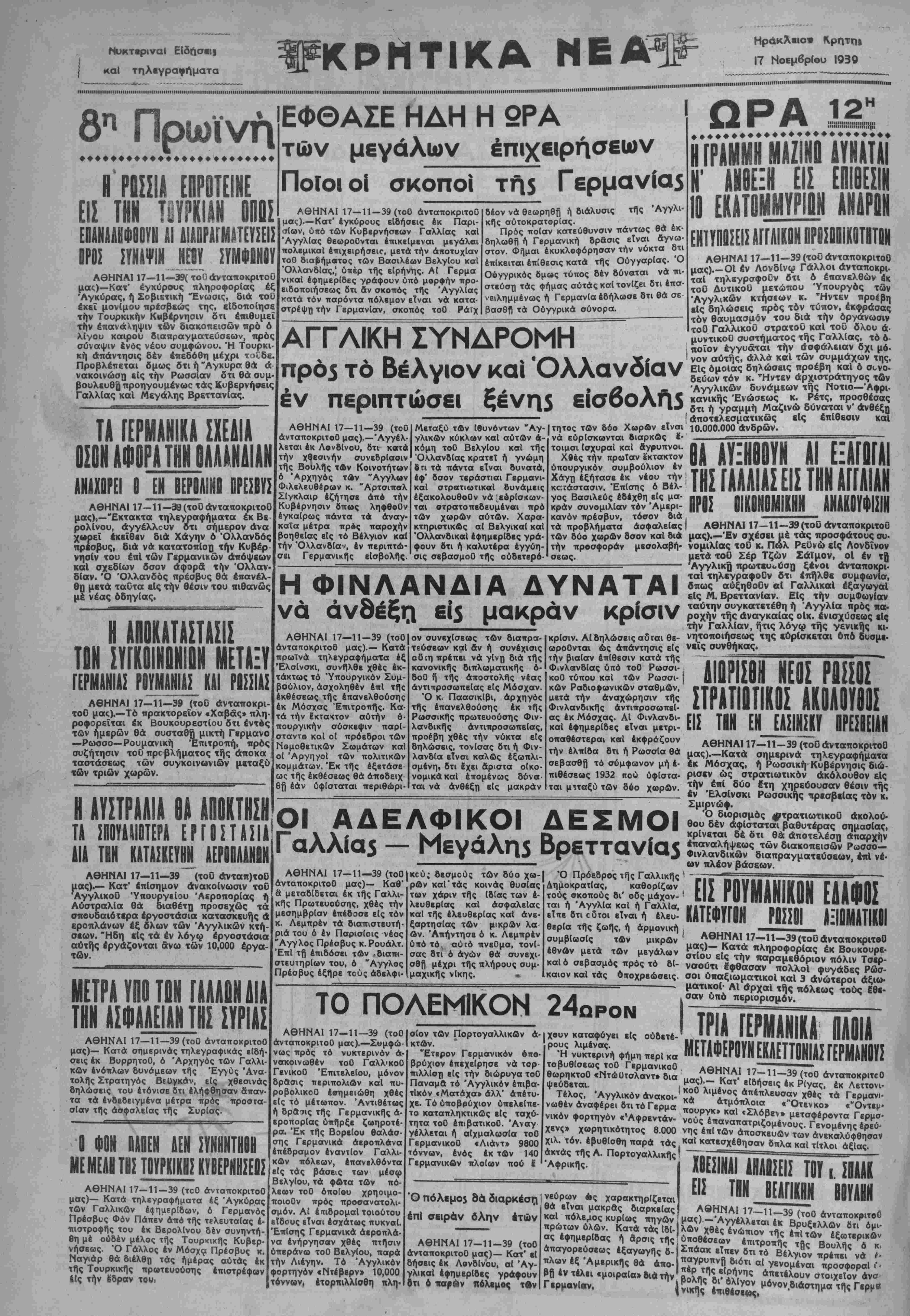 ΑΘΗΝΑΙ 17—11—39( τοΟ άνταποκριτοϋ