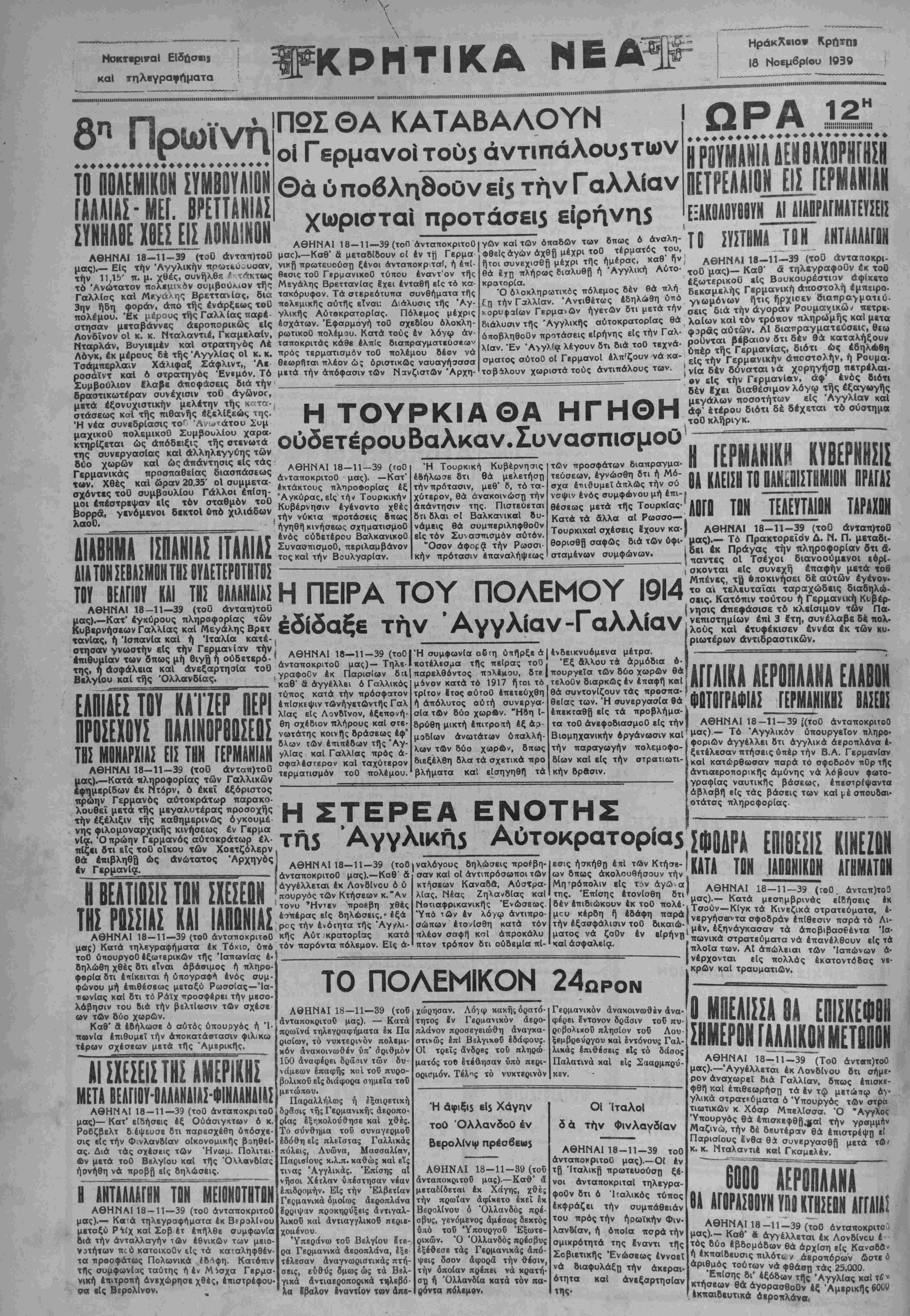 ΑΘΗΝΑΙ 18-11-39 (τοΟ άνταποκριτοΟ